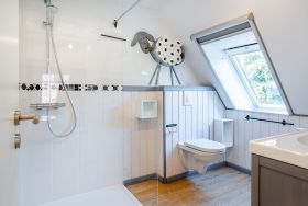 Englischer Landhausstil in Ostfriesland - genau diese Kombination finden Sie in unserer Ferienwohnung Kaiser Apartment, welche seit Juli 2023 bei Friesen Apartments buchbar ist. Die Wohnung liegt im Obergeschoss eines Hauses mit insgesamt vier Wohneinheiten und bietet auf ca. 50qm einen hellen und gemütlichen Wohn-/Essbereich im englischen Stil, der nach einem ereignisreichen Tag zum Entspannen oder Lesen einlädt. Neben einem Schlafzimmer mit Boxspringbett sowie einem Tageslichtbad iliebevoller Dekoration ist das Besondere an dieser Wohnung, dass sie trotz ihrer Lage im Obergeschoss über eine geräumige Sonnenterrasse im Gemeinschafts-Garten mit Sitzgruppe und Liegen verfügt. Auch Ihr vierbeiniges Familienmitglied ist in dieser Wohnung herzlich Willkommen und wird die eigene Terrasse zu schätzen wissen. Neben einem PKW-Parkplatz steht auch eine überdachte und abschließbare Abstellmöglichkeit für Fahrräder zur Verfügung.