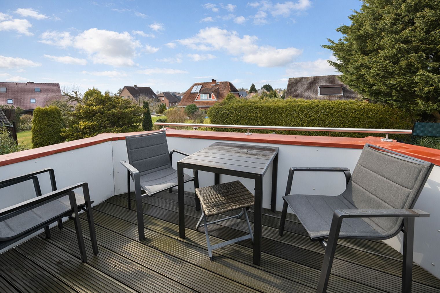 Der schöne kleine Balkon bietet auch vor Ort die Gelegenheit die Sonne genießen zu können.