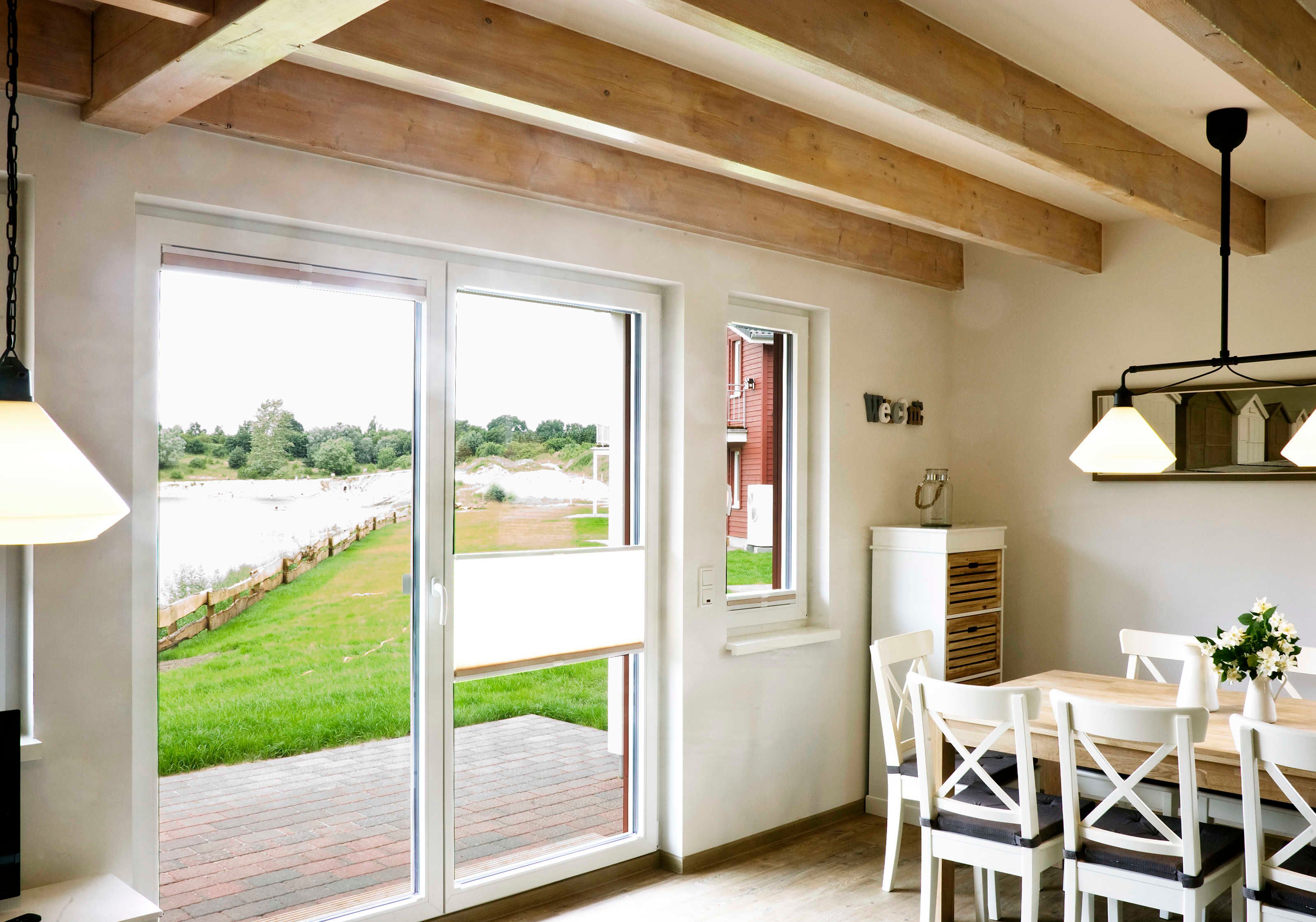 3 Schlafzimmer, eigene Sauna, Küchenzeile mit Mikrowelle, Geschirrspüler und Backofen eigene Waschmaschine, zwei Bäder, Terrasse und Balkon zum See, Fußbodenheizung