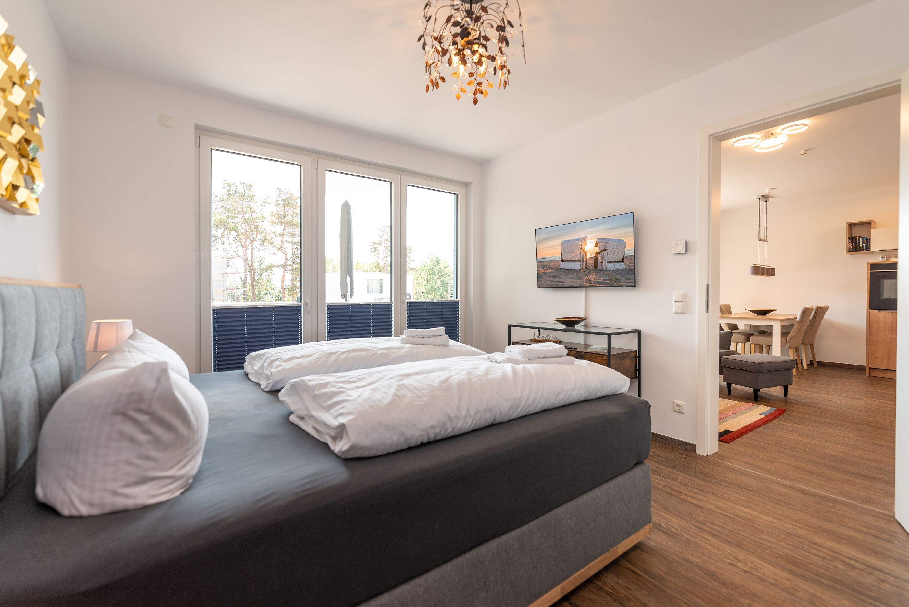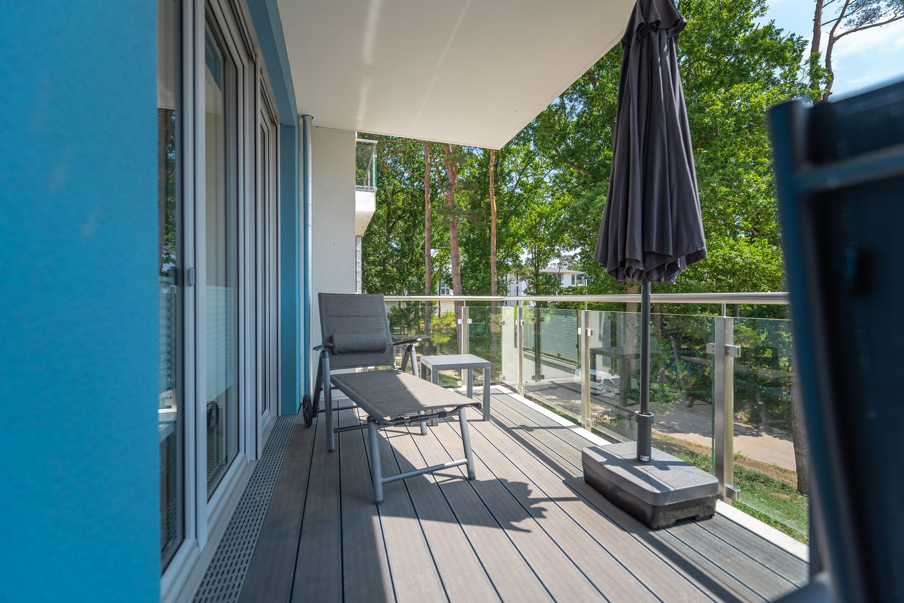 Das Usedom Apartment Luca im 1. Obergeschoss des Hauses 3a in der Ferienanlage AM KIEFERNHAIN bietet auf 63 qm Wohnfläche Platz für 3 Erwachsene und 1 Kleinkind (max. 2 Jahre). Dank eines Fahrstuhls erreichen Sie bequem die Wohnung sowie den Wellnessbereich im Dachgeschoss. Das Apartment besticht durch seinen großen Südbalkon, von dem aus Sie einen fantastischen Blick auf das Stettiner Haff genießen können.