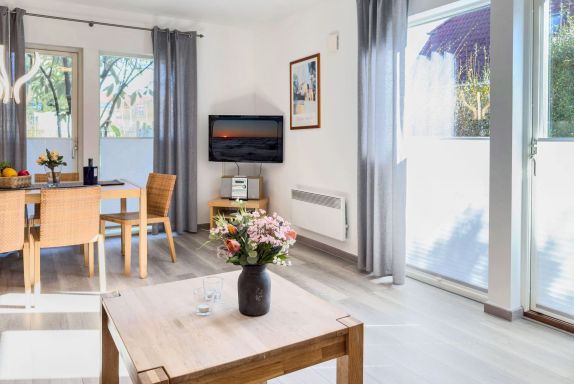 • Wohnbereich mit einladender Sofalandschaft und Flachbild-TV