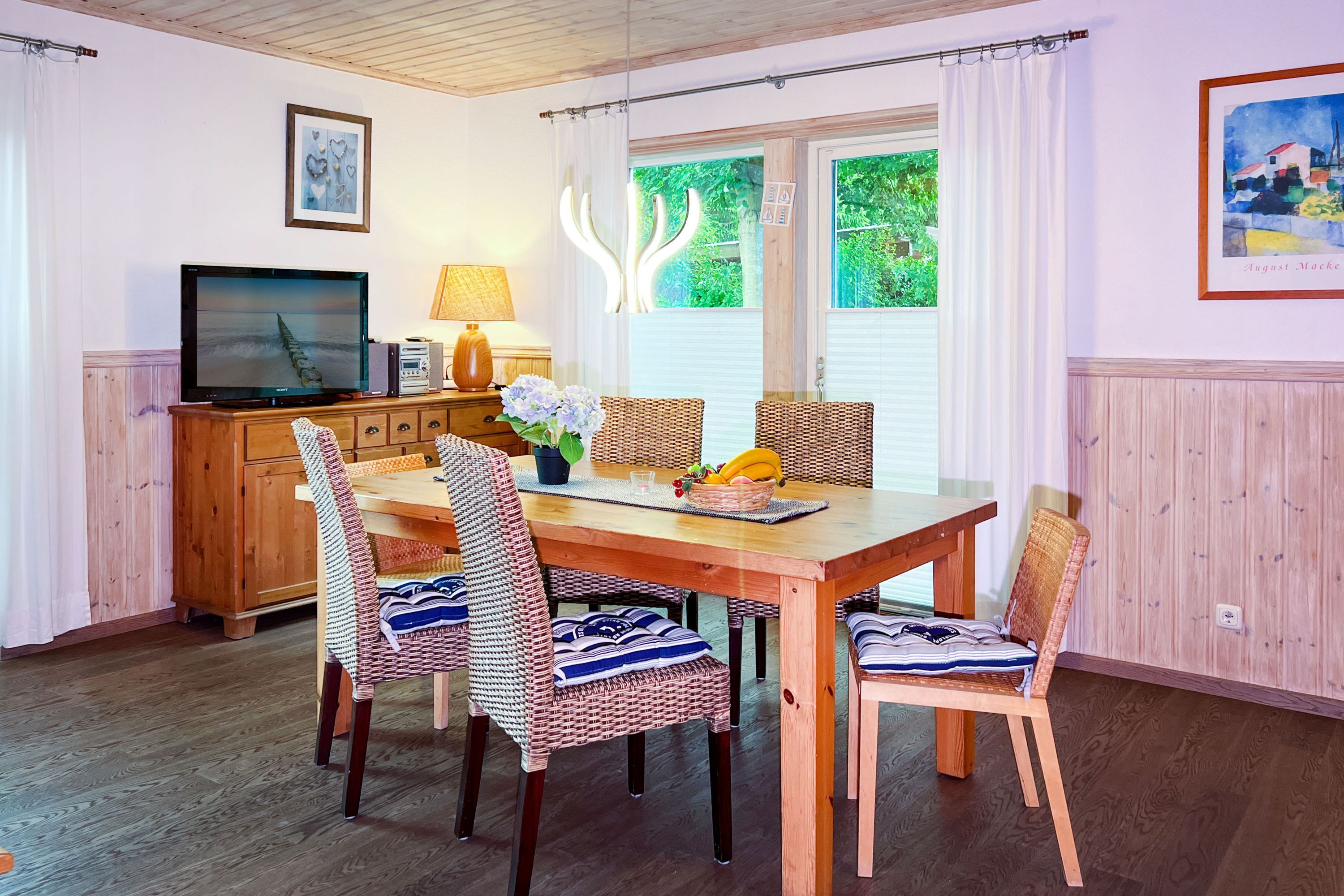• Gemütlicher Wohnbereich mit bequemer Couch und Essbereich