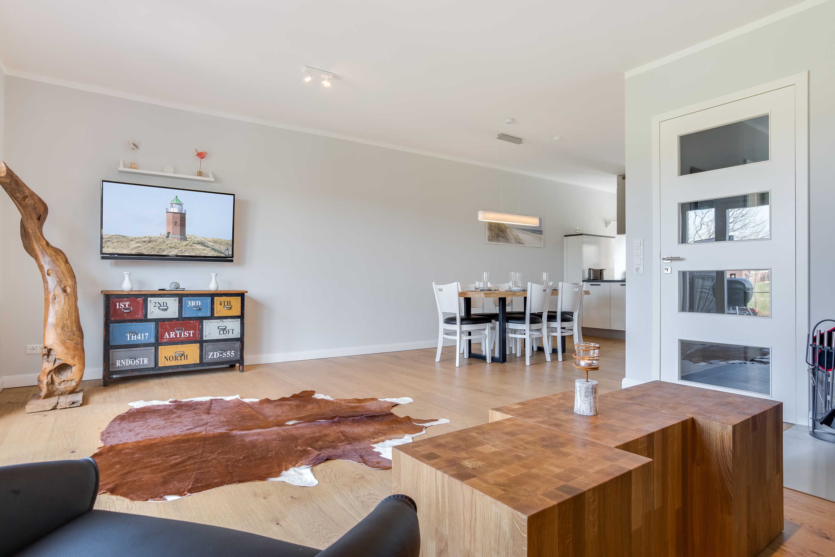 Willkommen in List, dem nördlichsten Ort der Insel Sylt. In einer ruhigen Wohnsiedlung nahe des Lister Hafens liegt das Haus Fehmarn, ein gepflegter Klinkerbau mit seinem frisch renovierten, geräumigen Apartment im hellen, modernen Stil für bis zu sechs Personen. Vor dem Haus befindet sich ein PKW-Stellplatz. Der maritime Lister Hafen mit seinen zahlreichen Ausflugsmöglichkeiten zu den Seehundsbänken und der dänischen Insel Rømø liegt nur wenige Gehminuten entfernt. Im Erlebniszentrum Naturgewalten nahe dem Hafen können Sie an zahlreichen Führungen und Wattwanderungen teilnehmen. Ein Bäcker, zahlreiche Einkaufsmöglichkeiten und Restaurants sind fußläufig erreichbar.