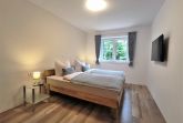 Die Wohnung Grünberg ist 52qm groß und hat ein Schlafzimmer mit Doppelbett, ein modernes Bad mit ebenerdiger Dusche und einen großen Wohn- und Essbereich mit gut ausgestatteter Küchenzeile. Sie ist buchbar für zwei oder drei Personen (ein Schlafplatz ist das hochwertige Schlafsofa im Wohn- und Esszimmer).