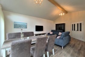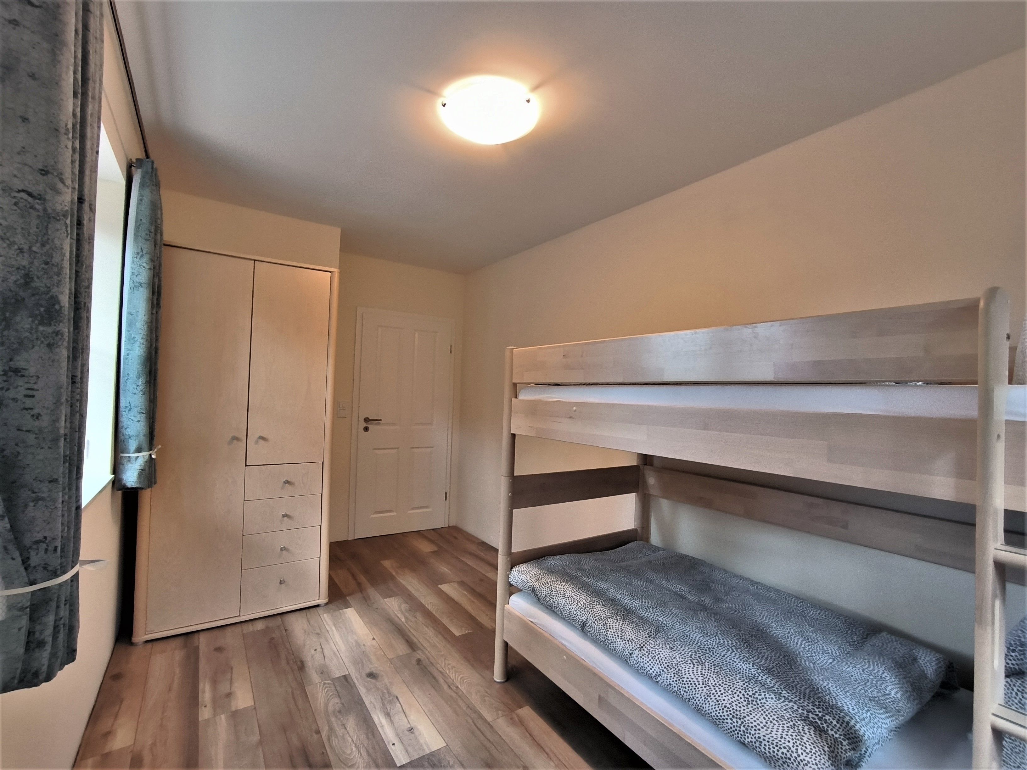 Die Wohnung Buchenblick ist ca. 95qm groß und hat ein sehr großes Wohnzimmer und zwei Schlafzimmer (ein Zimmer mit Doppelbett, ein Zimmer mit Etagenbett und Schlafsessel) sowie eine gute ausgestattete Küche und ein modernes Duschbad mit ebenerdiger Dusche. Sie ist für fünf Personen buchbar, auf Anfrage können bis zu sechs Personen/Kinder untergebracht werden (Kinderreisebett).