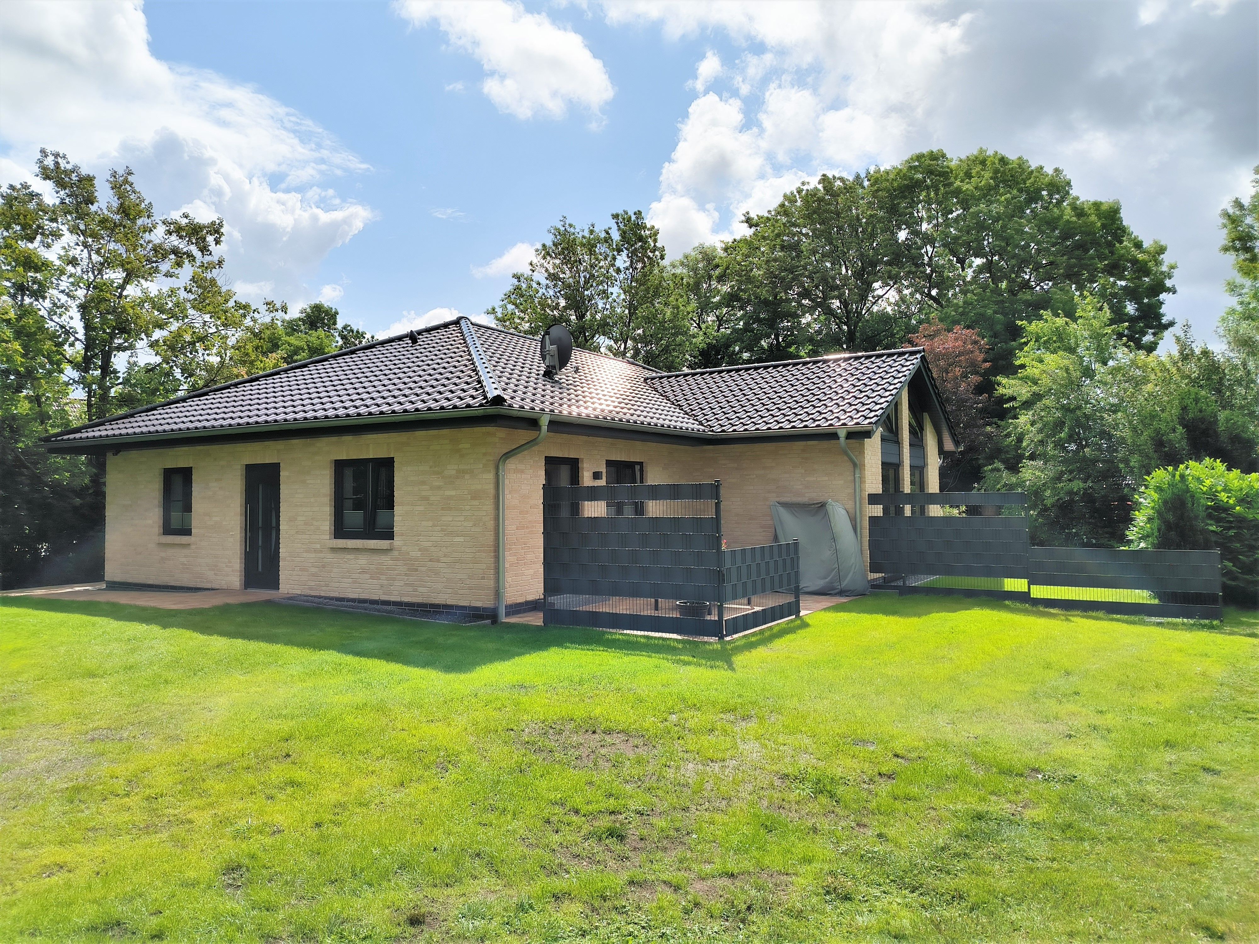 In dem im Jahre 2023 fertiggestellten Bungalow liegen eine kleine und eine größere Ferienwohnung, die Wohnungen haben je einen separaten Eingang und eine Terrasse sowie Zugang zum Garten: