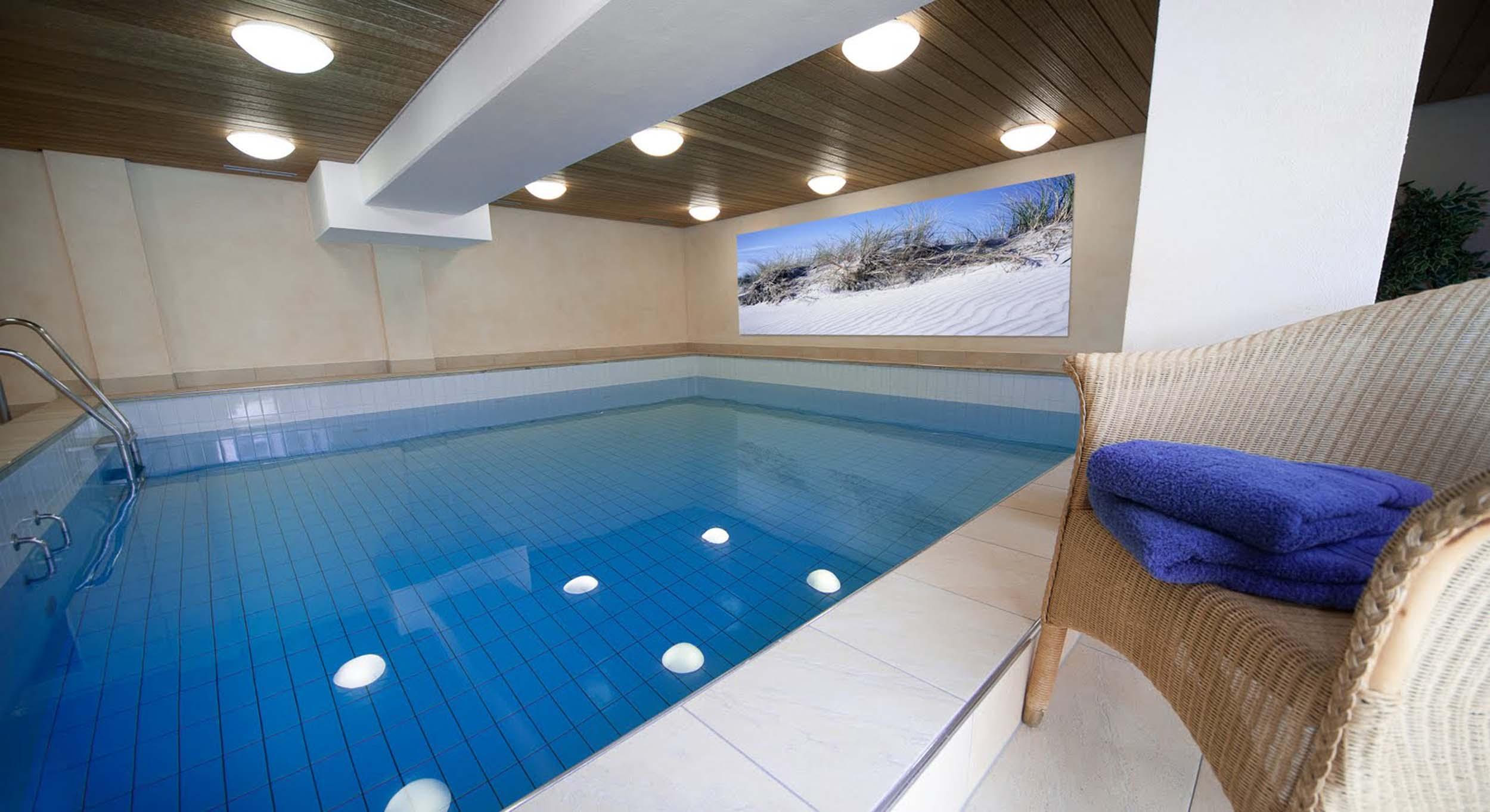 Der Wellnesbereich mit Schwimmbad und Sauna (die Sauna ist gebührenpflichtig) stehen zur Mitbenutzung zur Verfügung.