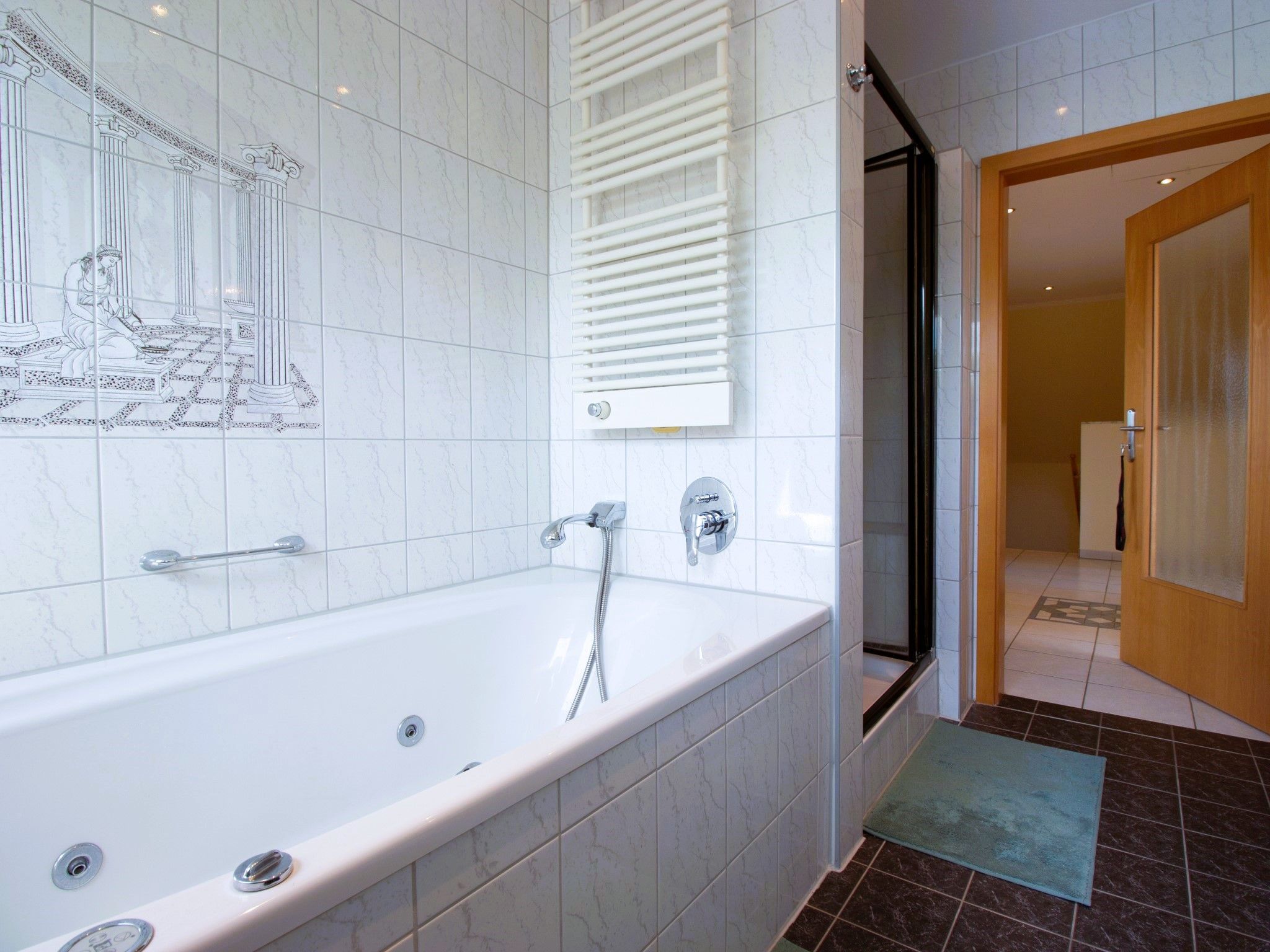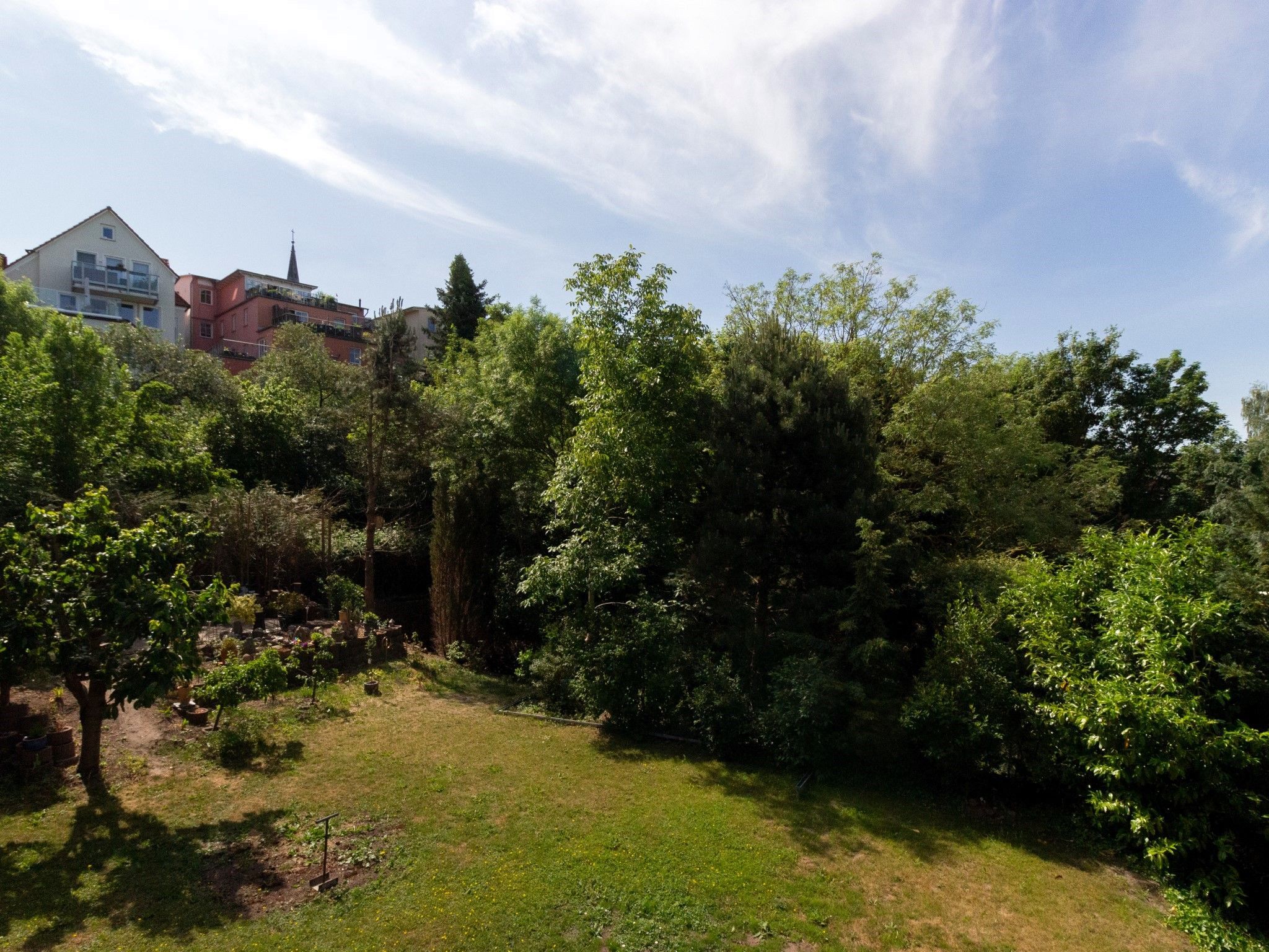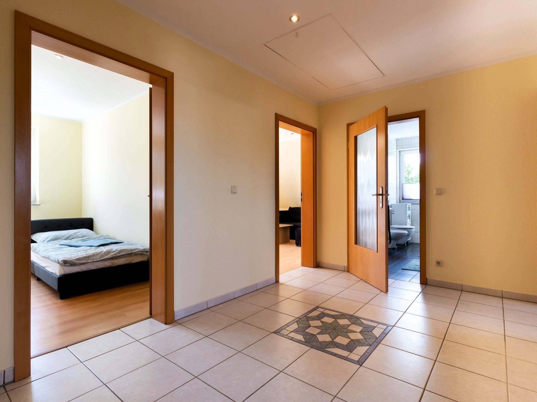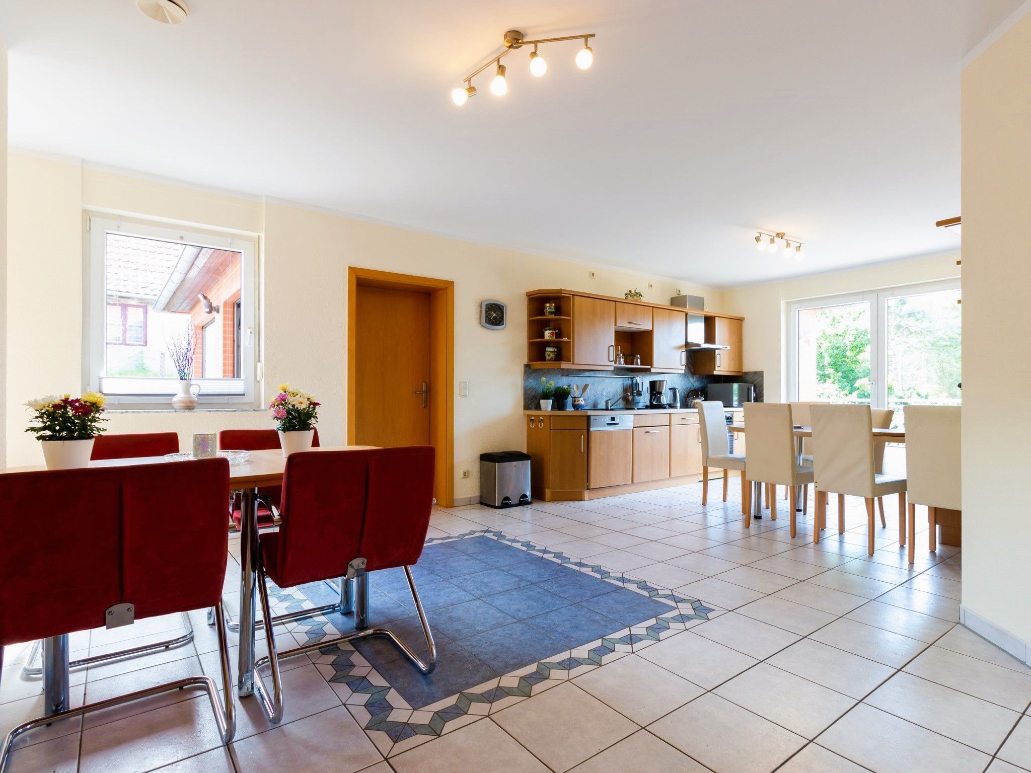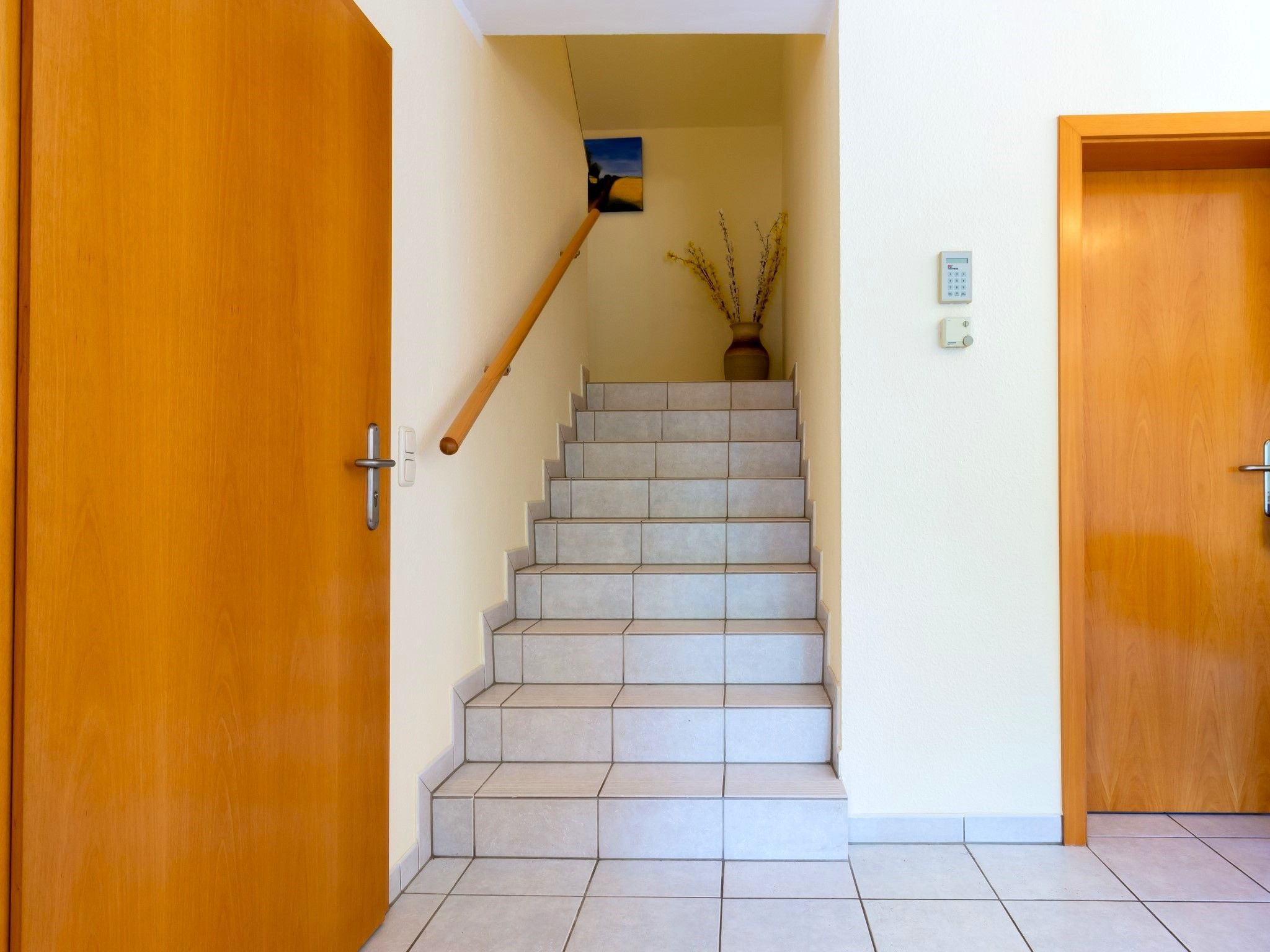 Die weitläufige Wohnung befindet sich in einem Einfamilienhaus. Sie erstreckt sich über die komplette erste und zweite Etage des Hauses. Die Einliegerwohnung im Erdgeschoss ist bewohnt.