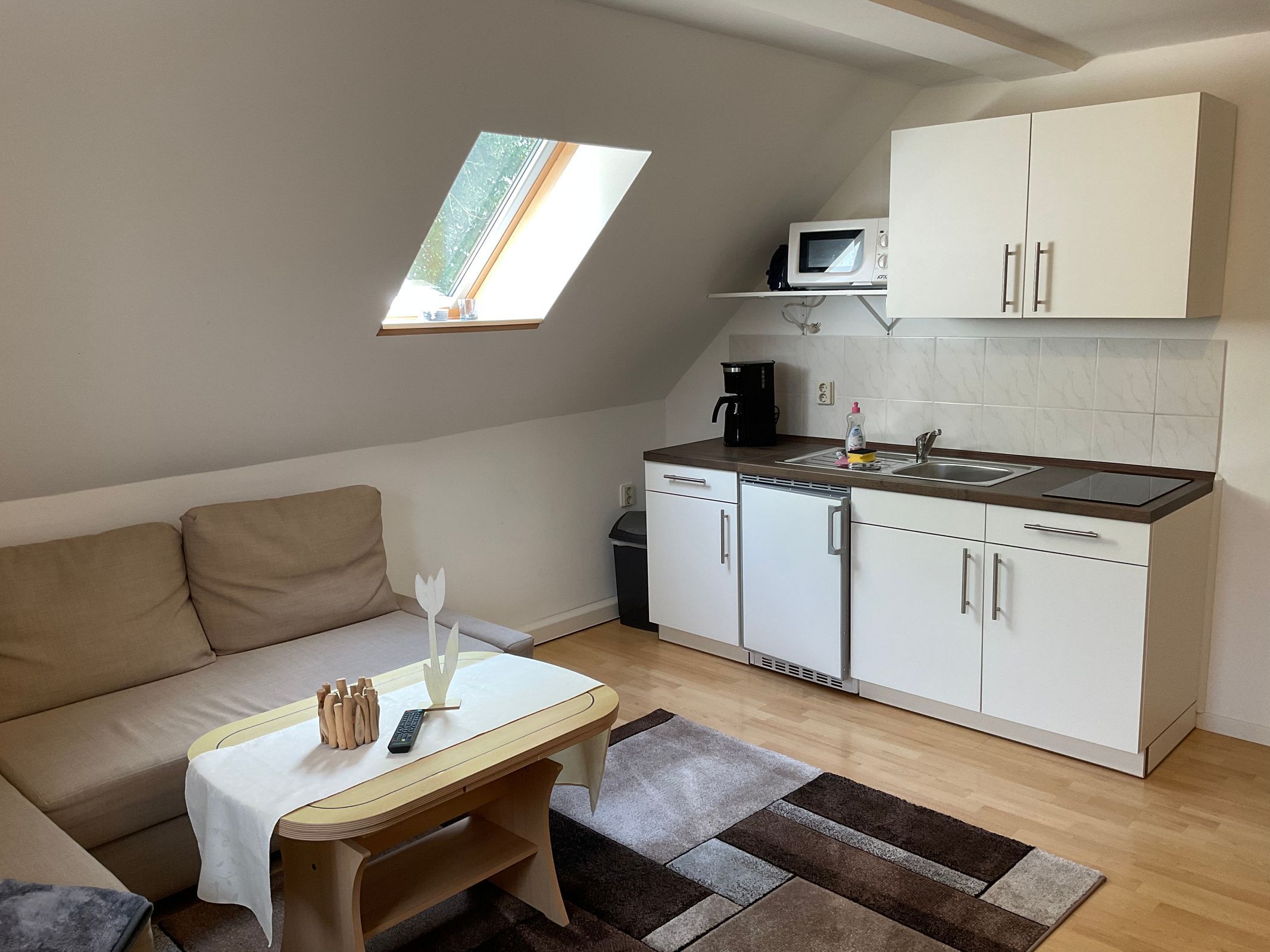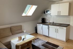 Die Ferienwohnung 3 befindet sich im Obergeschoß und ist über eine Außentreppe erreichbar. Sie verfügt über ein Wohnzimmer mit Küchenzeile und einer gemütlichen Sitzgruppe, (Sat TV, Radio). Im Schlafzimmer befindet sich ein Doppelbett und es besteht die Möglichkeit ein Kinderreisebett aufzustellen. -Bad mit DU/WC. Das großzügige Grundstück läden zur aktiven Erhohlung ein.