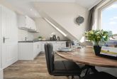 Die Suite wurde 2022 vollständig kernsaniert. Sie ist modern und hell eingerichtet und verfügt über eine hübsche Küchenzeile, die mit allen notwendigen Utensilien ausgestattet ist, um Ihre Lieblingsgerichte zuzubereiten. Egal, ob Sie sich für ein köstliches Frühstück entscheiden oder eine Mahlzeit nach einem Tag voller Erkundungen zubereiten möchten, hier finden Sie alles, was Sie brauchen. Und Ihr Tisch mit Meerblick ist den ganzen Urlaub lang für Sie reserviert. Das Badezimmer ist modern und verfügt über eine erfrischende Dusche. Das Warmwasser und die Heizung werden mit regenerierbarer Energie (Geothermie) erwärmt und so schonen Sie in Ihrem Urlaub gleichzeitig die Umwelt. Für Ihr Auto gibt es direkt vor dem Haus einen kostenfreien Parkplatz und Ihre Fahrräder können Sie in der geschützten Garage unterstellen. Außerdem verfügt die Wohnung über einen großen Süd-Balkon mit Meerblick zur freien Nordsee verfügen.