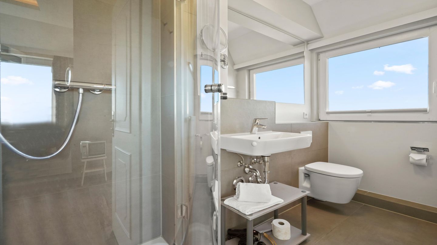 Für Ihre persönliche Privatsphäre verfügt die Suite natürlich auch über ein separates Badezimmer. (Dieses ist über den kleinen Vorflur zu erreichen) Hier können Sie nach einem langen Tag am Strand oder beim Erkunden der Insel eine erfrischende Dusche nehmen. Das Warmwasser und die Heizung werden mit regenerierbarer Energie (Geothermie) erwärmt und so schonen Sie in Ihrem Urlaub gleichzeitig die Umwelt.