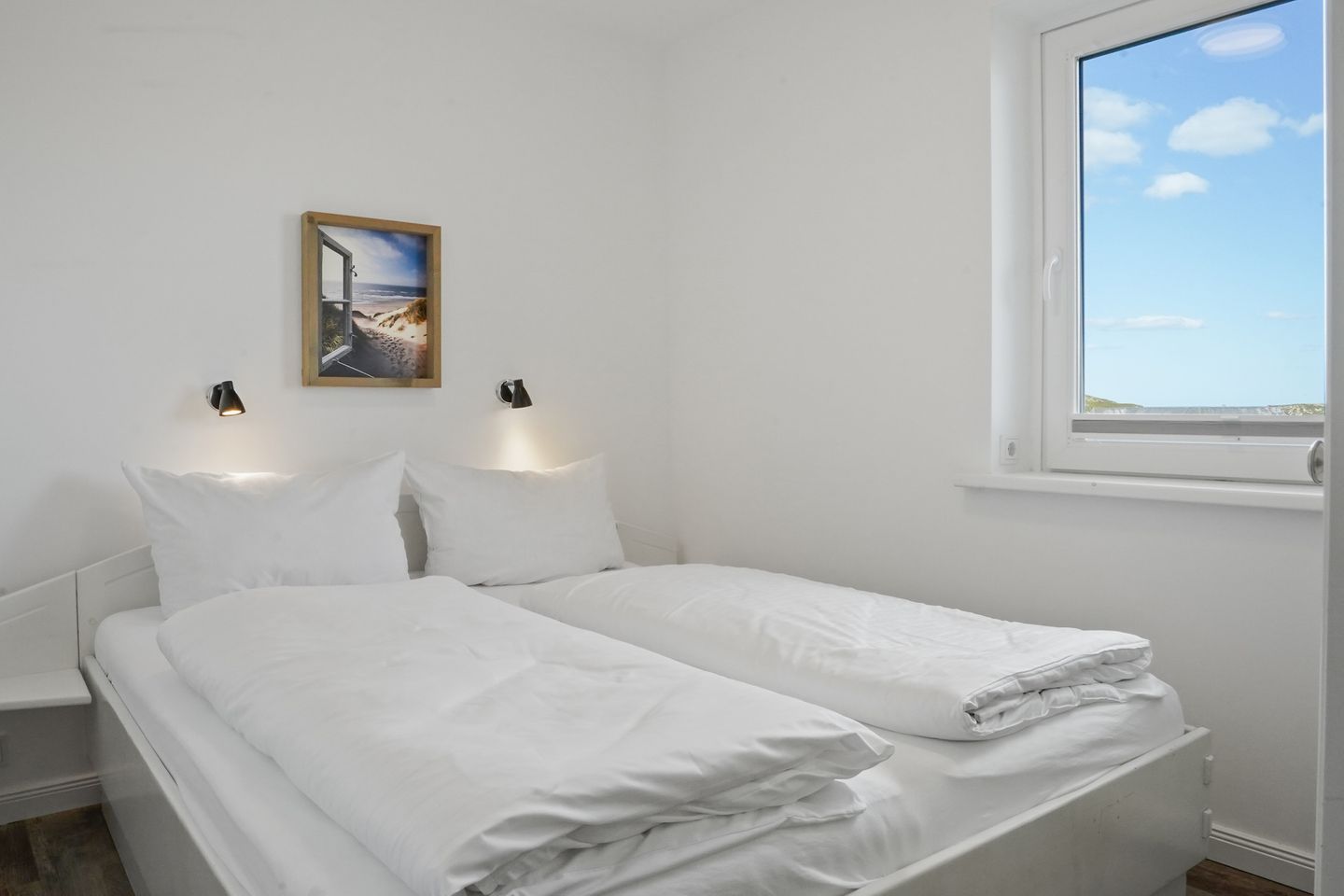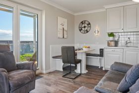 Die kleine aber feine Suite wurde für Sie mit viel Liebe zum Detail gestaltet und verfügt über Tischlereinbauten, die ästhetisch ansprechend sind und auch praktischen Stauraum bieten. Ein abschließbarer Schrank befindet sich im kleinen Vorflur. Die hellen Farben und das moderne Design schaffen eine entspannte und einladende Atmosphäre, die Ihnen das Gefühl von Ruhe und Gelassenheit vermittelt. Damit Ihr Sylt-Urlaub mit Meerblick zu einem echten Highlight wird.