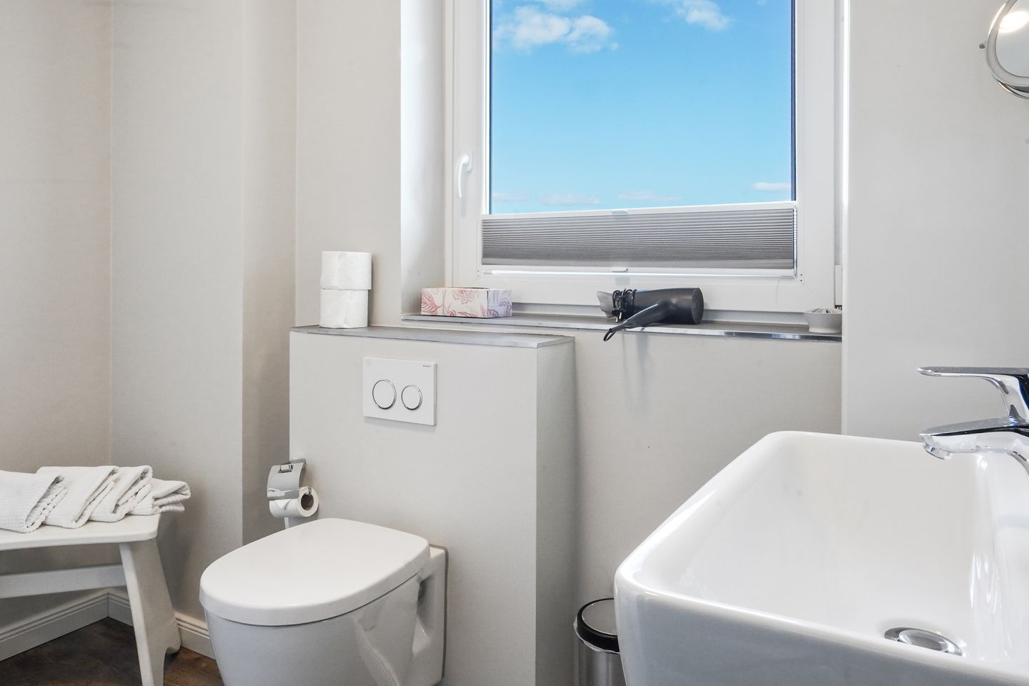 Die voll ausgestattete Küche lädt dazu ein, lokale Spezialitäten zuzubereiten und dabei den Blick auf die umliegende Dünenlandschaft zu genießen. Ein schönes Schlafzimmer mit einem komfortablen Doppelbett mit Geltopper-Luxusmatratzen und einem großen Badezimmer sorgen für erholsame Nächte mit dem notwendigen Komfort. Die Suite bietet außerdem ein zusätzliches Schlafzimmer mit zwei Einzelbetten. Perfekt für Familien oder Freunde. Und das Warmwasser und die Heizung werden mit regenerierbarer Energie (Geothermie) erwärmt, damit Sie in Ihrem Urlaub gleichzeitig automatisch die Umwelt schonen können.
