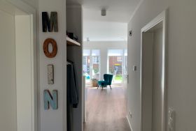 Dieses neuwertige Reihenendhaus bietet Ihnen höchsten Komfort. Im Erdgeschoss befindet sich ein großzügiger und freundlicher Bereich für Kochen, Essen und Wohnen, sowie ein Gäste-WC. Das Obergeschoss verfügt über zwei Schlafzimmer (1x Doppelbett, 1x2 Einzelbetten) und ein großzügiges Bad mit bodengleicher Dusche. WLAN steht Ihnen kostenlos zur Verfügung. Eine hochwertige Ausführung und attraktive Ausstrahlung sorgen für entsprechende Wohnqualität.