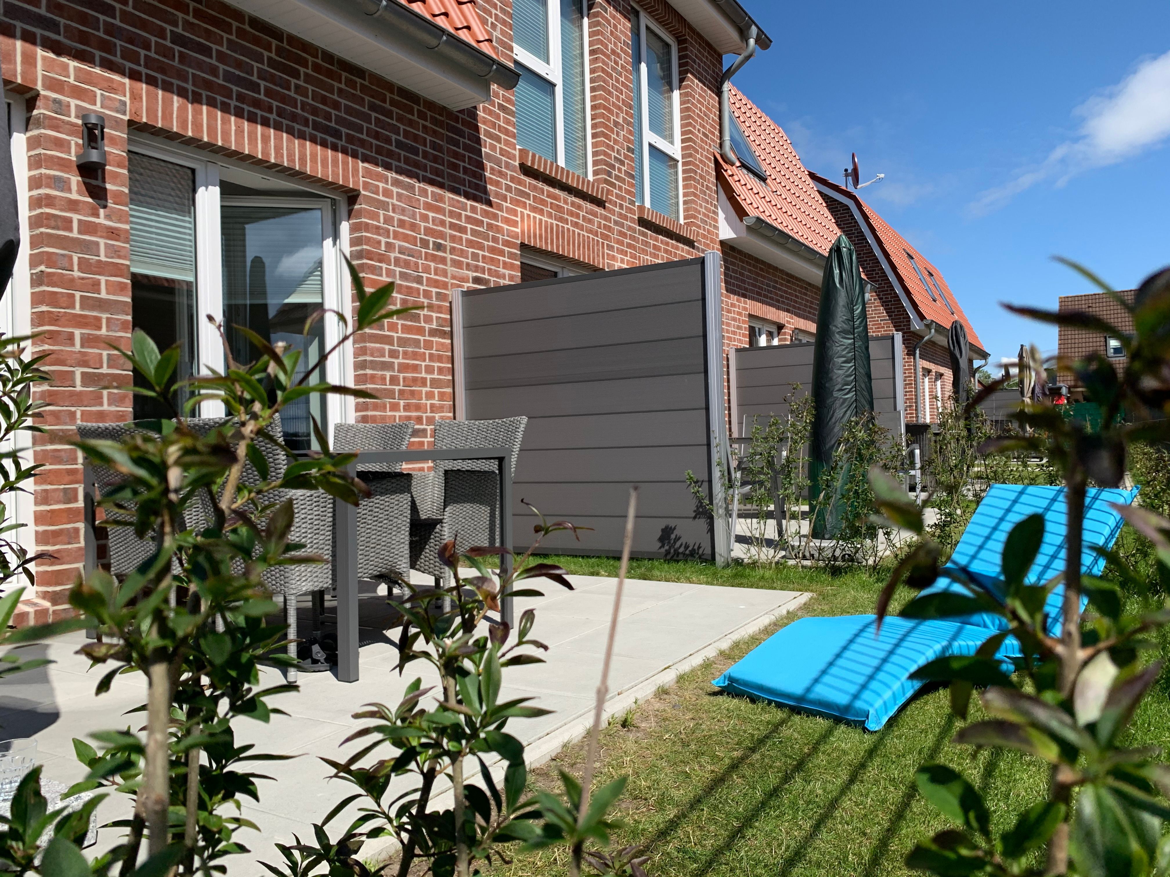 Der Außenbereich des Ferienhauses verfügt über eine möblierte Terrasse in Südausrichtung. Neben einem Parkplatz direkt am Haus, ist auch eine Unterstellmöglichkeit für Ihre Fahrräder vorhanden.