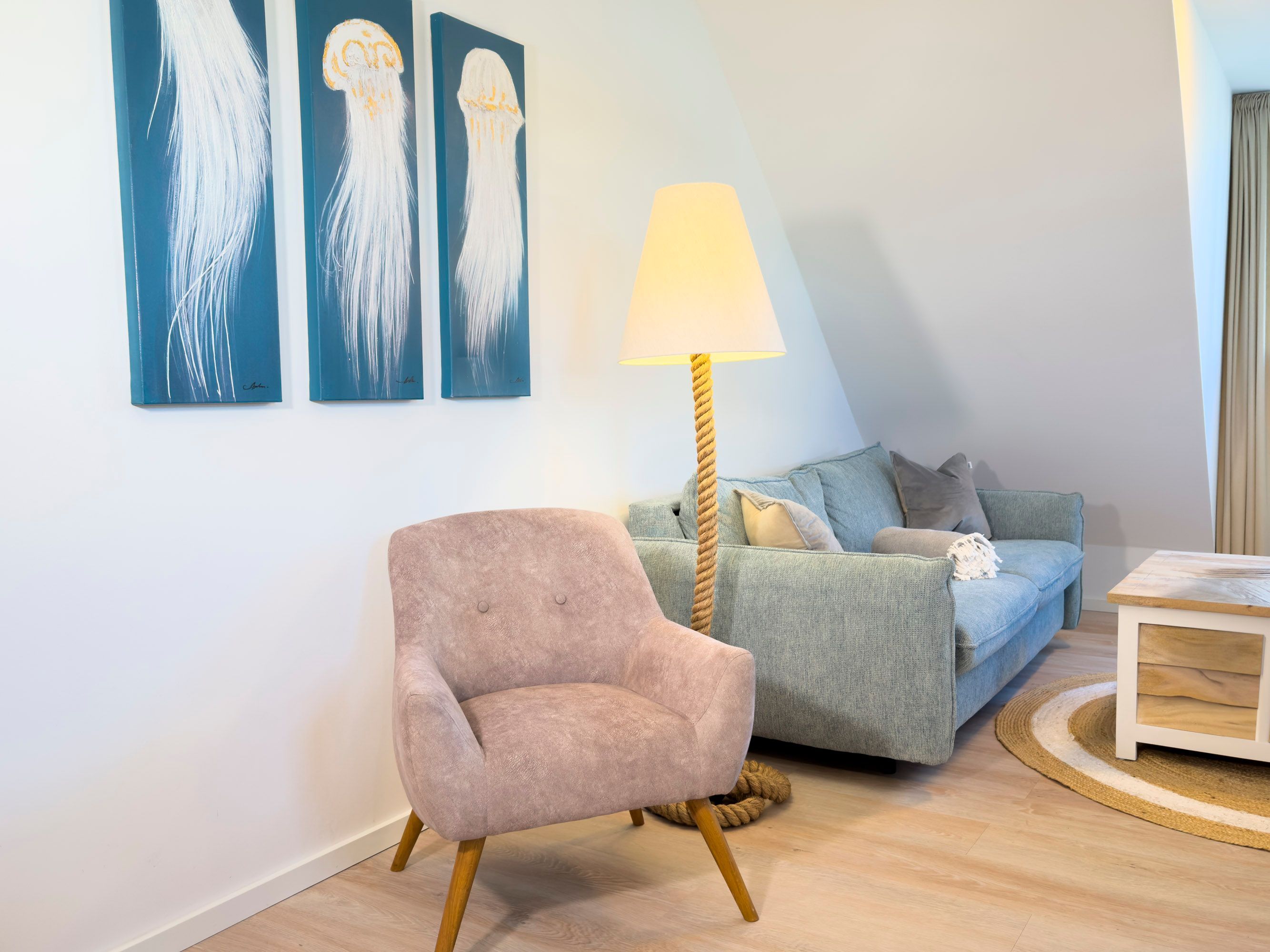 Nach einem Spaziergang am Strand oder einem Tag voller Entdeckungen lädt der behagliche Wohnbereich zum Entspannen ein.
