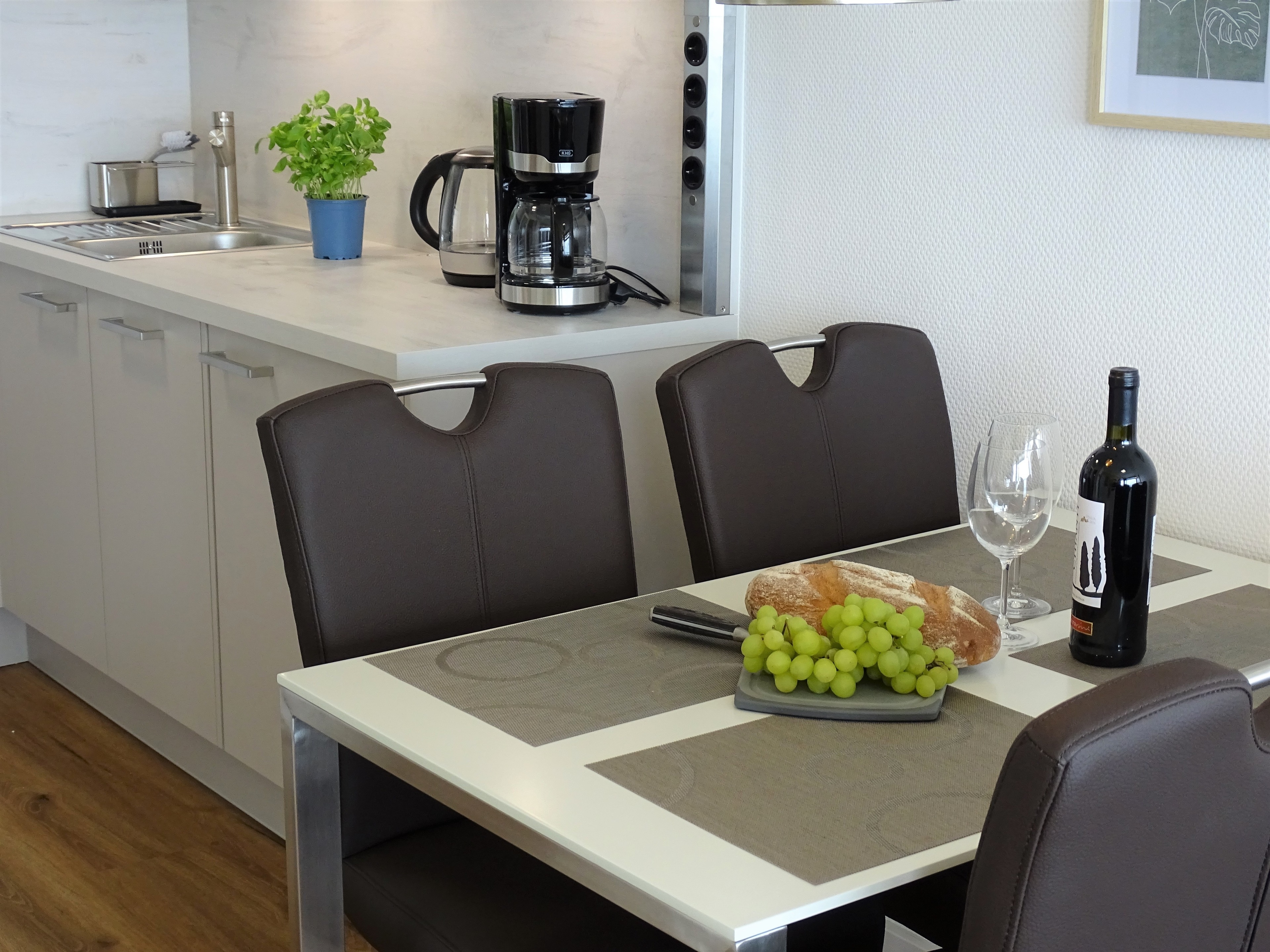 Zwischen Küche und Wohnzimmer gibt es einen Essplatz für 4 Personen.