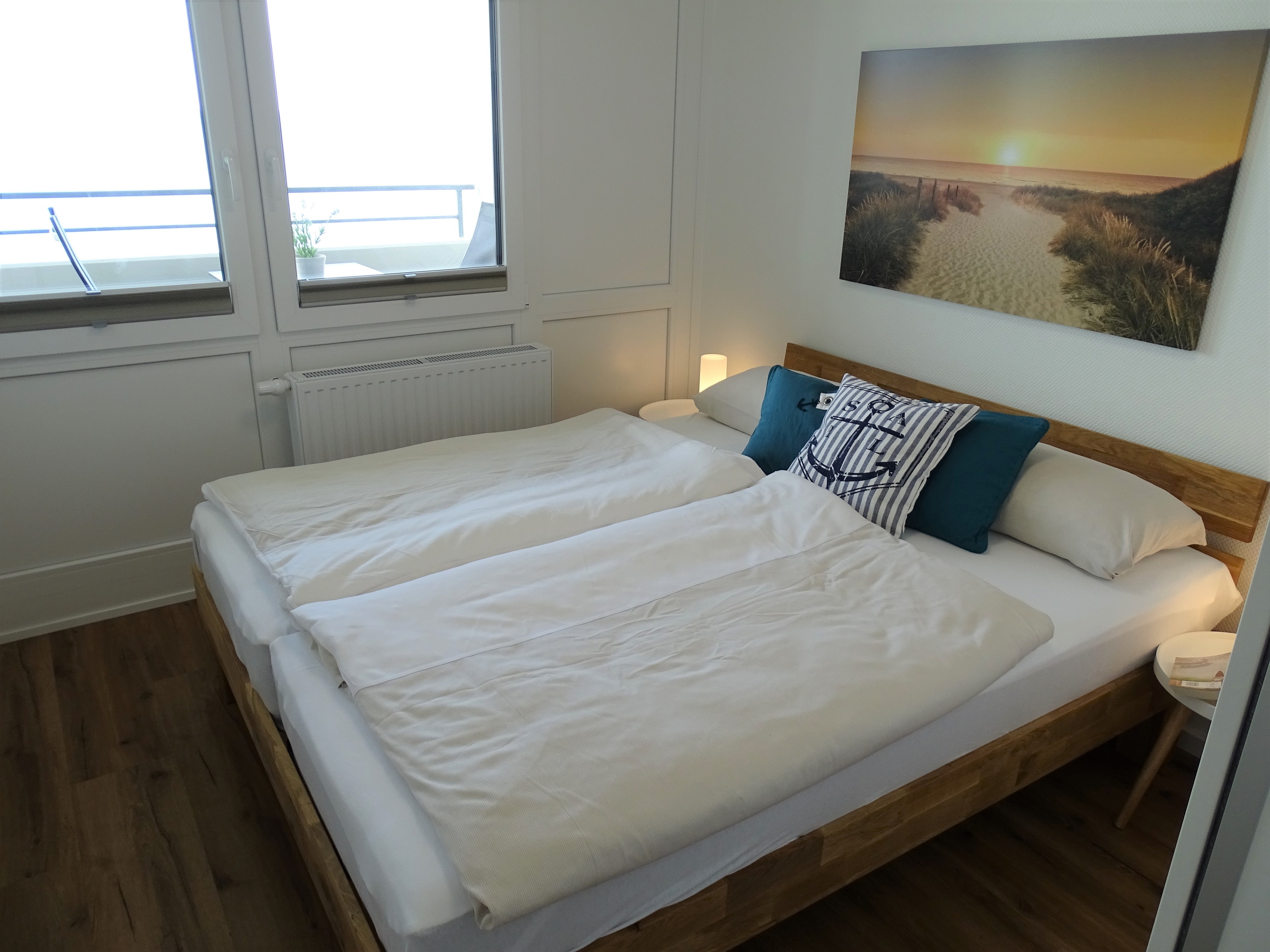 Auch aus dem Schlafzimmer haben Sie den tollen Blick auf Strand und Wasser.