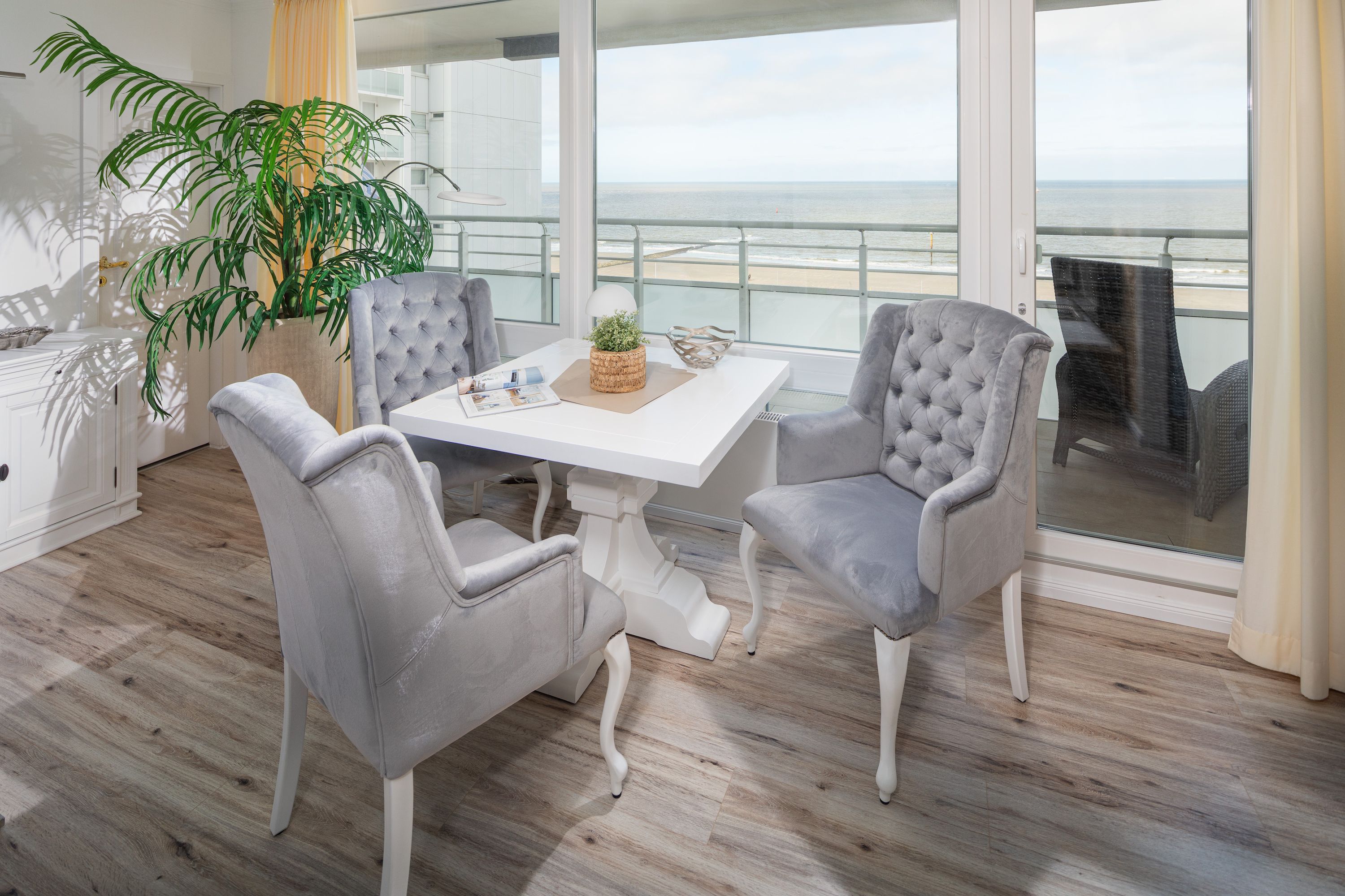 Das Highlight der Ferienwohnung ist zweifellos der geräumige Balkon, auf dem Sie entspannen und die frische Meeresluft genießen können. Von hier aus haben Sie einen unvergleichlichen Blick auf die Nordsee und können die vorbeiziehenden Schiffe beobachten. Ein Strandkorb lädt dazu ein, gemütliche Stunden in der Sonne zu verbringen und dem Meeresrauschen zu lauschen.