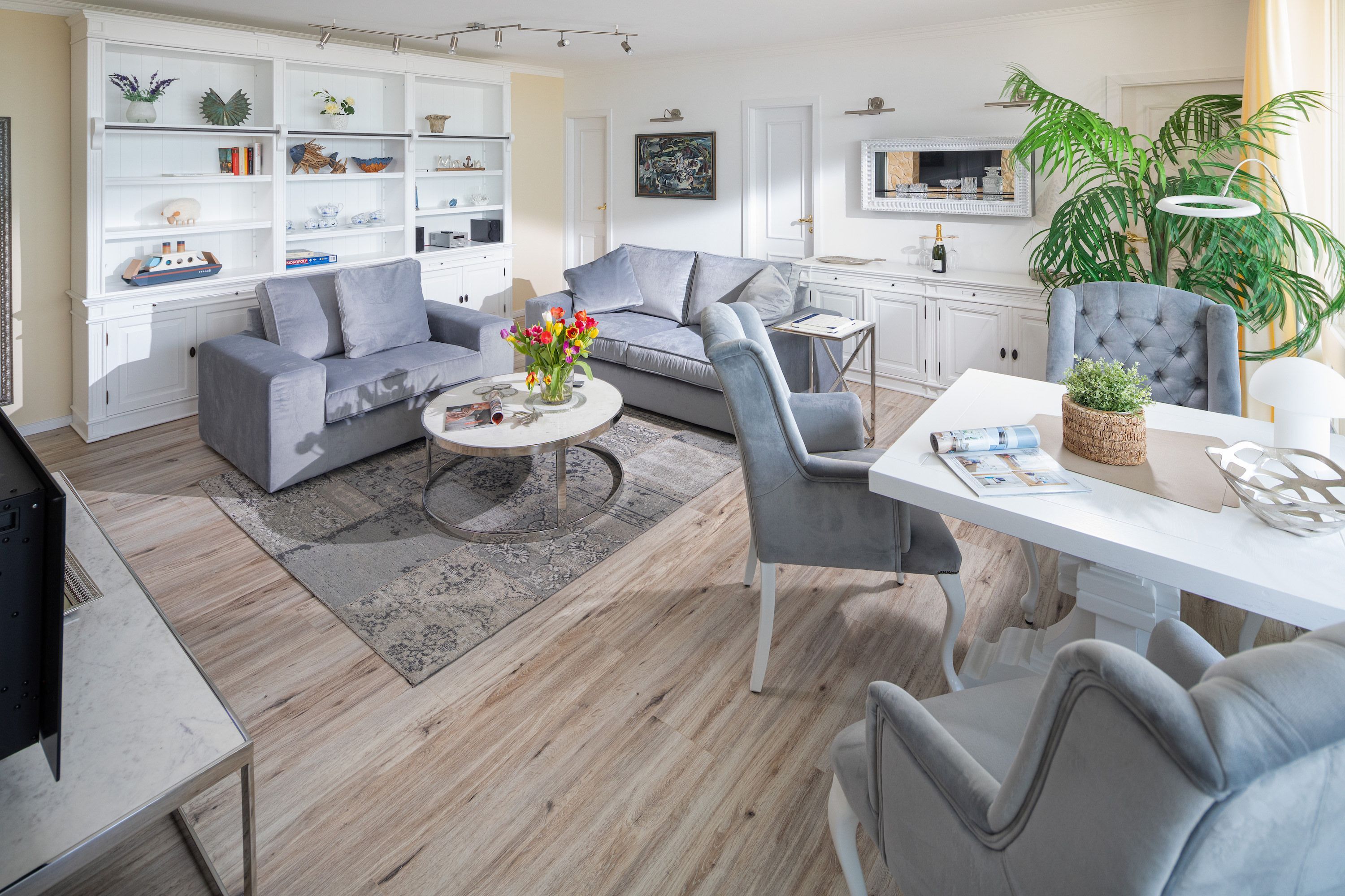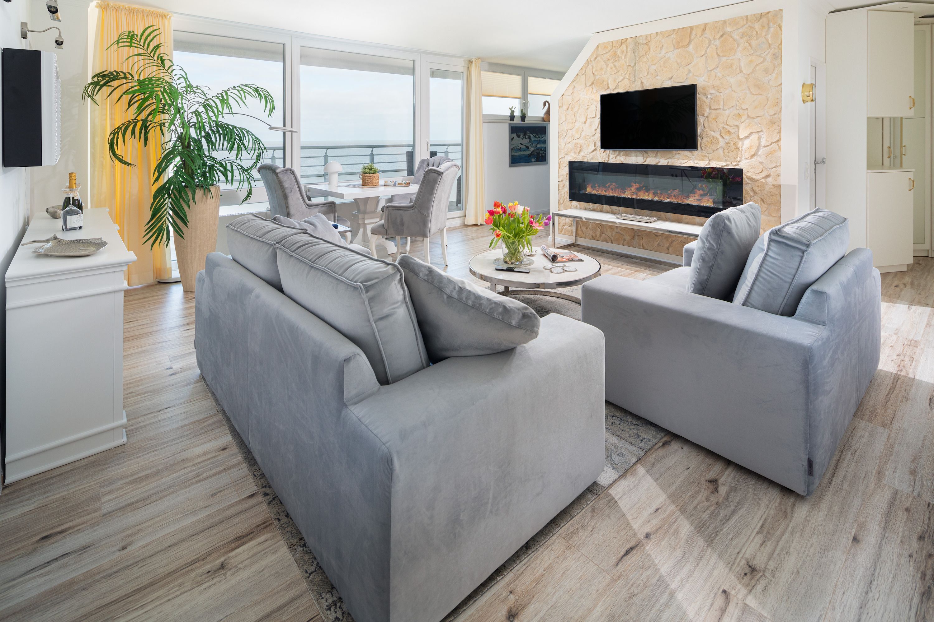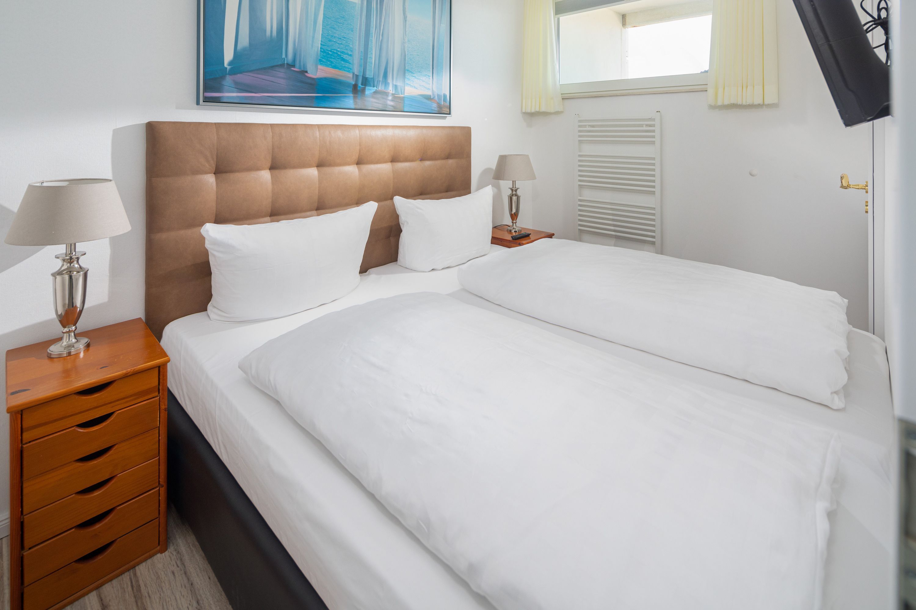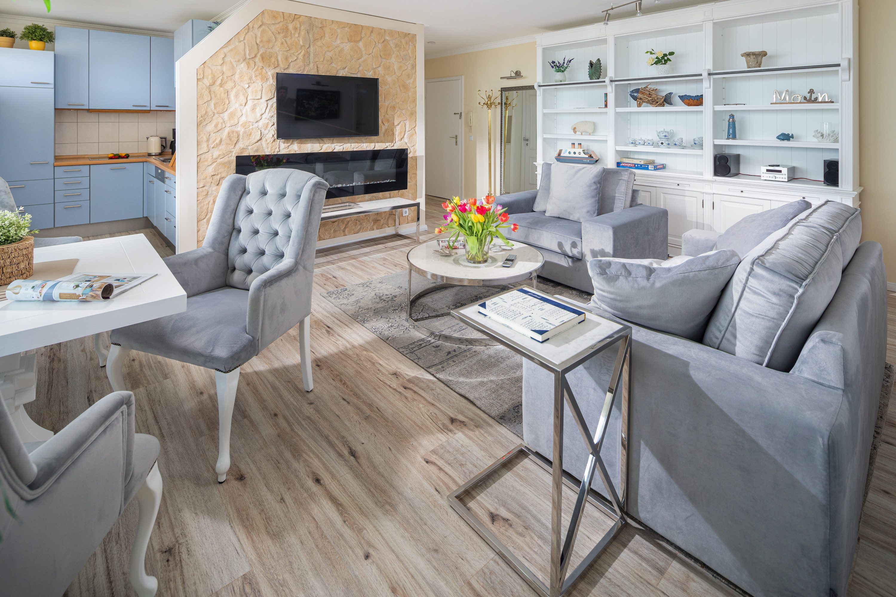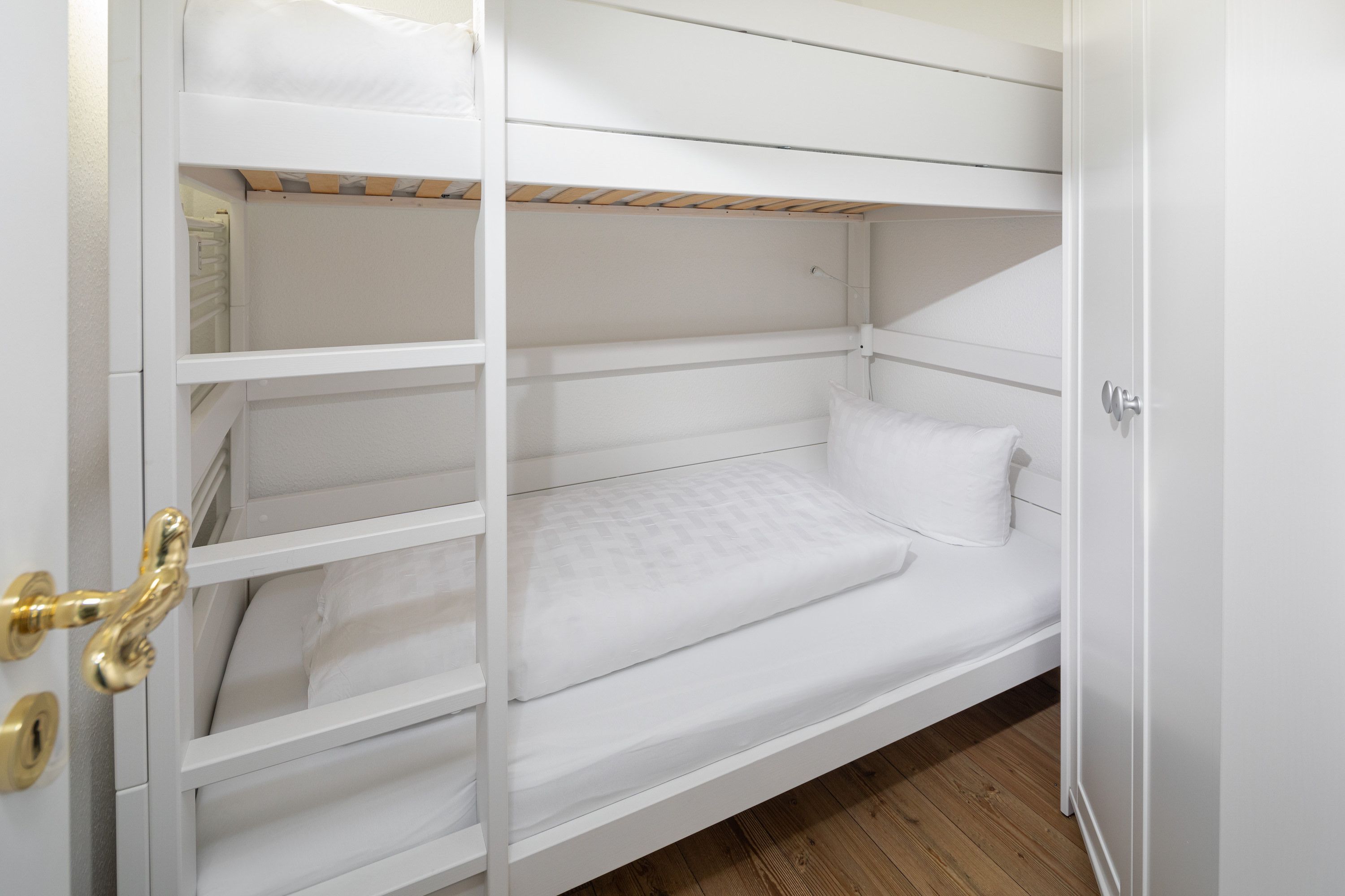 Mit einer großzügigen Fläche von 72 qm, einem Schlafzimmer mit Doppelbett und einem Schlafzimmer mit Etagenbett bietet die Wohnung ausreichend Platz für bis zu drei Erwachsene.