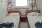 Es gibt zwei separate Schlafzimmer mit großem Doppel- bzw. zwei Einzelbetten und Rollläden sowie zwei Bäder, die jeweils mit Dusche und WC ausgestattet sind.