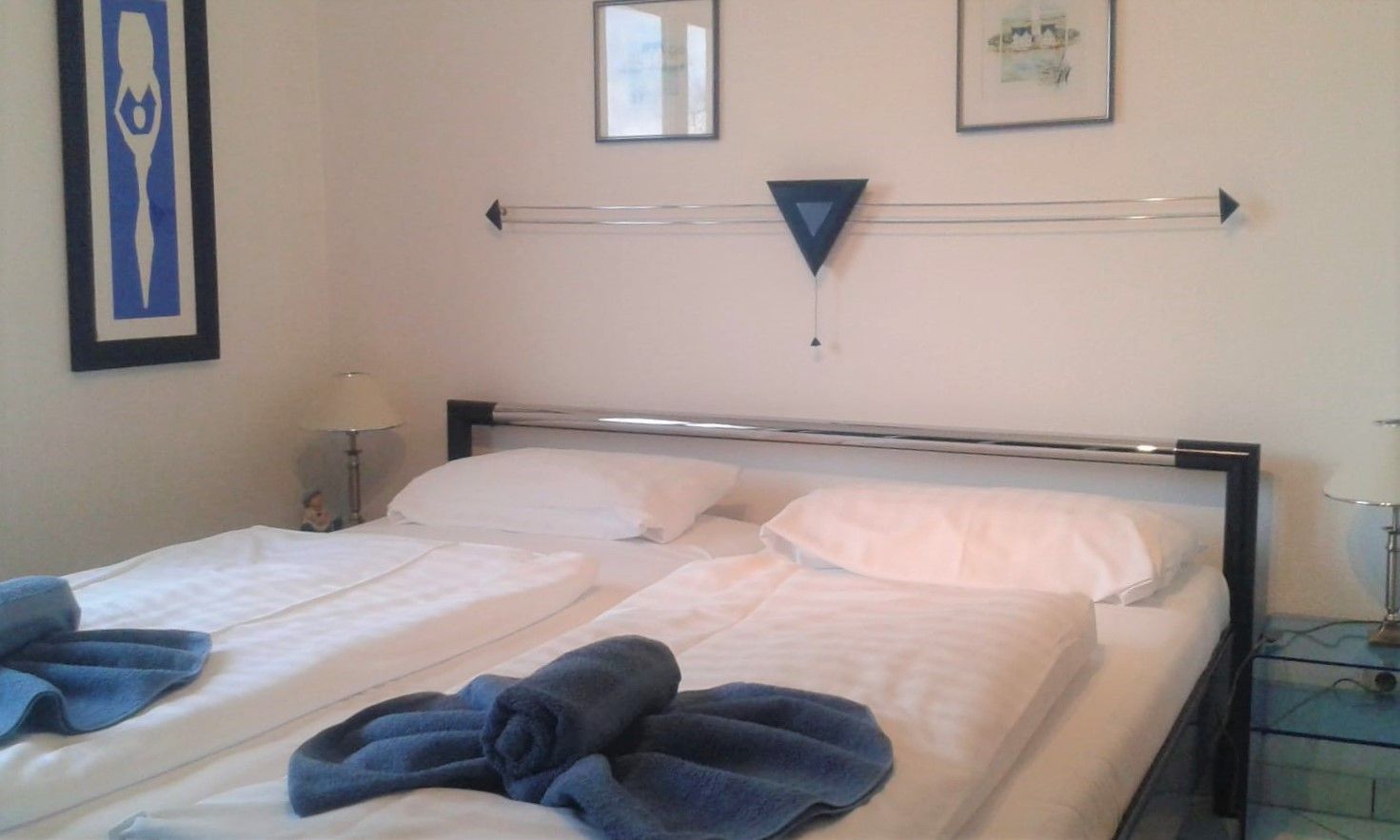 Im großzügigen Wohnzimmer befinden sich neben einer gemütlichen Sitzecke mit zwei Sofas auch ein großer Esstisch und die gut ausgestattete Einbauküche. Sie verfügt über Geschirrspüler, Kühl-/Gefrierkombination, Cerankochfeld, Backofen, Mikrowelle, Kaffeemaschine, Toaster und Wasserkocher. Flachbildfernseher und Stereoanlage sind zu Ihrer Kurzweil selbstverständlich ebenfalls vorhanden. Der Balkon liegt in südwestlicher Richtung und lädt zum Sonnenbaden und Frühstücken ein.