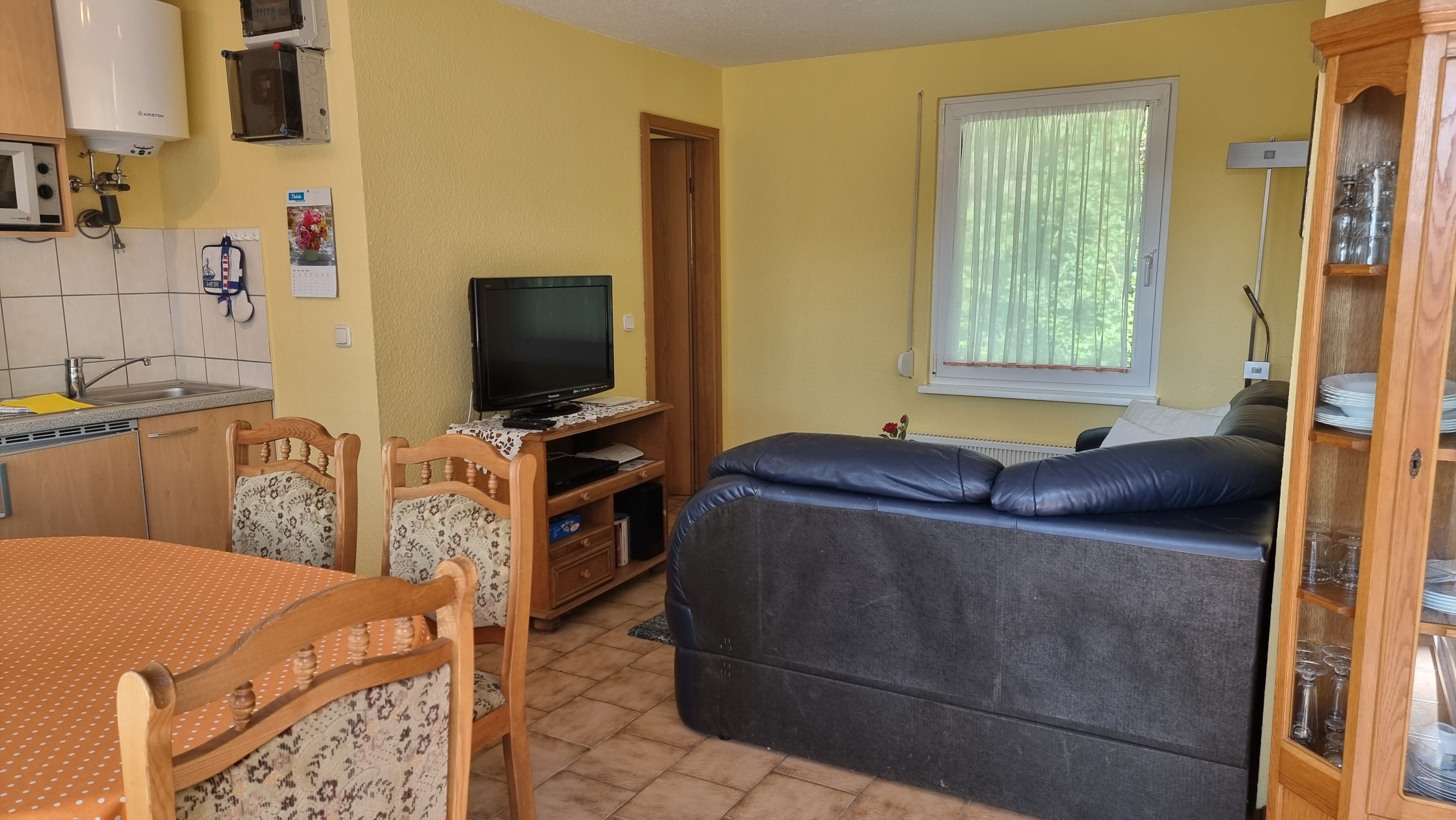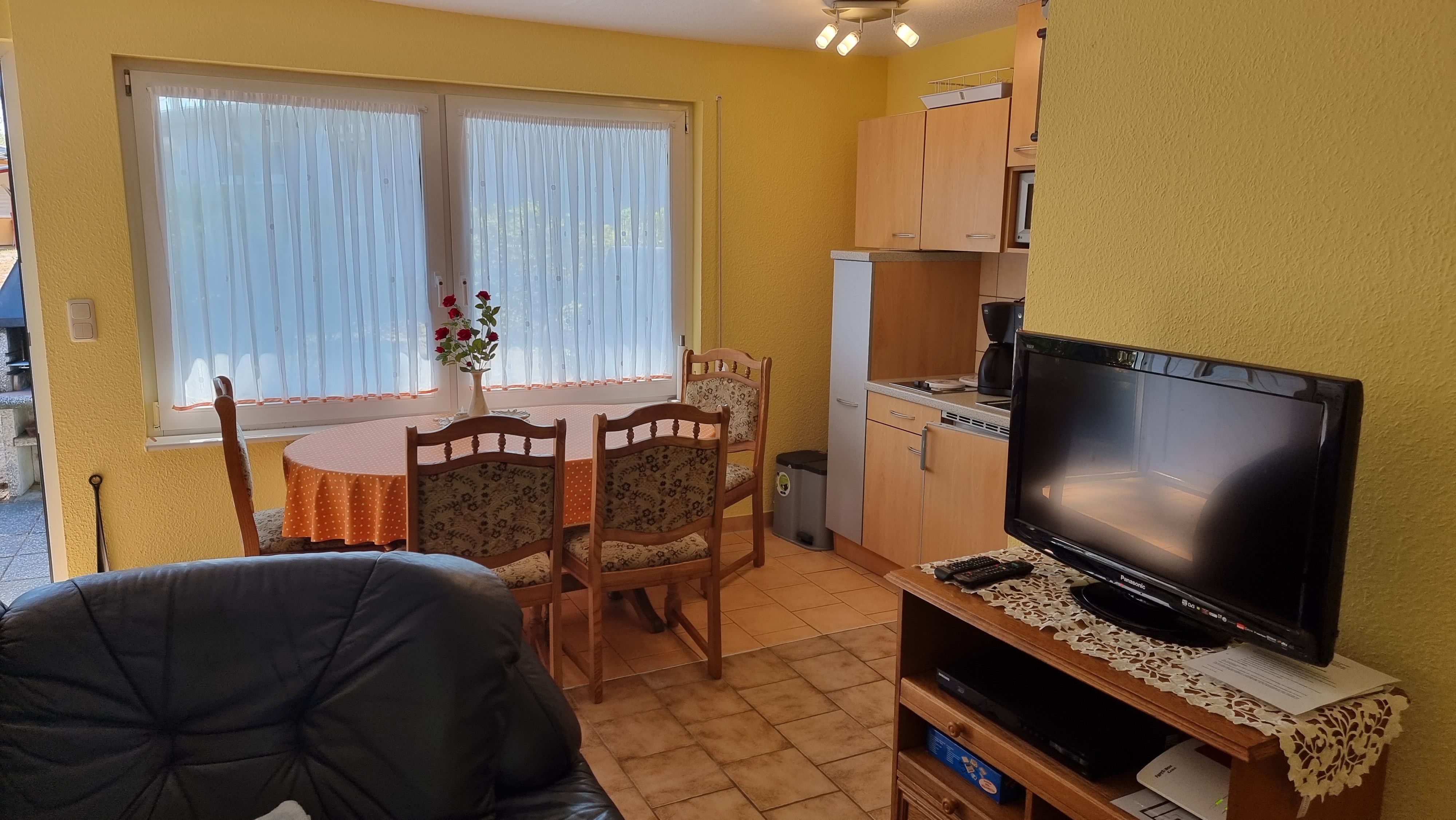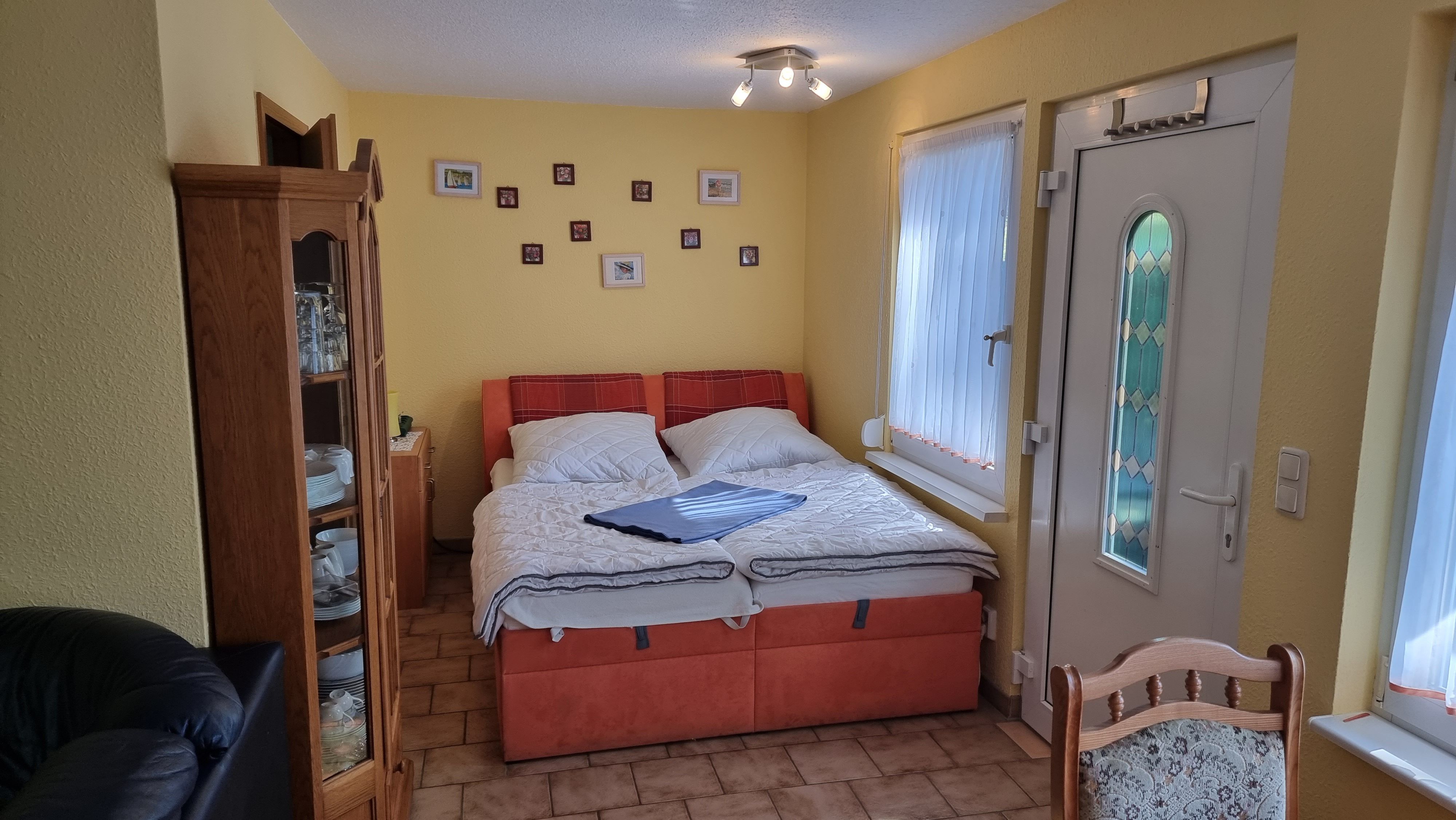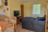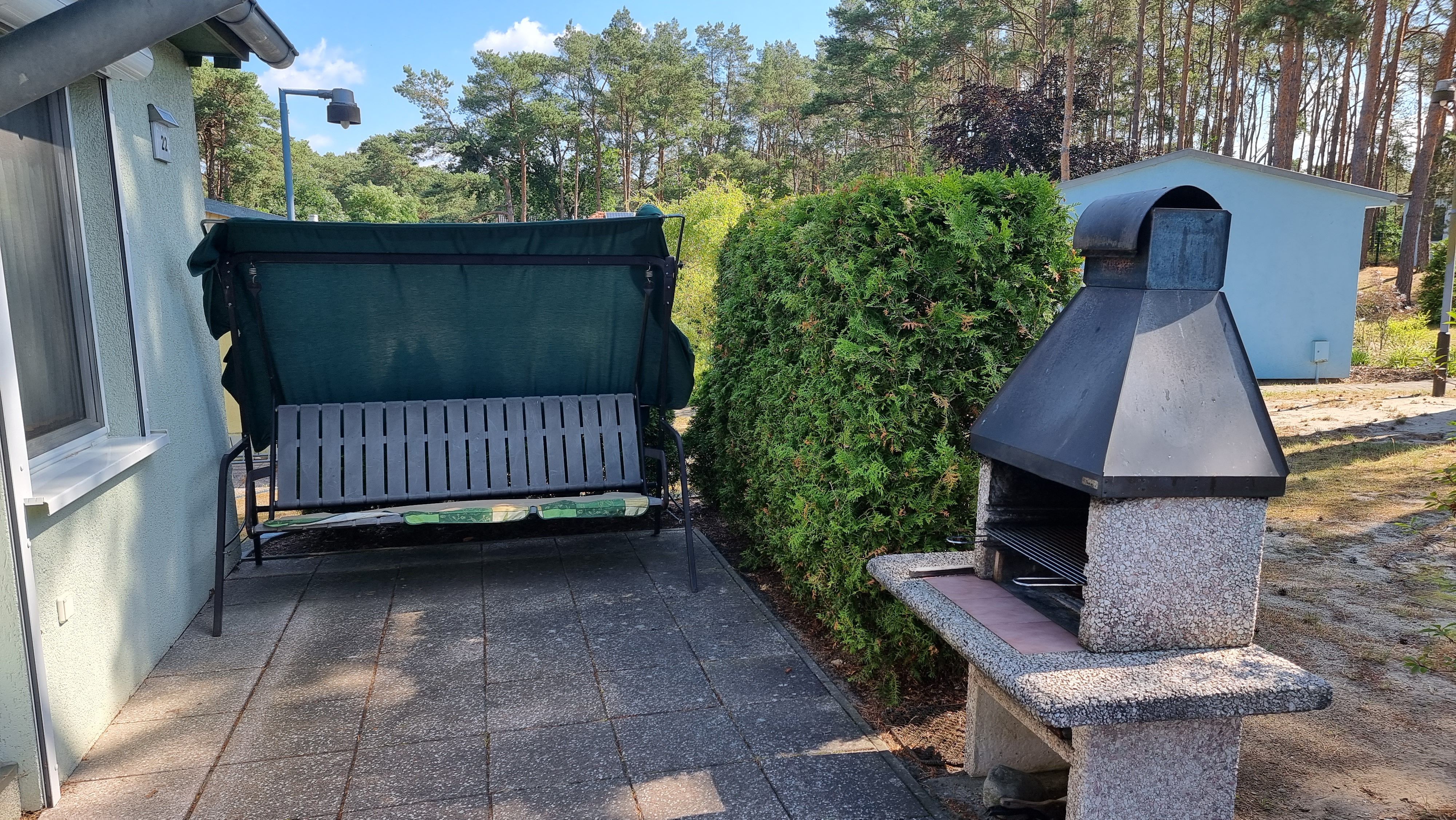 Geräumiger Bungalow mit einem Wohnraum (1,60 x 2 m Bett), einem Schlafzimmer (1,40 x 2 m Bett), eine im Wohnraum integrierte Kochnische mit Miniküche, Mixer und Padmaschine-Senseo, Dusche/WC mit Fön und eine möblierte Terrasse mit Grillmöglichkeit. Auf der Terrasse können Sie auf der Hollywoodschaukel die Seele baumeln lassen. Kabel-TV, DVD/CD, Radio sowie WLAN vorhanden.