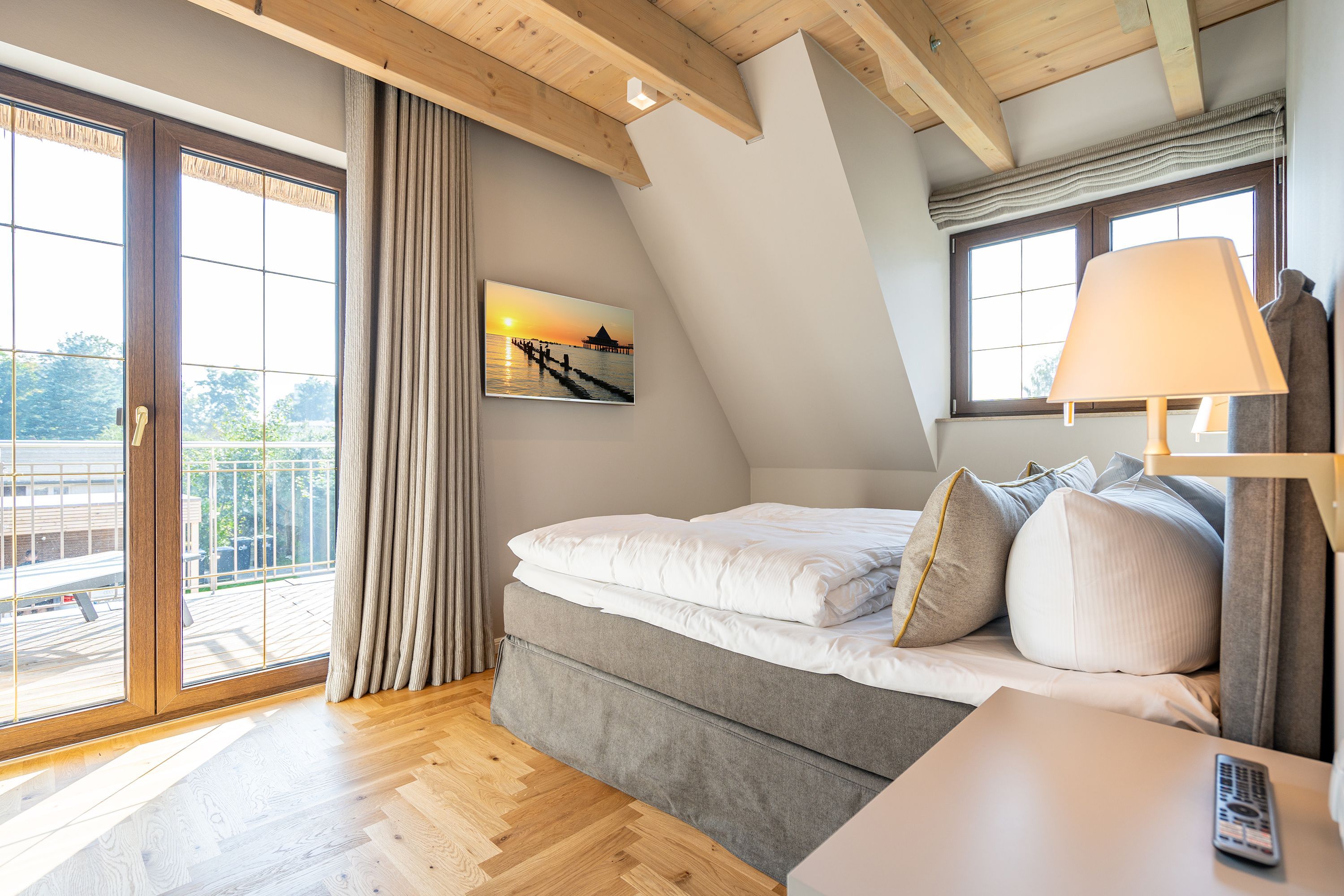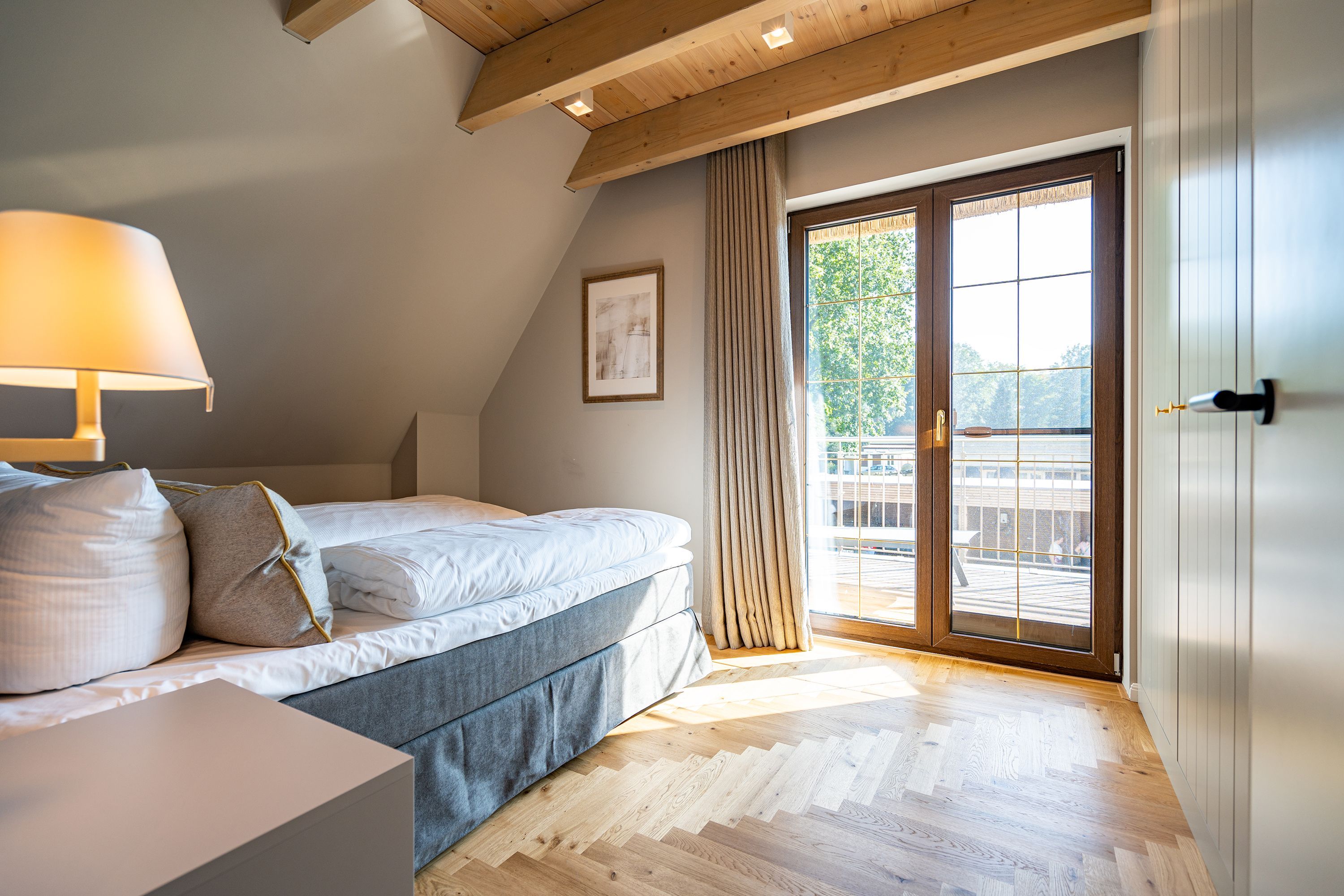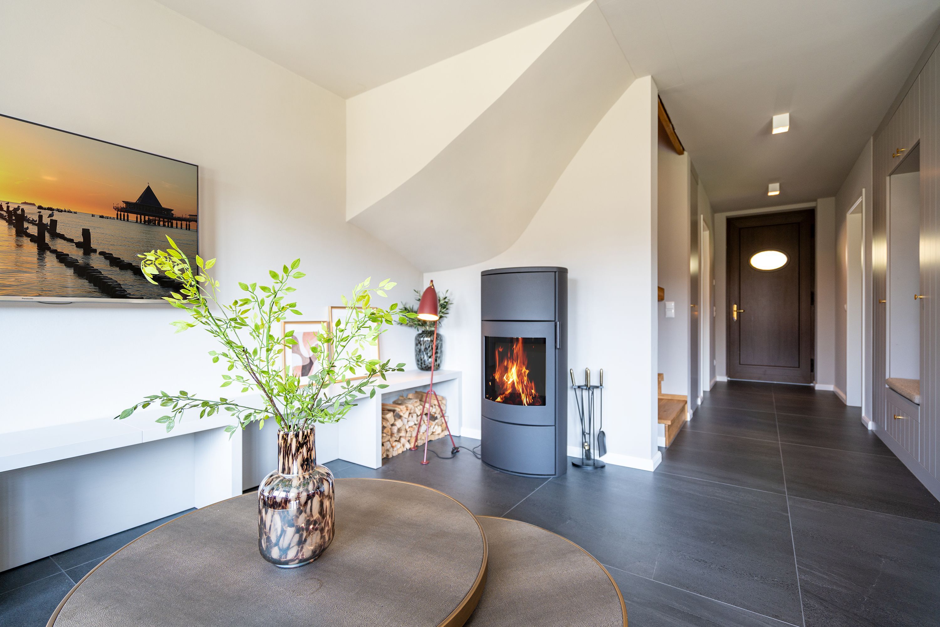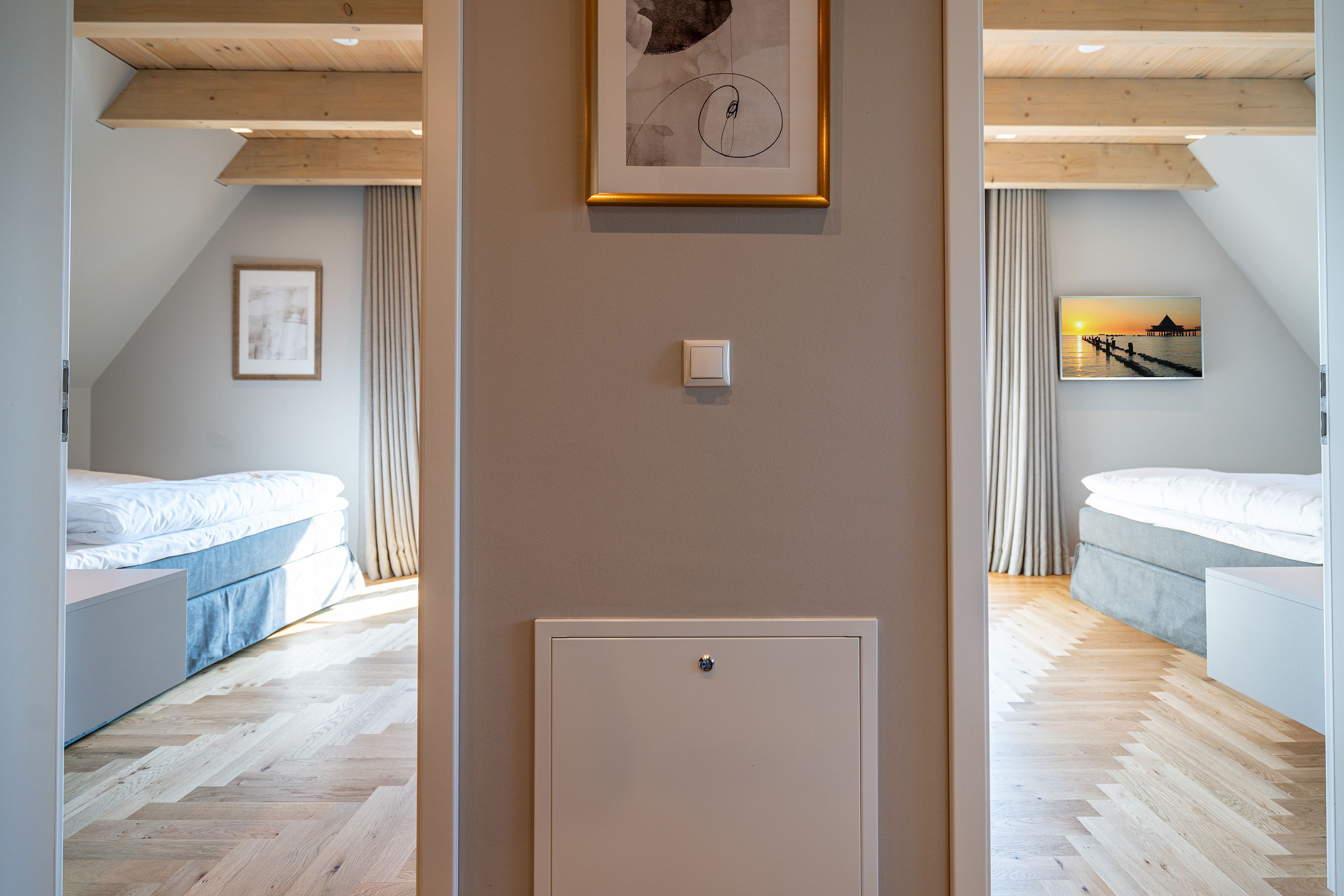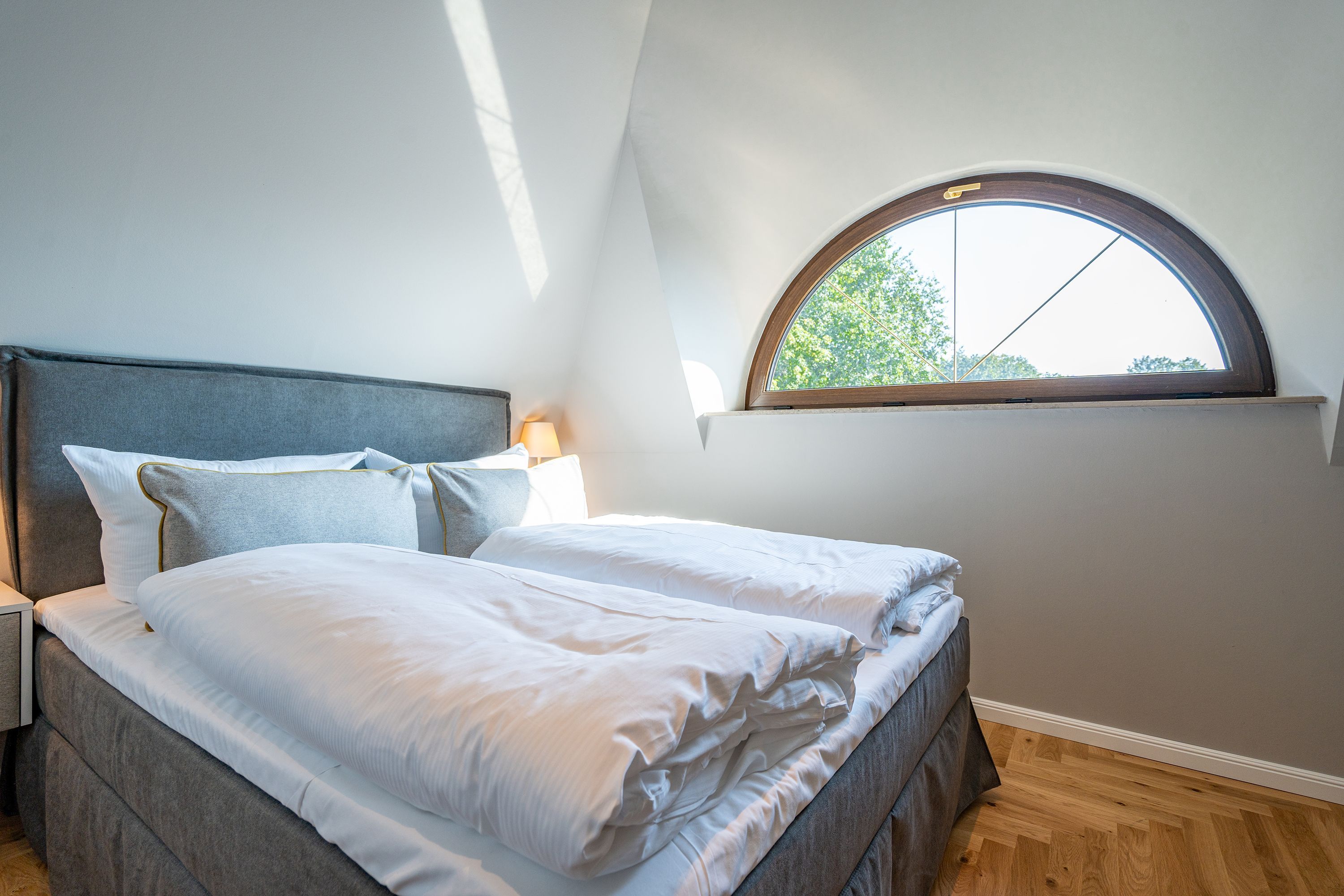 Gemütlich, stilvoll und großzügig - sind die richtigen Attribute für das Ferienhaus Reet & Meer N° 4. Auf den insgesamt 129 Quadratmetern und drei Etagen haben bis zu 8 Personen Platz für einen erholsamen Urlaub auf der Sonneninsel Usedom. Die Sonne können Sie auch von Ihrer großzügigen Terrasse oder vom Garten aus genießen. Hierfür stehen Ihnen zwei Sonnenliegen zur Verfügung. Ein großer Esstisch mit Sitzmöglichkeiten für bis zu 8 Personen befindet sich hier ebenfalls und lässt ein Frühstück unter freiem Himmel wahr werden. Die von Innenarchitekten konzipierte Einrichtung zieht sich wie ein roter Faden durch alle Etagen. Ein besonderes Augenmerk wurde auf die Gemütlichkeit gelegt. Der Wohn-Essbereich mit seinen komfortablen Sitzlandschaften und einer zusätzlichen Bank laden zum gemeinsamen Verweilen mit der Familie oder Freunden ein. Ein Flat-TV sowie ein Holzkamin bringen auch an kühleren Abenden Abwechslung in Ihren Urlaub. Keine Wünsche beim Zubereiten Ihrer Speisen lässt die angrenzende Küche offen. Bei einem gemeinsamen Glas Wein lässt es sich ganz wunderbar miteinander Kochen. Für lange Spieleabende oder Gesprächsrunden eignet sich der große Holztisch mit seiner Sitzbank und den bequemen Armlehnstühlen. Selbstverständlich haben Sie von hier aus einen Zugang zum Außengelände. Ein Masterbad mit Finnischer Sauna darf im Erdgeschoss ebenfalls nicht fehlen. Mit Dusche, Waschtisch und WC ausgestattet, können Sie hier nicht nur im Winter wohlige Stunden verbringen. Eine Etage höher befinden sich drei von insgesamt vier Schlafzimmern, die alle mit Boxspringbetten (1,80m x 2,00m) ausgestattet sind. Erholsamer Schlaf garantiert. Besonderen Charme versprühen die offen gehaltenen Dachbalken und der schöne Parkettboden mit Fischgrätmuster. Zwei Schlafzimmer verfügen zusätzlich über einen Flat-TV und einen gemeinsamen Zugang zu einem kleinen Balkon. Ausreichend Schrankraum (beleuchtet) für Ihre Urlaubsgarderobe steht Ihnen in allen Zimmern zur Verfügung. Ein weiteres Badezimmer mit begehbarer Dusche, Waschtisch und WC rundet diese Etage ab. Unter dem Dach geht es ebenfalls gemütlich her: Ein Schlafzimmer mit Boxspringbett (1,60m x 2,00m) sowie ein Flat-TV und ein separates Gäste-WC stehen Ihnen unter dem Dach zur Verfügung. Ein Gaubenfenster (aktuell noch ohne Verdunklungsmöglichkeit) rundet das vierte Schlafzimmer ab. Für Ihren Komfort sind die Betten bei Anreise bezogen und Handtücher liegen für Sie bereit. Zudem befinden sich unter dem Carport zwei PKW-Stellplätze am Haus N° 4 sowie ein Schuppen für Ihre Fahrräder. Ein Waschtrockner sowie kostenfreies W-Lan runden dieses Urlaubsdomizil ab.