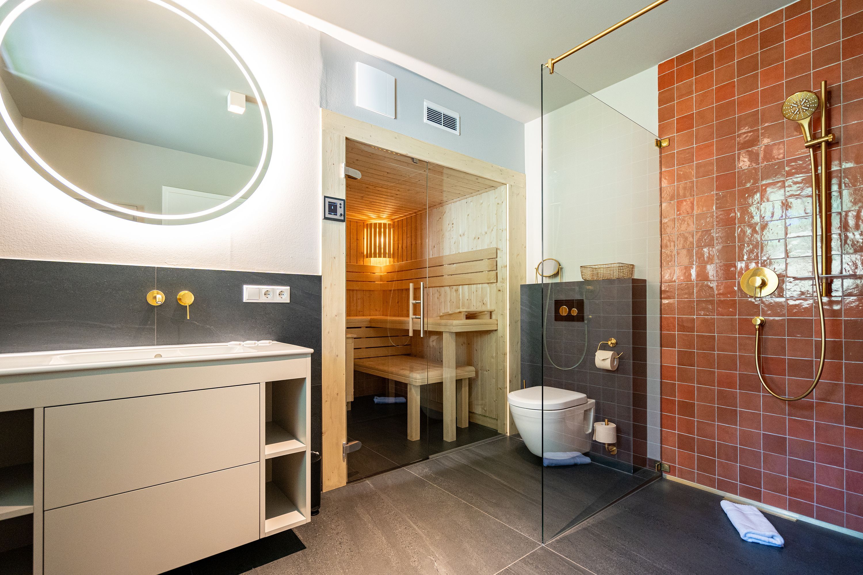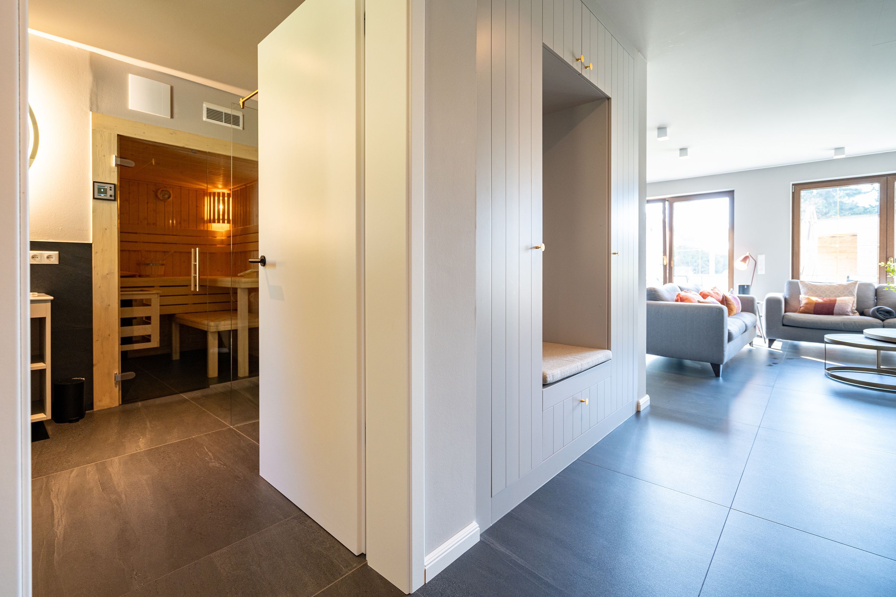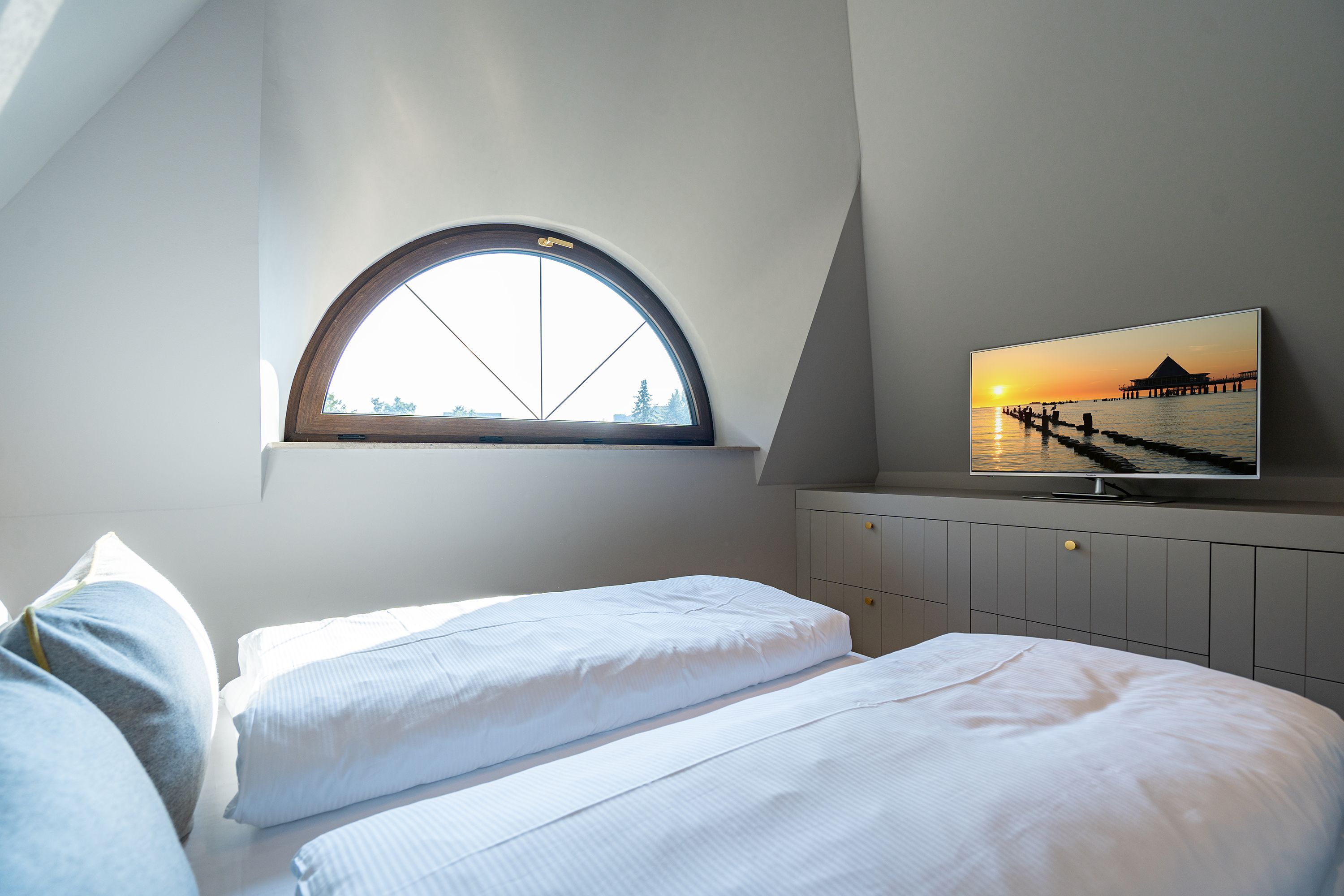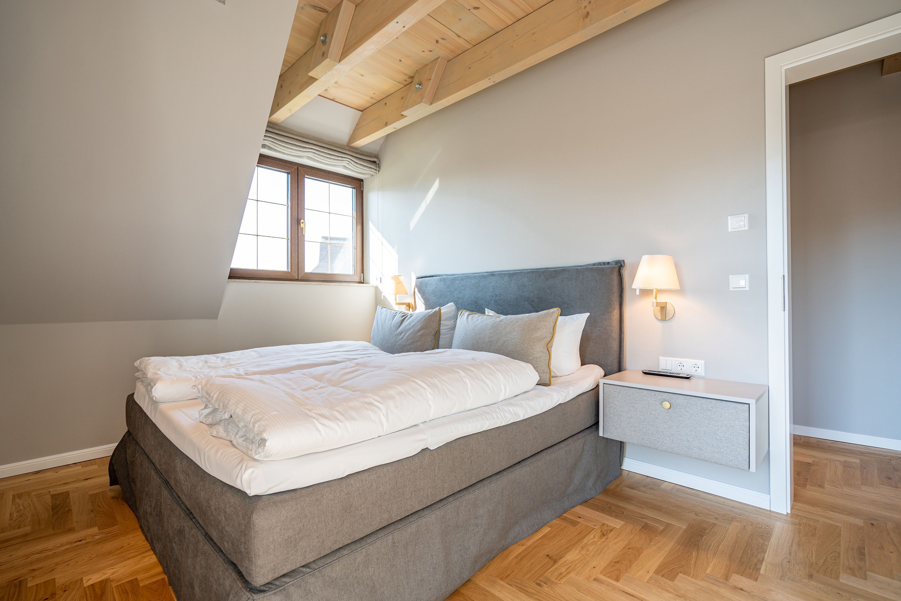 Gemütlich, stilvoll und großzügig - sind die richtigen Attribute für das Ferienhaus Reet & Meer N° 4. Auf den insgesamt 129 Quadratmetern und drei Etagen haben bis zu 8 Personen Platz für einen erholsamen Urlaub auf der Sonneninsel Usedom. Die Sonne können Sie auch von Ihrer großzügigen Terrasse oder vom Garten aus genießen. Hierfür stehen Ihnen zwei Sonnenliegen zur Verfügung. Ein großer Esstisch mit Sitzmöglichkeiten für bis zu 8 Personen befindet sich hier ebenfalls und lässt ein Frühstück unter freiem Himmel wahr werden. Die von Innenarchitekten konzipierte Einrichtung zieht sich wie ein roter Faden durch alle Etagen. Ein besonderes Augenmerk wurde auf die Gemütlichkeit gelegt. Der Wohn-Essbereich mit seinen komfortablen Sitzlandschaften und einer zusätzlichen Bank laden zum gemeinsamen Verweilen mit der Familie oder Freunden ein. Ein Flat-TV sowie ein Holzkamin bringen auch an kühleren Abenden Abwechslung in Ihren Urlaub. Keine Wünsche beim Zubereiten Ihrer Speisen lässt die angrenzende Küche offen. Bei einem gemeinsamen Glas Wein lässt es sich ganz wunderbar miteinander Kochen. Für lange Spieleabende oder Gesprächsrunden eignet sich der große Holztisch mit seiner Sitzbank und den bequemen Armlehnstühlen. Selbstverständlich haben Sie von hier aus einen Zugang zum Außengelände. Ein Masterbad mit Finnischer Sauna darf im Erdgeschoss ebenfalls nicht fehlen. Mit Dusche, Waschtisch und WC ausgestattet, können Sie hier nicht nur im Winter wohlige Stunden verbringen. Eine Etage höher befinden sich drei von insgesamt vier Schlafzimmern, die alle mit Boxspringbetten (1,80m x 2,00m) ausgestattet sind. Erholsamer Schlaf garantiert. Besonderen Charme versprühen die offen gehaltenen Dachbalken und der schöne Parkettboden mit Fischgrätmuster. Zwei Schlafzimmer verfügen zusätzlich über einen Flat-TV und einen gemeinsamen Zugang zu einem kleinen Balkon. Ausreichend Schrankraum (beleuchtet) für Ihre Urlaubsgarderobe steht Ihnen in allen Zimmern zur Verfügung. Ein weiteres Badezimmer mit begehbarer Dusche, Waschtisch und WC rundet diese Etage ab. Unter dem Dach geht es ebenfalls gemütlich her: Ein Schlafzimmer mit Boxspringbett (1,60m x 2,00m) sowie ein Flat-TV und ein separates Gäste-WC stehen Ihnen unter dem Dach zur Verfügung. Ein Gaubenfenster (aktuell noch ohne Verdunklungsmöglichkeit) rundet das vierte Schlafzimmer ab. Für Ihren Komfort sind die Betten bei Anreise bezogen und Handtücher liegen für Sie bereit. Zudem befinden sich unter dem Carport zwei PKW-Stellplätze am Haus N° 4 sowie ein Schuppen für Ihre Fahrräder. Ein Waschtrockner sowie kostenfreies W-Lan runden dieses Urlaubsdomizil ab.