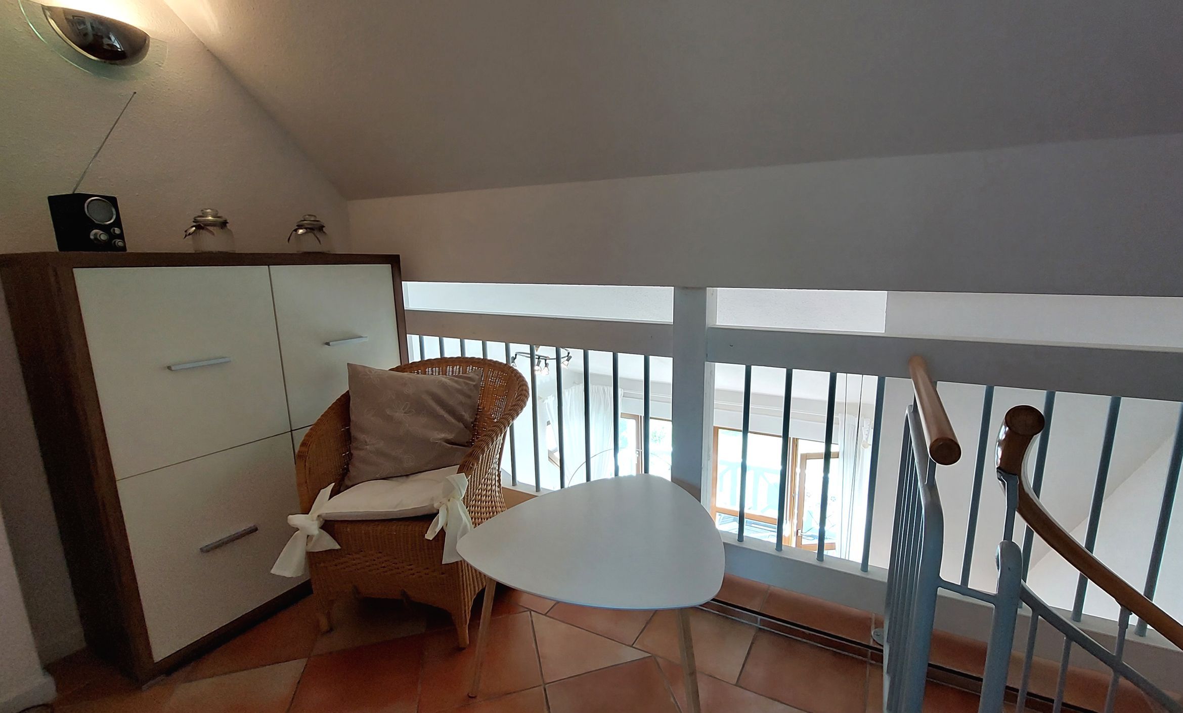 Ebenfalls im Obergeschoß kann man in hellen und gemütlichen Loggia verweilen.