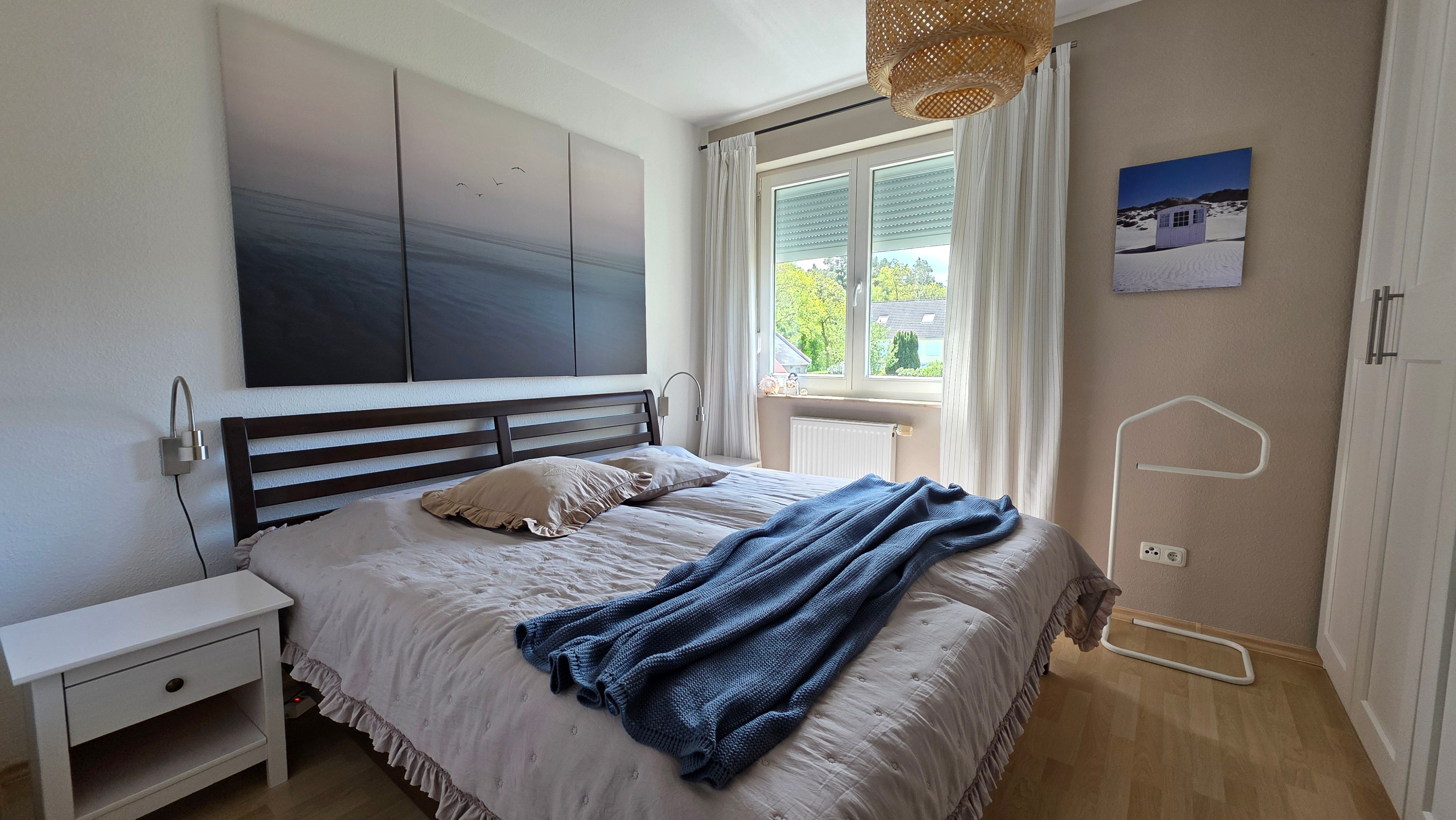 Die Wohnung ist ca. 63 qm groß. Sie verfügt über einen separaten Eingang. Über eine Außentreppe gelangt man in den großzügigen Wohnungsflur. Der gemütliche, helle und freundliche Wohn-Essbereich bietet Zugang zum Balkon, der mit seiner attraktiven Süd-Ausrichtung ungezählte sonnige Momente bietet. Weiter gibt es zwei Schlafzimmer, eins mit Doppelbett und eins mit zwei einzeln stehenden Betten. Die helle Küche verfügt über eine praktische Durchreiche zum Essbereich. Das Tageslichtbad komplettiert das Raumangebot. Einen Fahrradabstellraum finden Sie im Keller.