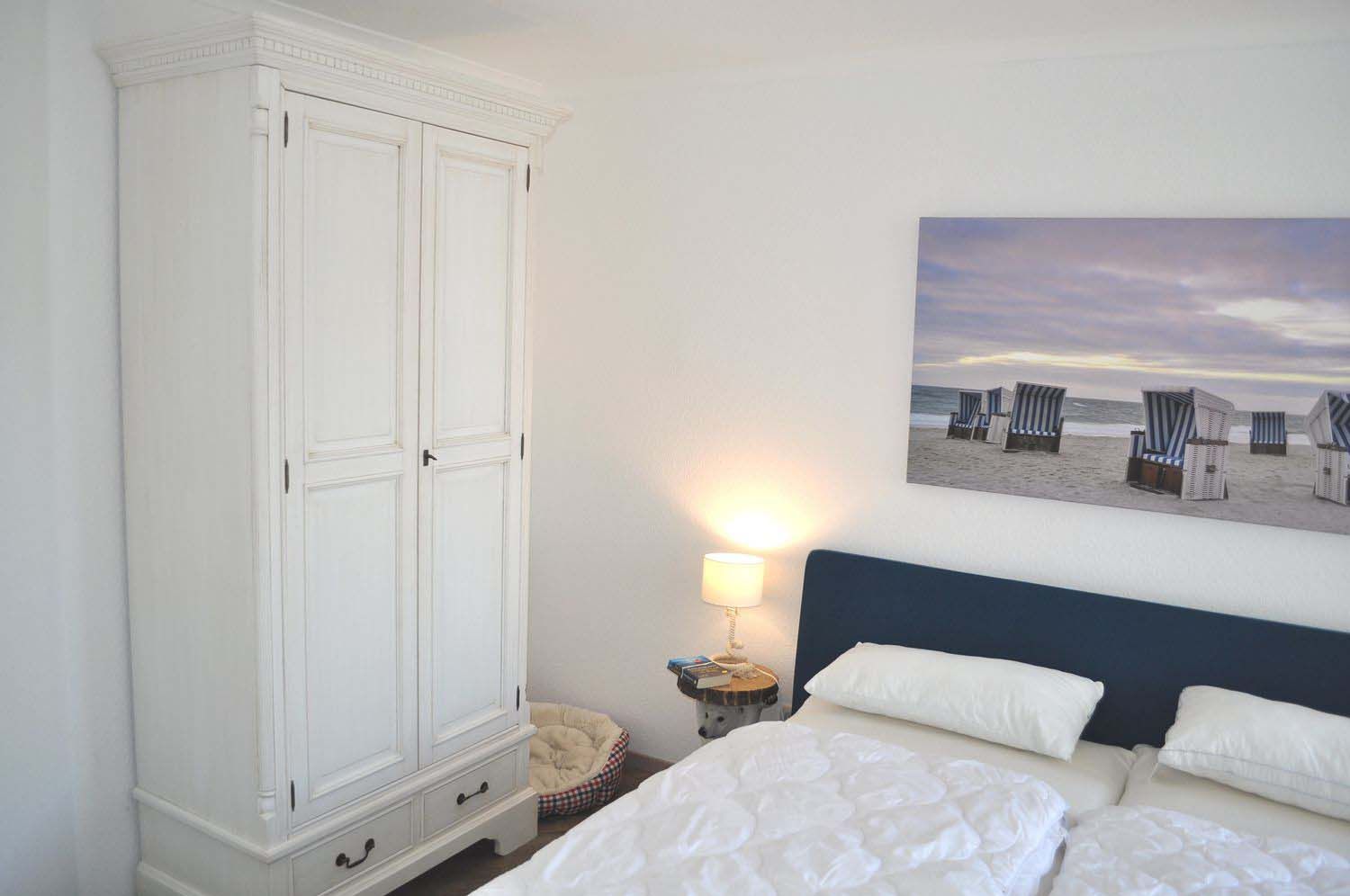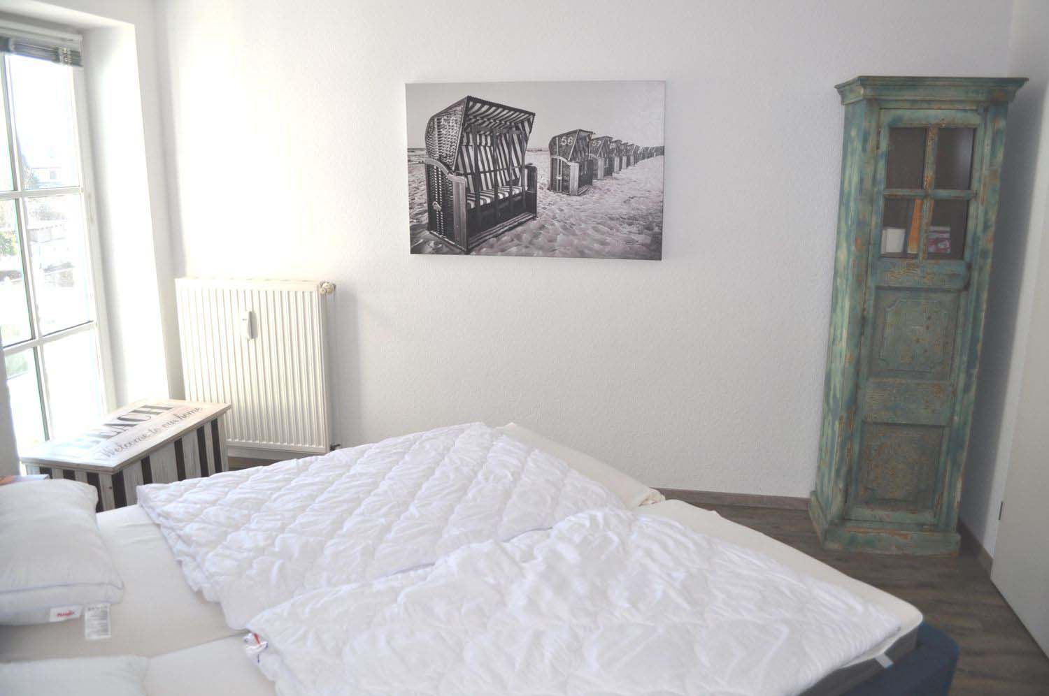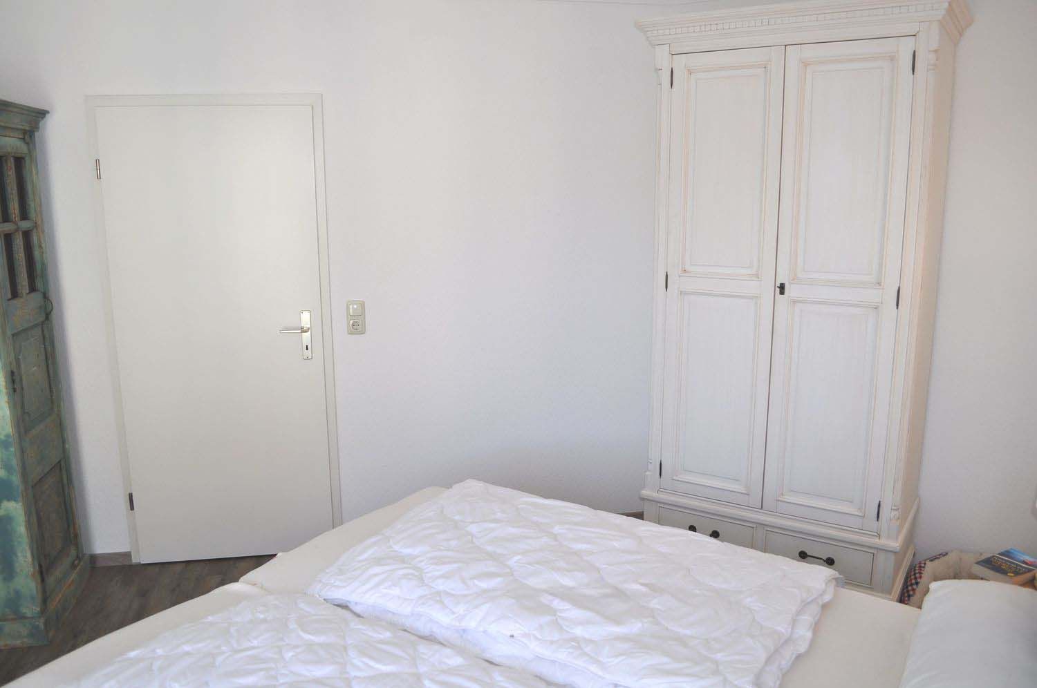 Schlafzimmer 1: 2 Matratzen, 2 Nachttische, Doppelbett 2,00 x 1,80 m, Kleiderschrank, Schrank, Stummerdiener mit Spiegel, Truhe