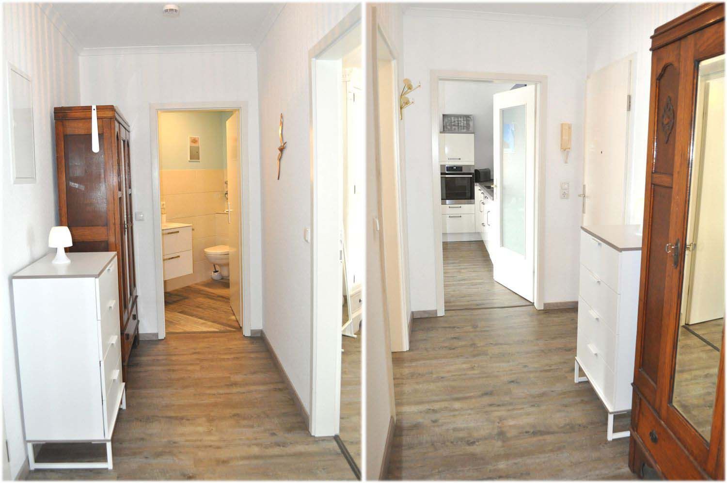 Flur: Garderobenschrank, Kommode, Spiegel, Staubsauger