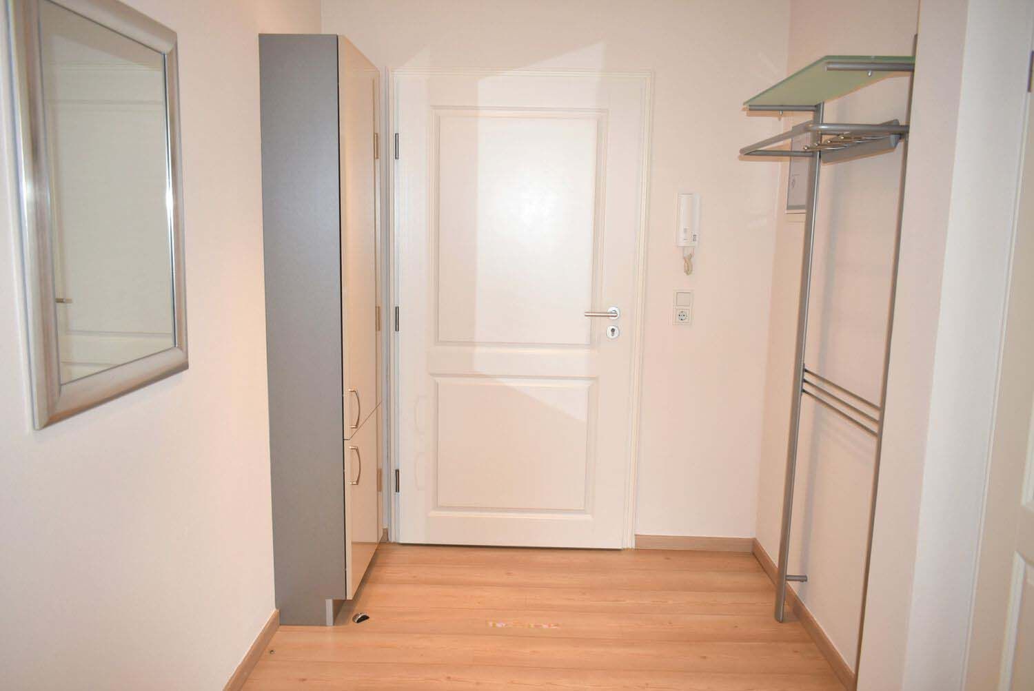 Flur: Besenschrank, Garderobe, Spiegel, Staubsauger, Wäscheständer