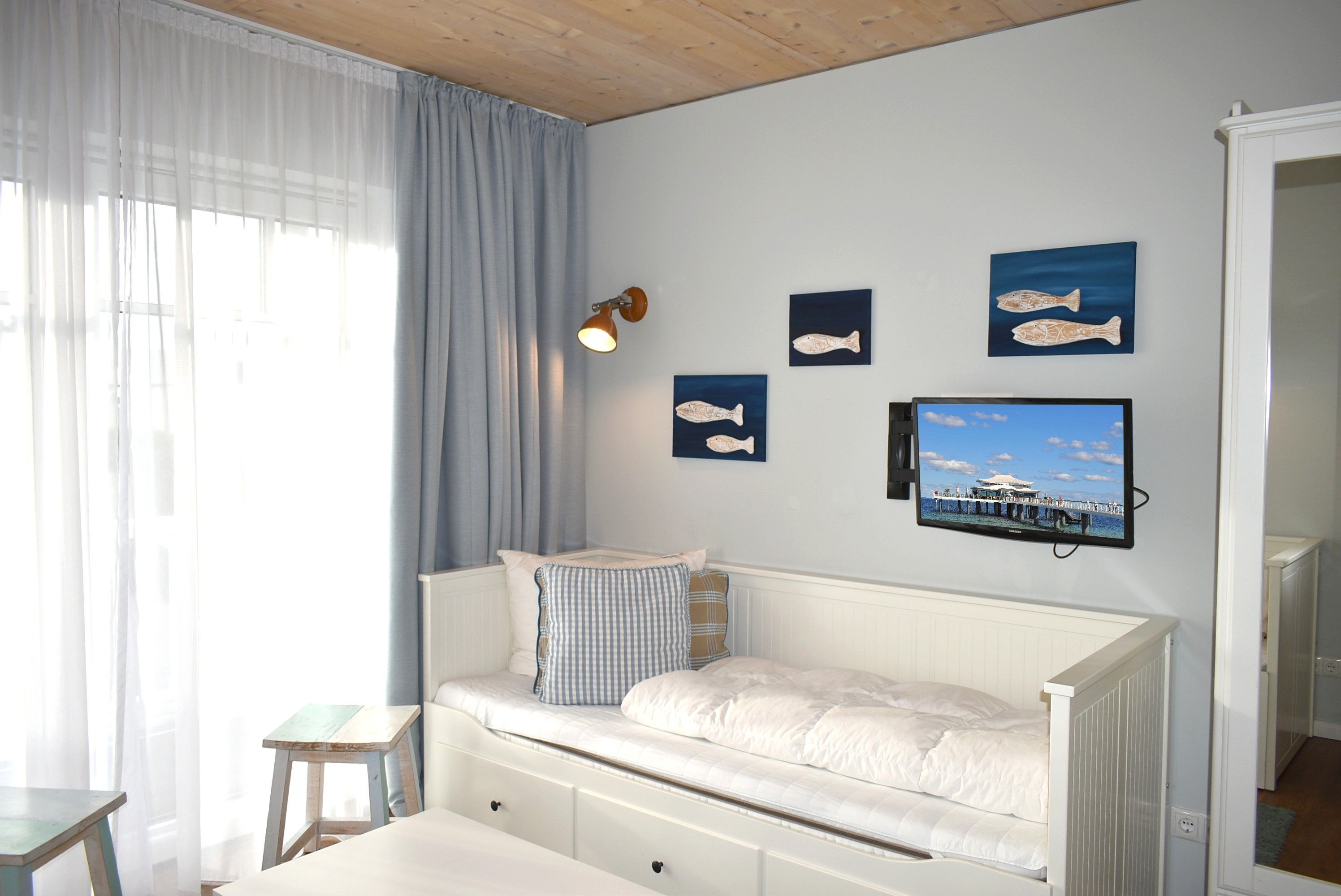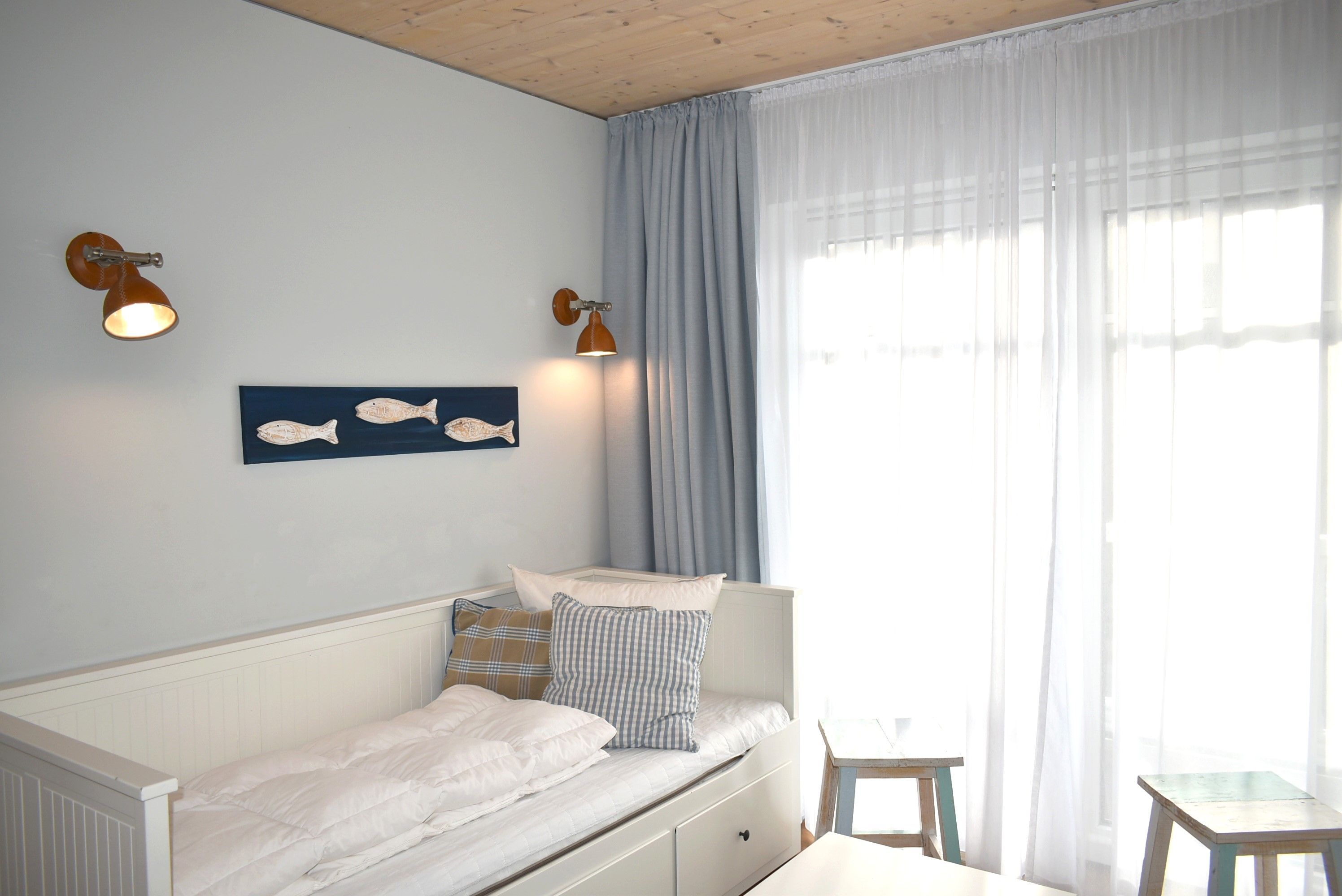 Schlafzimmer 2: 2 Einzelbetten 2,00 x 0,80 m, 2 Hocker, Flachbildschirm, Kleiderschrank, Kommode, Sat-TV, Spiegel, Tisch