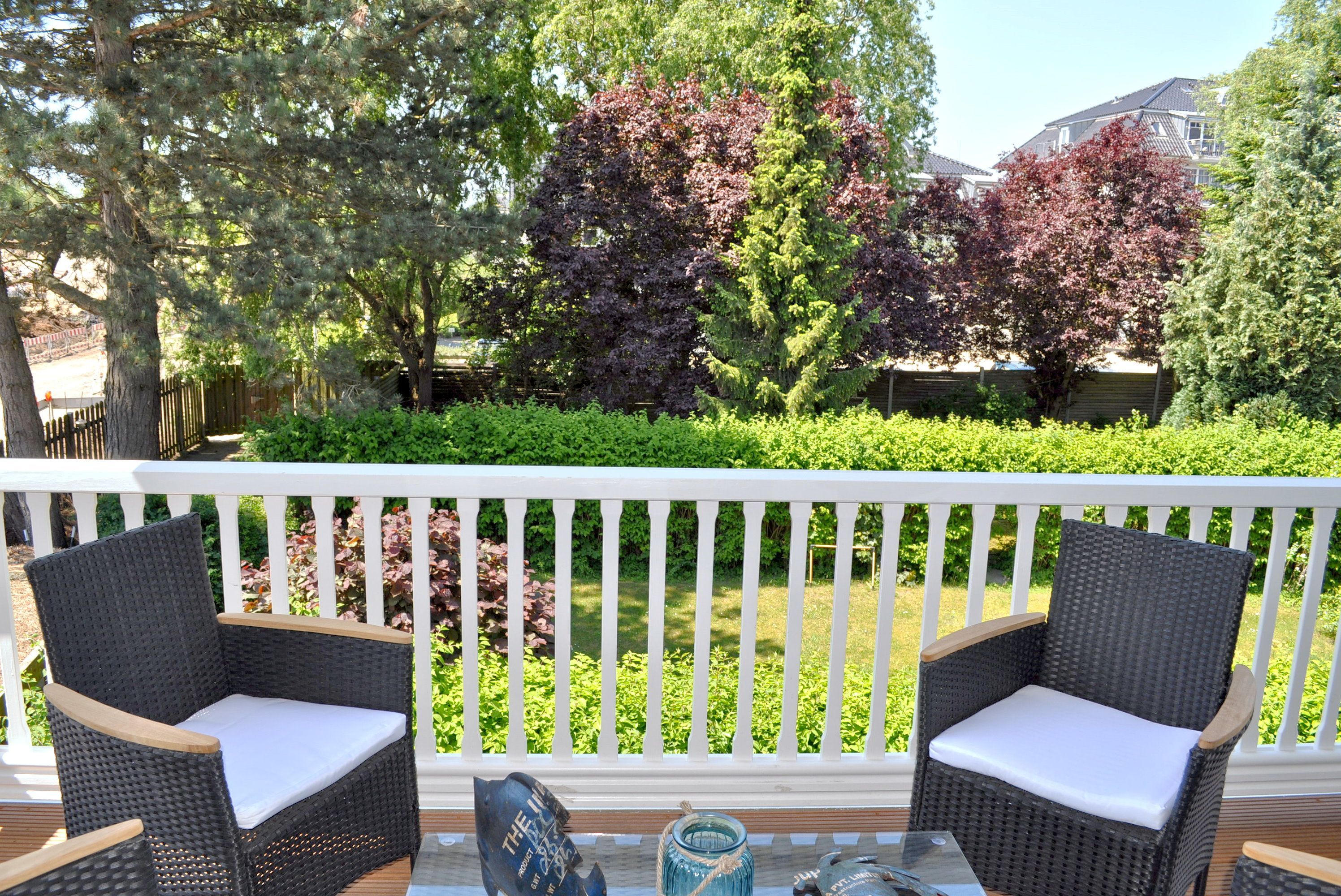 Balkon 2: Süd- Westlage, 2 Korbstühle, überdacht