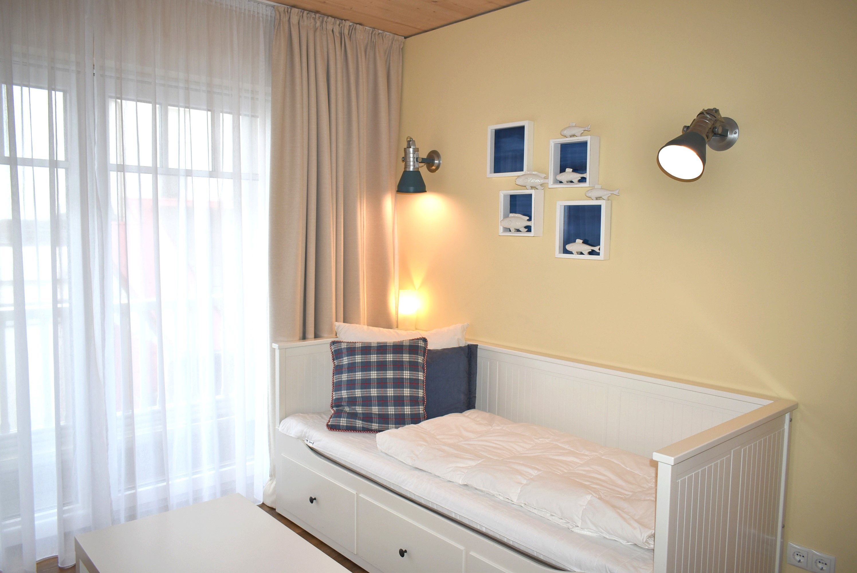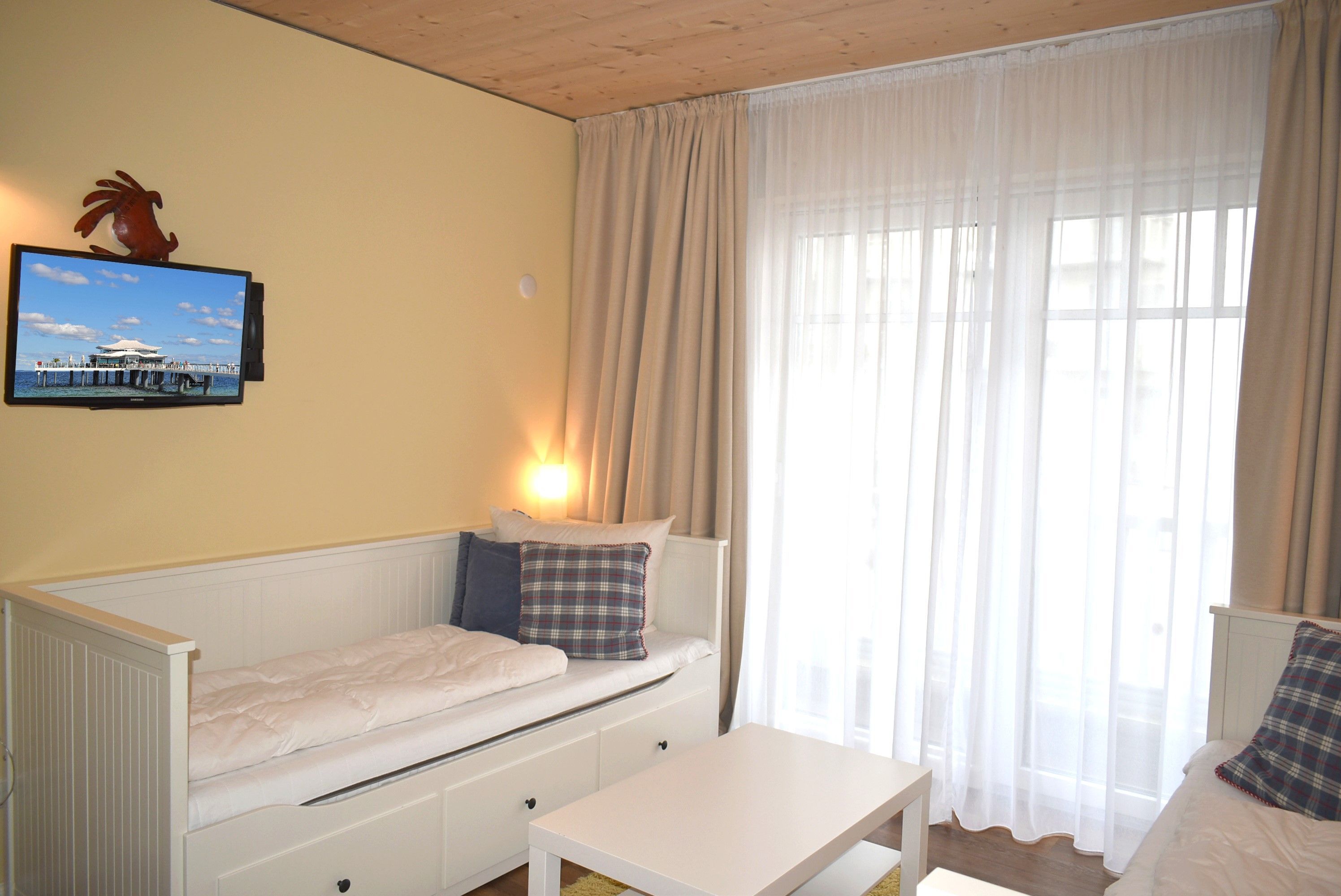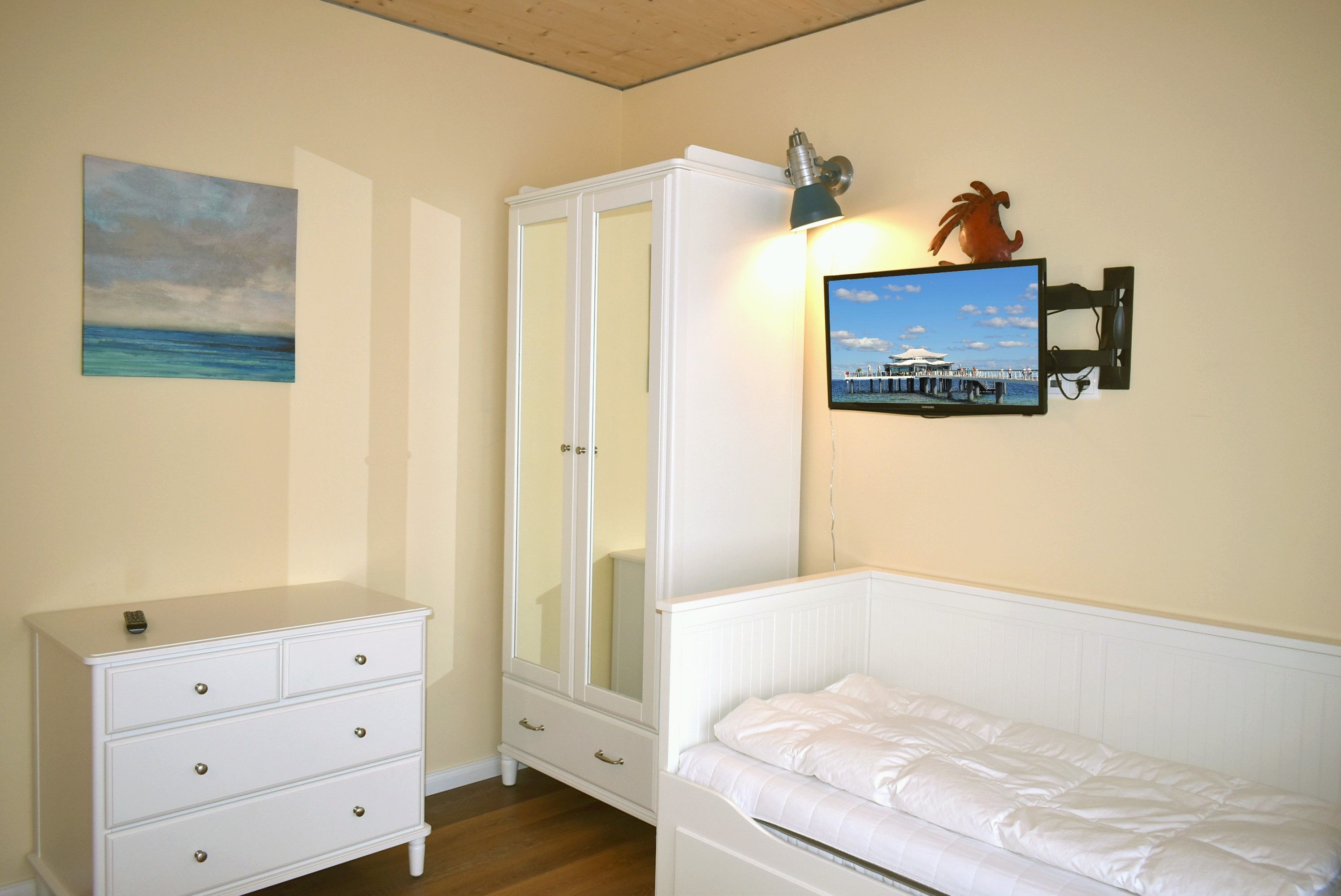 Schlafzimmer 2: 2 Einzelbetten 2,00 x 0,80 m, 2 Hocker, Flachbildschirm, Kleiderschrank, Kommode, Sat-TV, Tisch