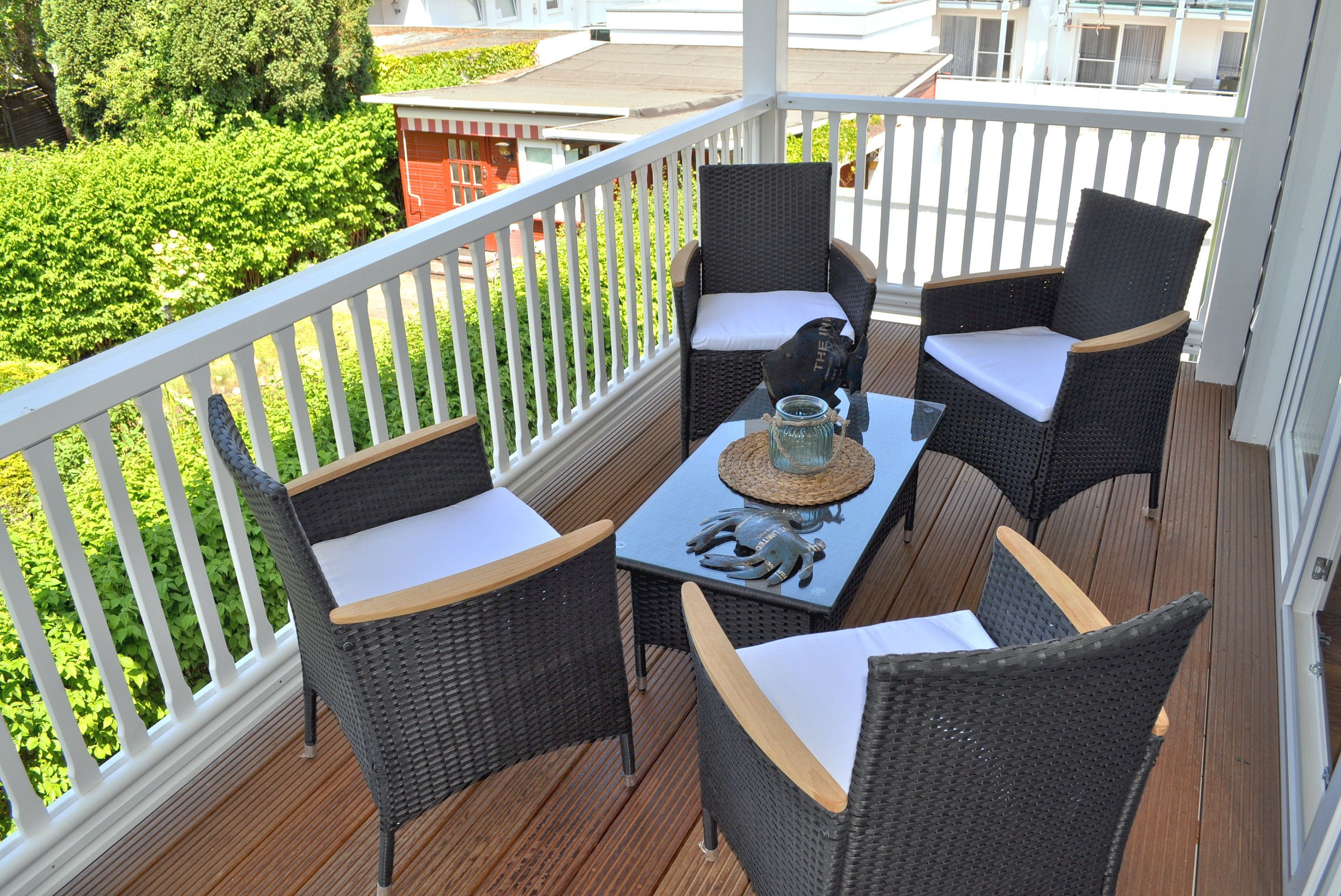 Balkon: 4 Korbstühle, Nord- Westlage, Tisch, überdacht