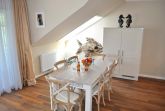 Wohnzimmer: 2 Beistelltische, 2 Sessel, 3 Tischlampen, 4 Plattenherd mit Ceranfeld und Backofen, 6 Stühle, Anrichte, Couchtisch, Dunstabzugshaube, Eierkocher, Esstisch, Flachbildschirm, Gefrierschrank mit 2 Schubladen, Geschirr, Handmixer, Kaffeemaschine, Kochtöpfe, Küchenzeile, Kühlschrank, Mikrowelle, Sat-TV, Schlafcouch, Spülmaschine, Toaster, Waage, Wasserkocher