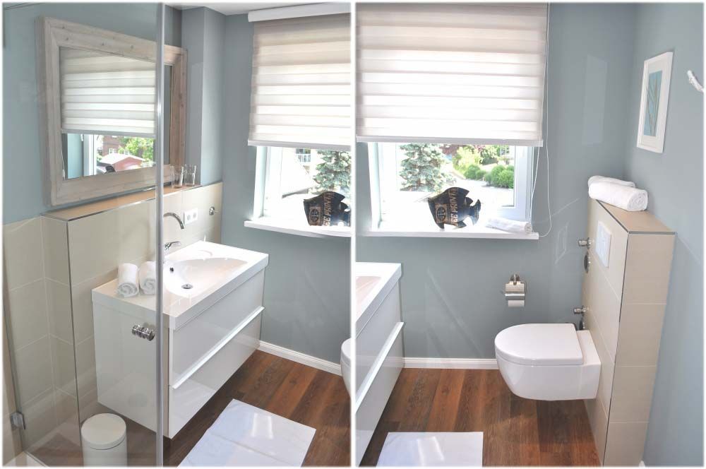 Bad 2: Duschkabine, Regen-Dusche, Spiegel, Unterschrank, Waschtisch, WC