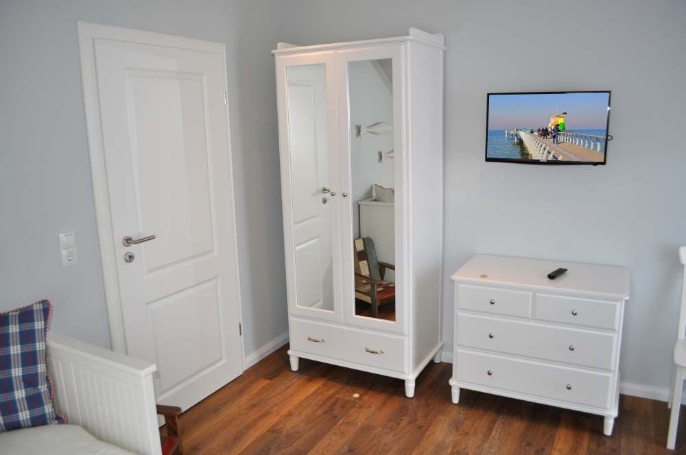 Schlafzimmer 2: 2 Einzelbetten 2,00 x 0,80 m, 2 Hocker, Flachbildschirm, Kleiderschrank, Kommode, Sat-TV, Spiegel, Tisch