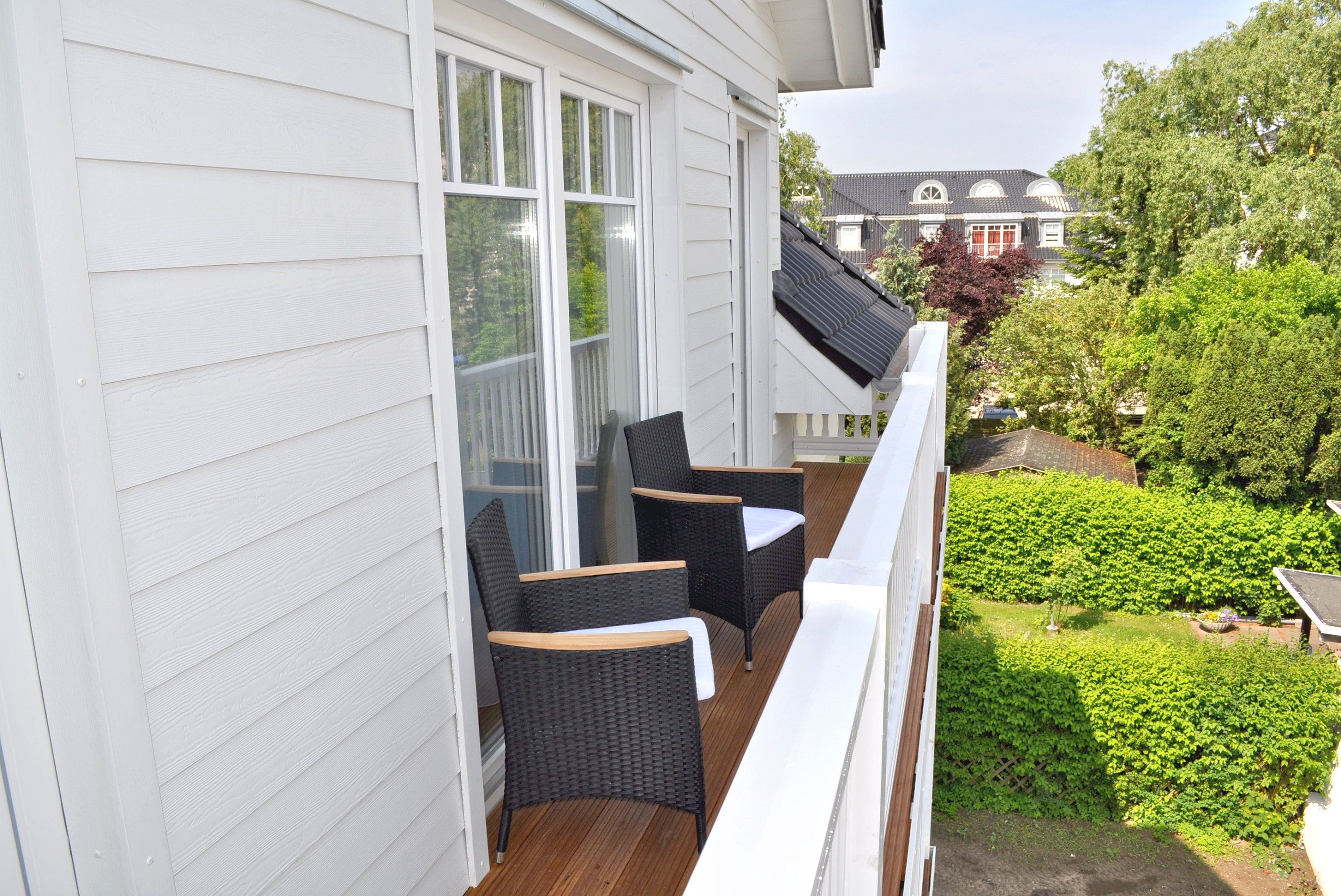 Balkon 2: Nord- Ostlage, 2 Korbstühle, überdacht