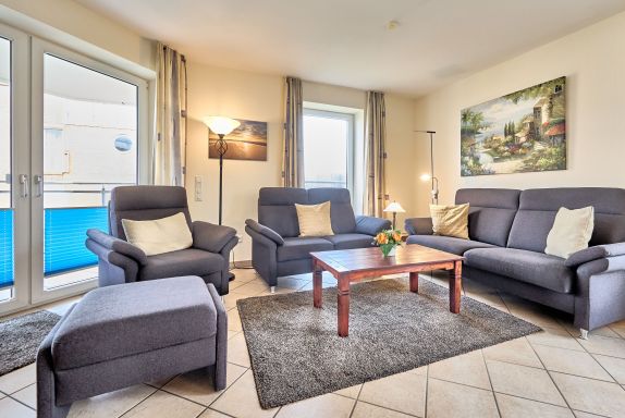 Strandpalais Duhnen Neuwerkblick / Haus 2 / Eingang C / FeWo C18, Wehrbergsweg 32c, Nichtraucherwohnung, 3-Raum, 2.OG, ca. 90m², bis zu 4 Personen, Blick auf die Nordsee und Neuwerk - einfach ein toller Nordsee- und Neuwerkblick.