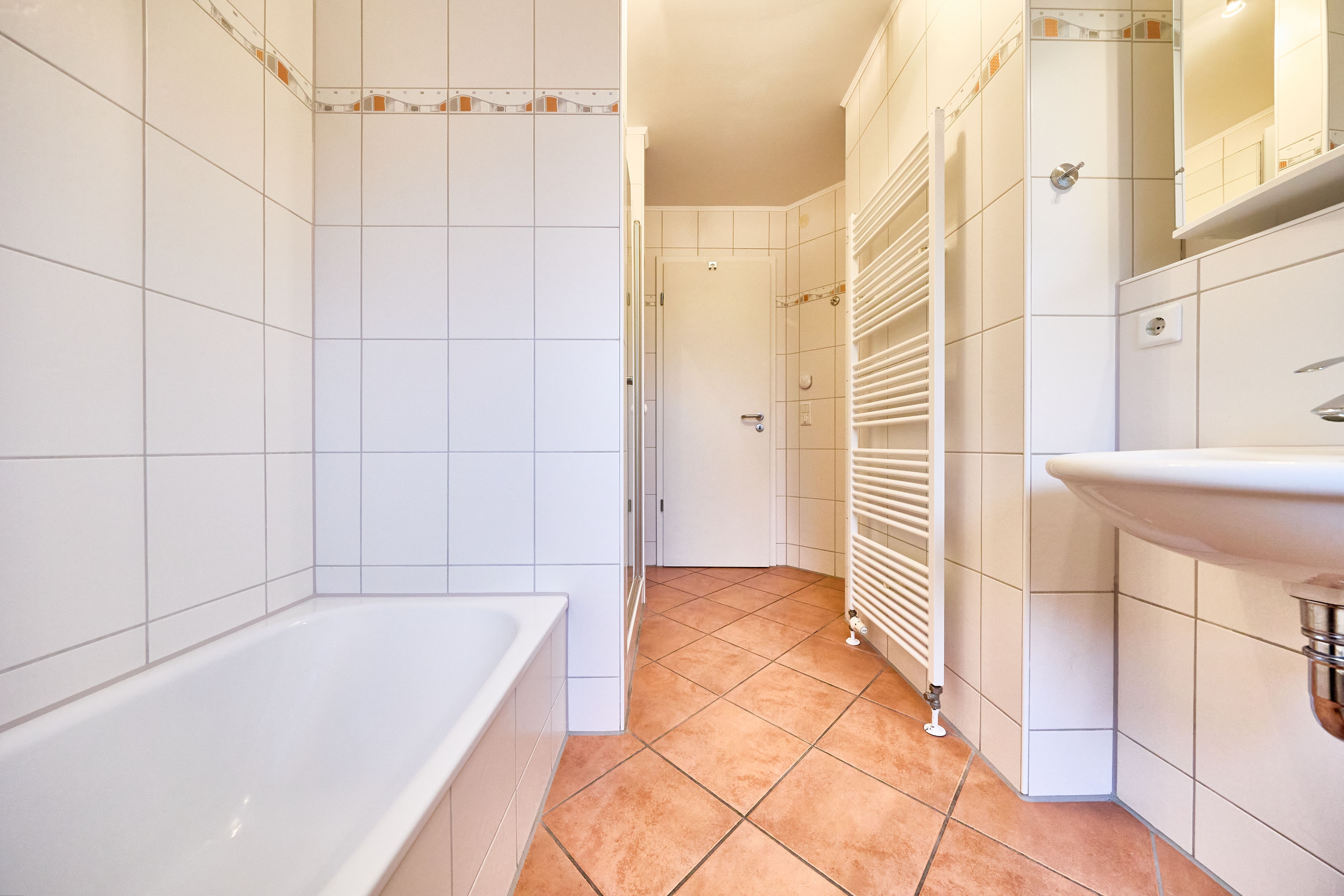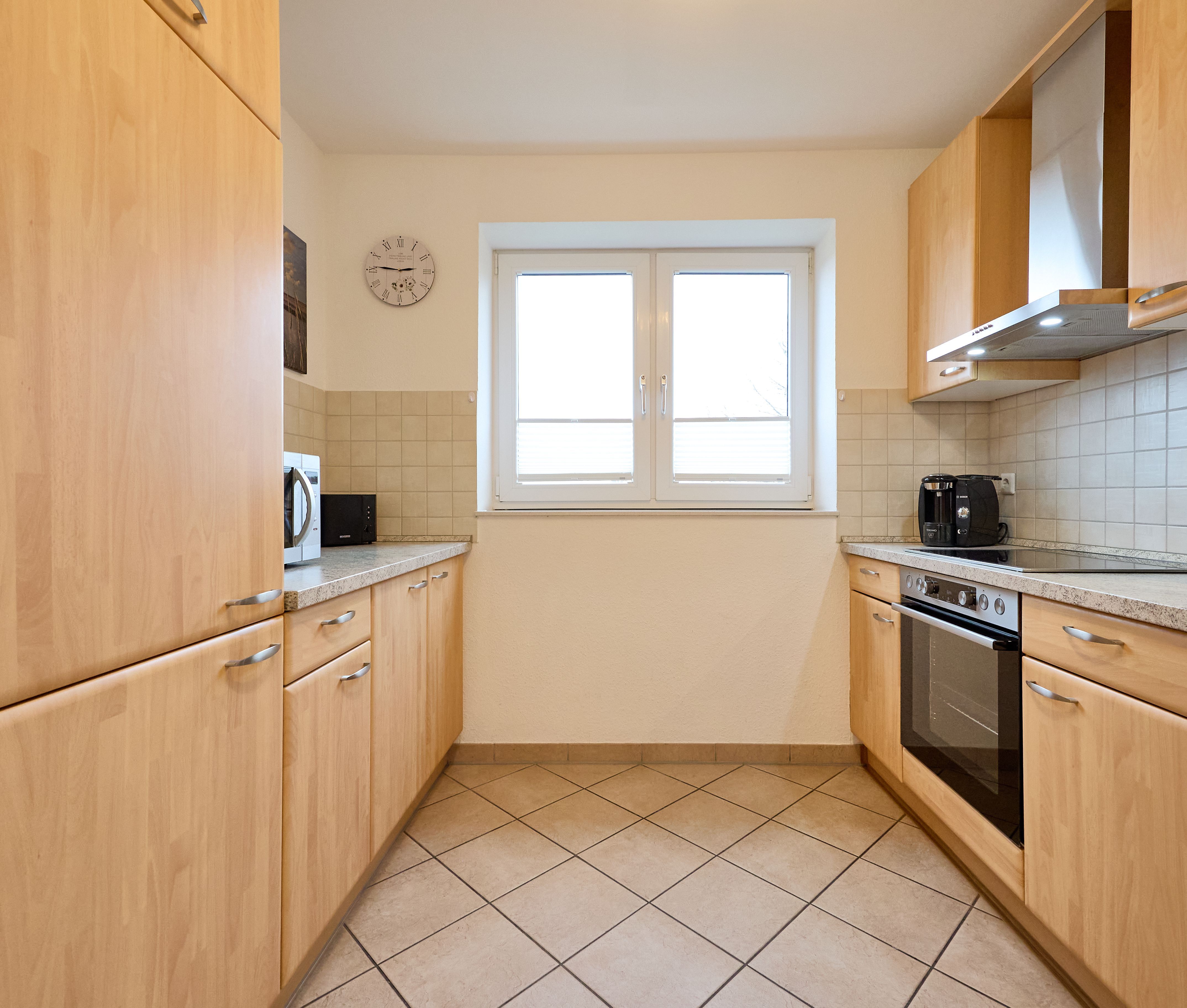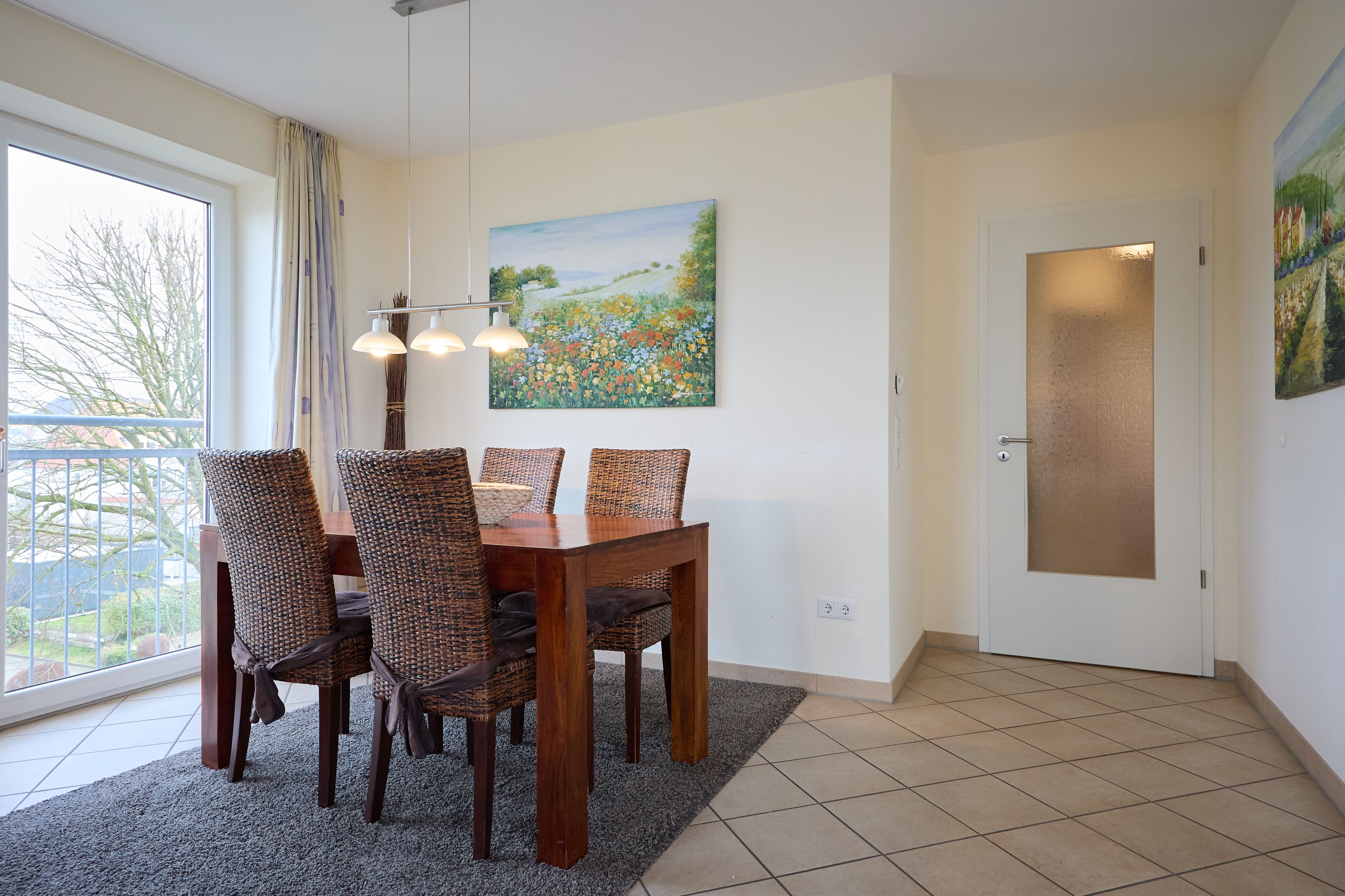 Die Wohnung besteht aus einem Eingangsbereich mit Flur und Garderobe, zwei Schlafzimmern (2x Komfort-Doppelbetten 180x200), einem Badezimmer mit WC, Dusche und Badewanne sowie einem Gäste-WC. Der große und helle Wohn- und Essbereich mit Fußbodenheizung bietet Zugang zum Balkon. Die separate Küche grenzt direkt an den Essbereich. Ein großer Esstisch und eine gemütliche Sofaecke mit verschiedenen Sitzmöglichkeiten bieten ausreichend Platz für alle Anwesenden.