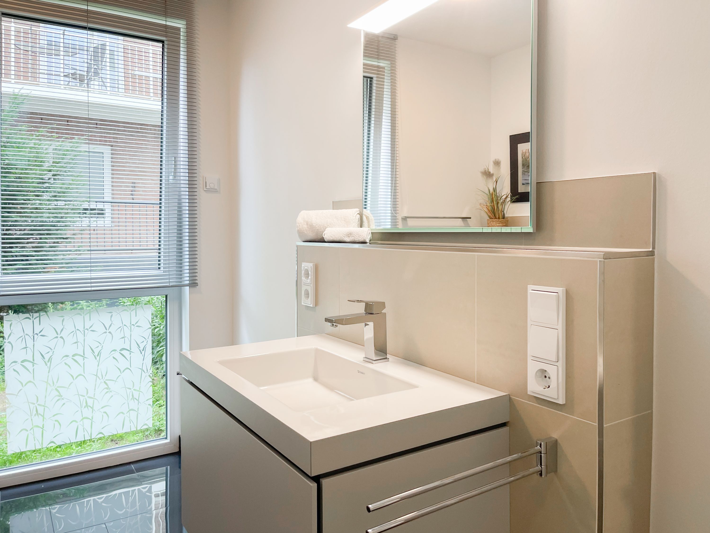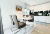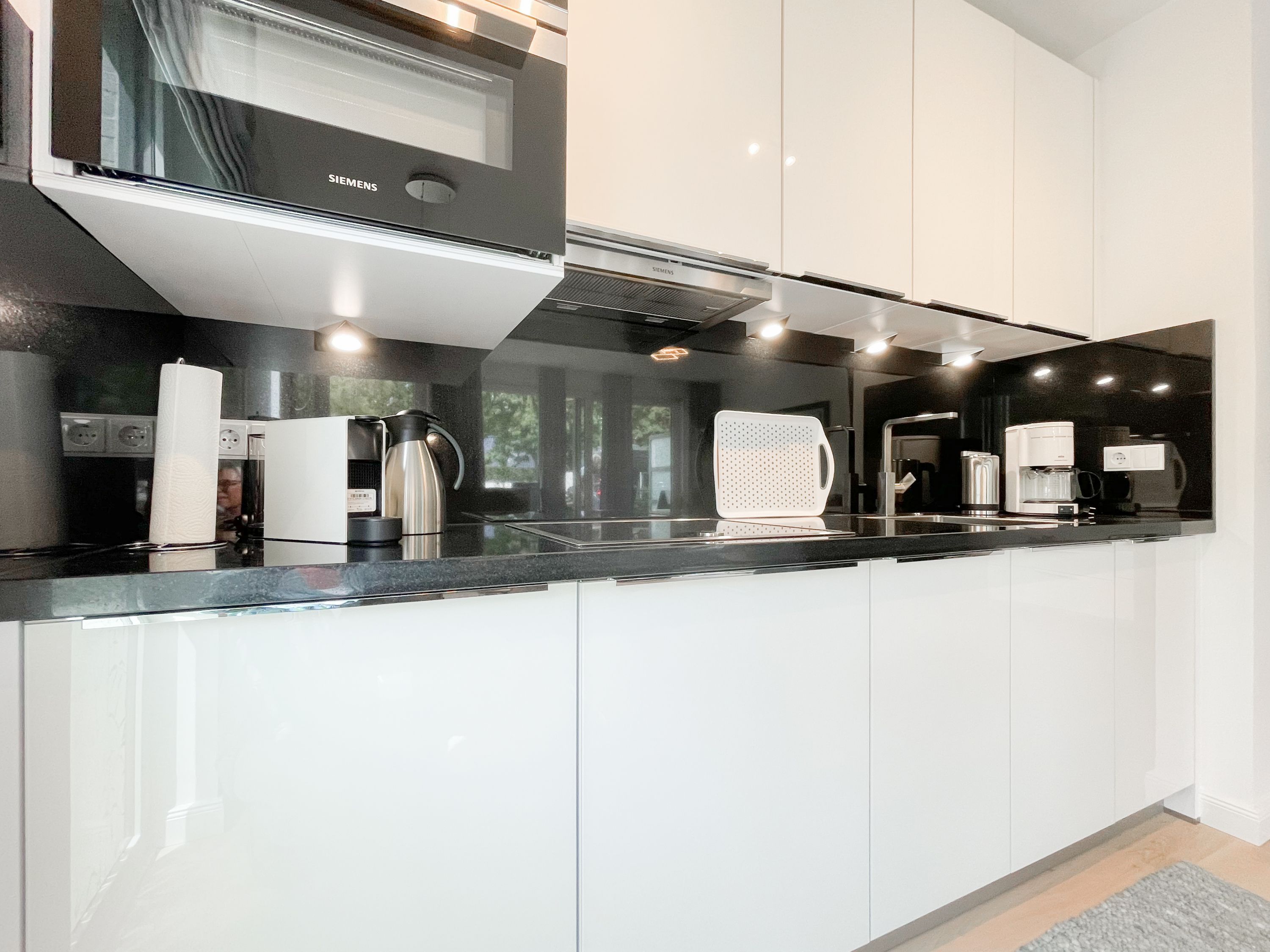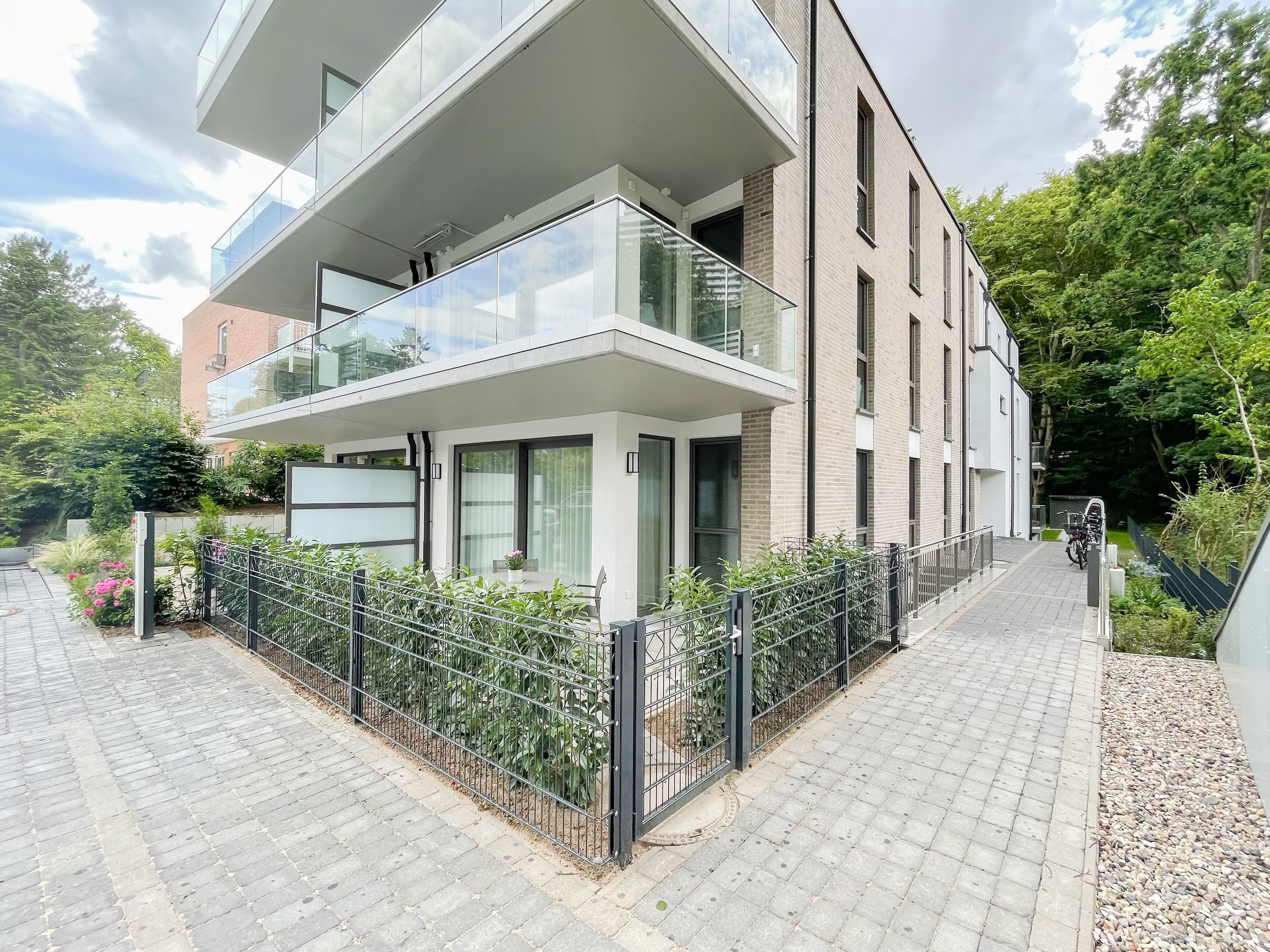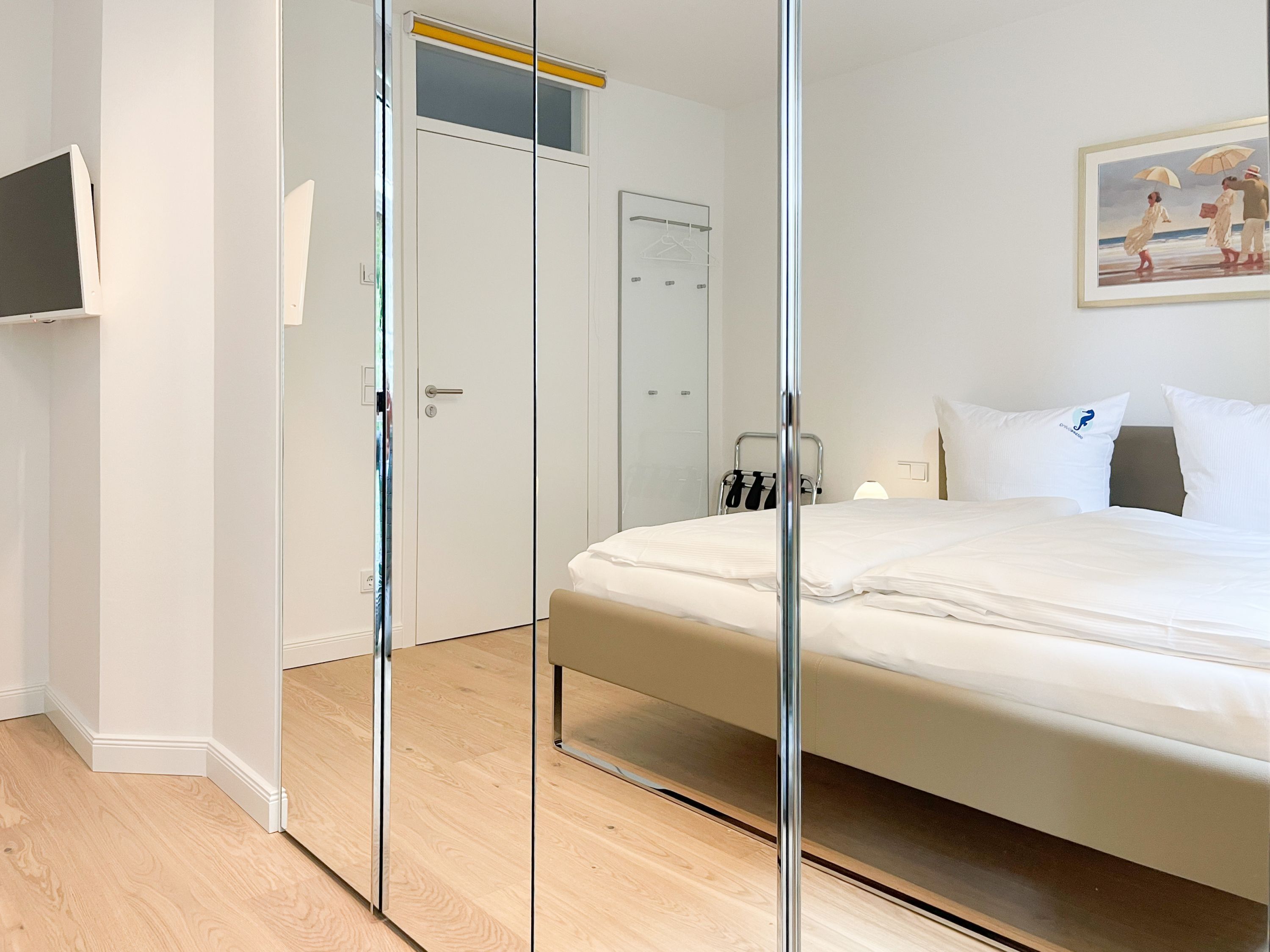 Die perfekt ausgestattete Erdgeschosswohnung ist sehr hochwertig eingerichtet und bietet höchsten Wohnkomfort in großzügigen Räumlichkeiten. Bodentiefe Fensterelemente, Echtholzböden und Fußbodenheizung sorgen für eine wunderbare Atmosphäre zum wohlfühlen. Der lichtdurchflutete Wohnbereich ist mit einem Sofa, 2 Sesseln, TV und Radio eingerichtet und der anschließende Essbereich bietet ausreichend Platz für 4 Personen. Die Küche verfügt über wertige Markengeräte und die Ausstattung läßt keine Wünsche offen. Genießen Sie die Morgensonne beim ersten Kaffee auf der Ostterrasse, die sich über den gesamten Wohn- Essbereich erstreckt. Das große Schlafzimmer ist mit einem Doppelbett (180x200), einem Kleiderschrank mit reichlich Stauraum für die Urlaubsgarderobe, einem TV und Vorhängen zur Verdunkelung ausgestattet. Bettwäsche und Handtücher sind im Strandläufer inklusive, sodass bei Anreise die Betten bezogen sind und Handtücher bereit liegen. Das überaus großzügig angelegte Bad verfügt über eine XXL Walk In Dusche, Waschtisch, WC, Bidet, Handtuchtrockner und Fenster. W-LAN steht selbstverständlich zur kostenlosen Nutzung bereit. Die Wohnung ist fast barrierefrei (außer der minimalen Fensterleibung zur Terrasse) und für Allergiker geeignet.