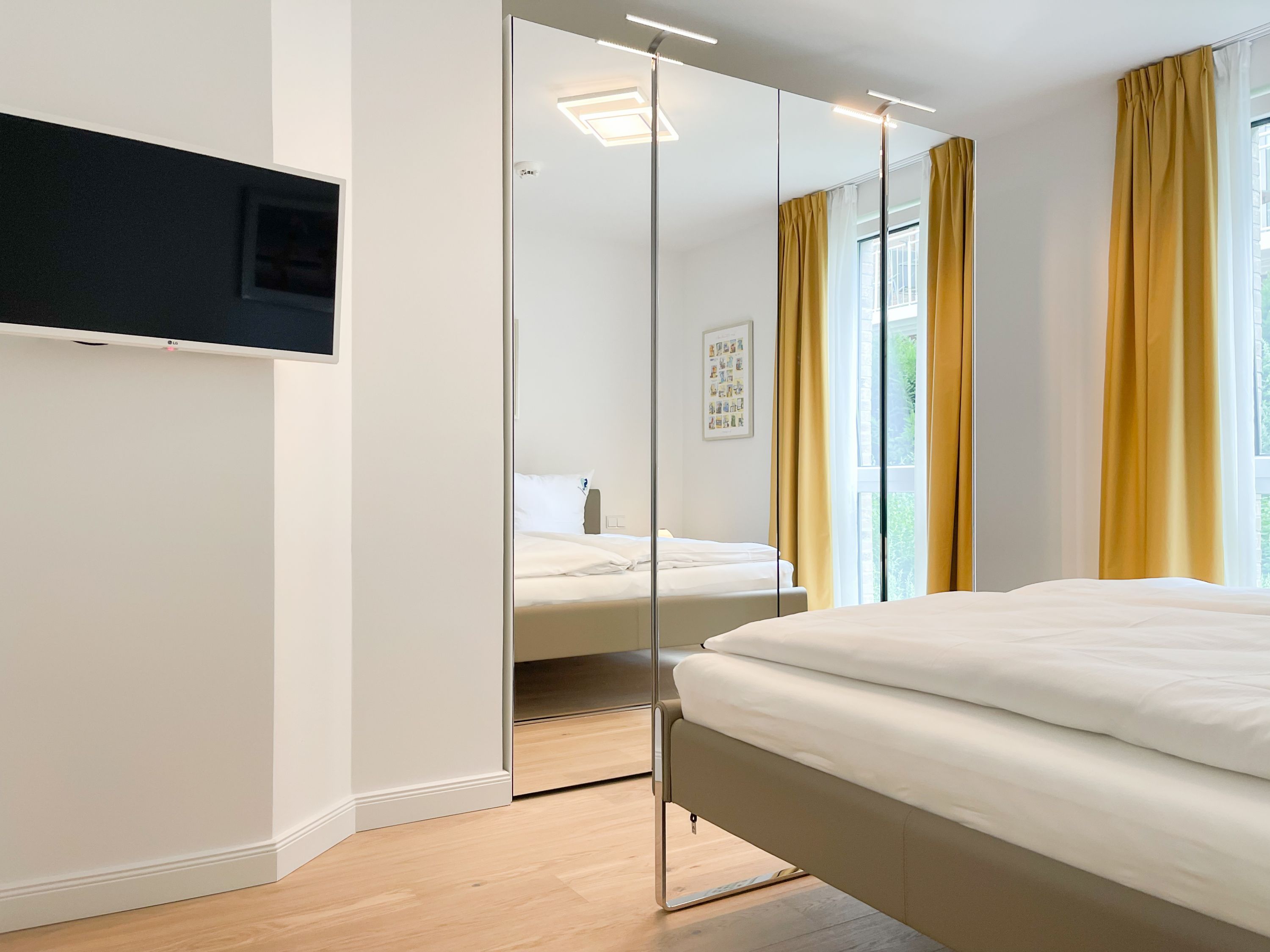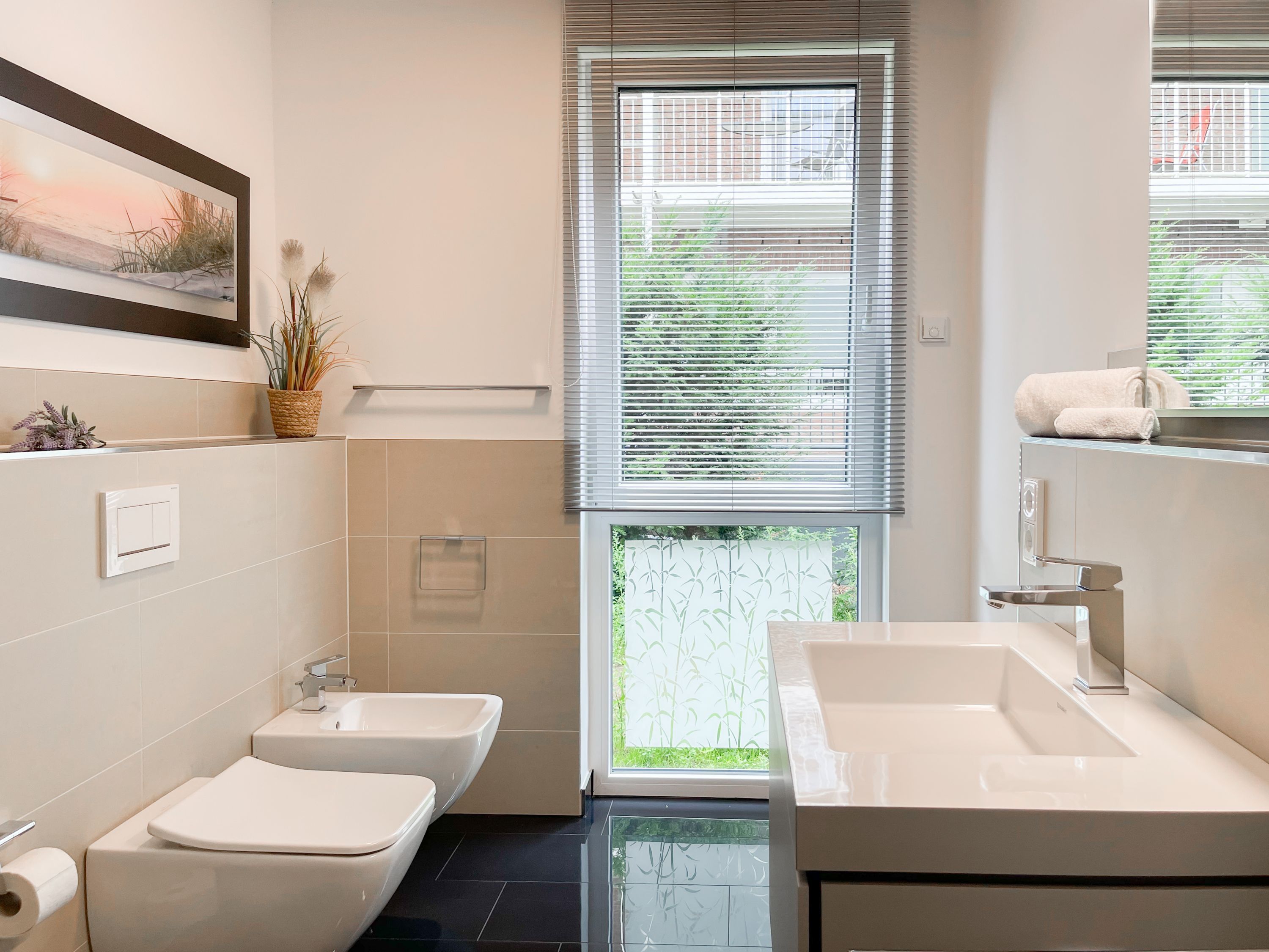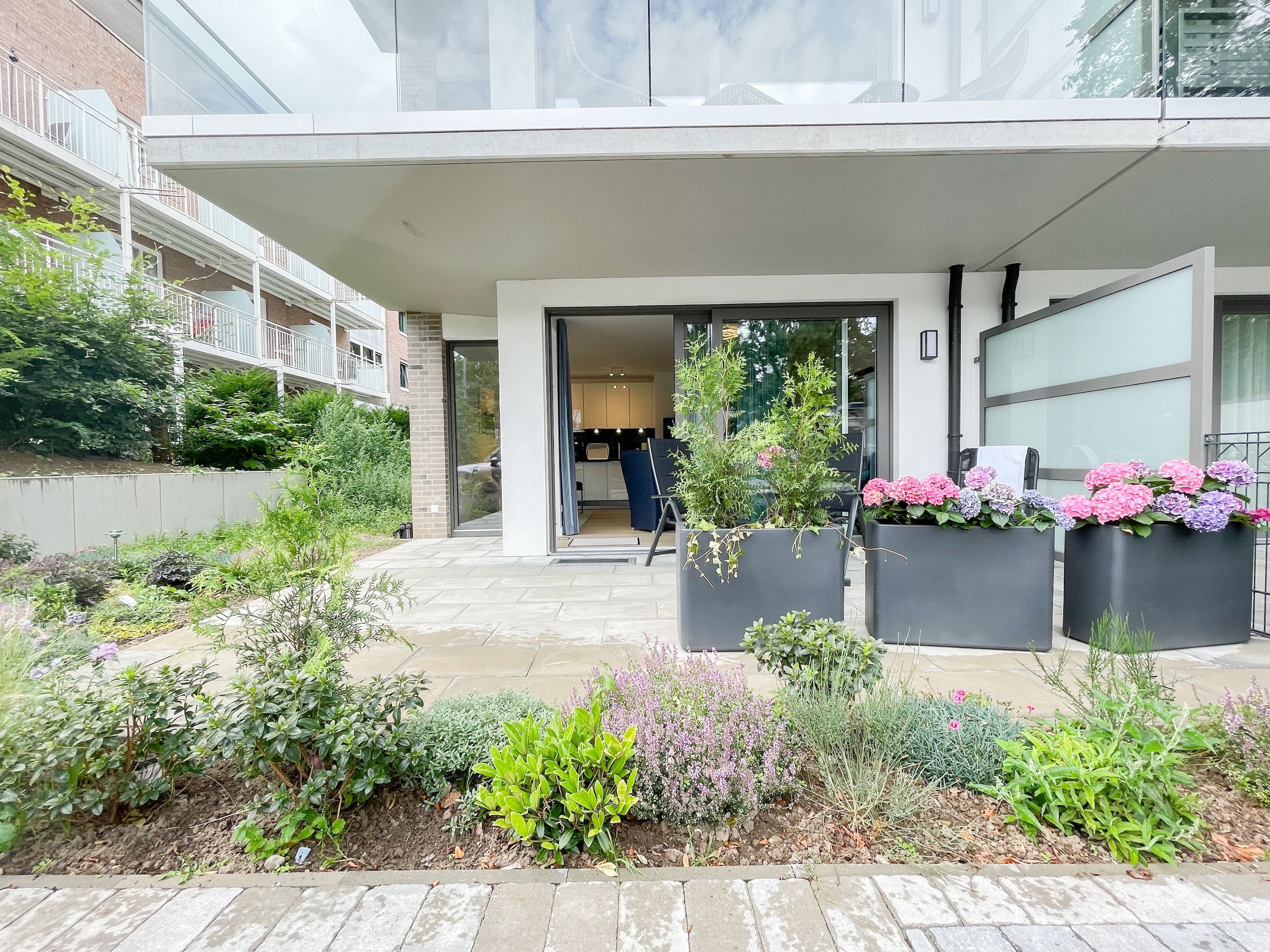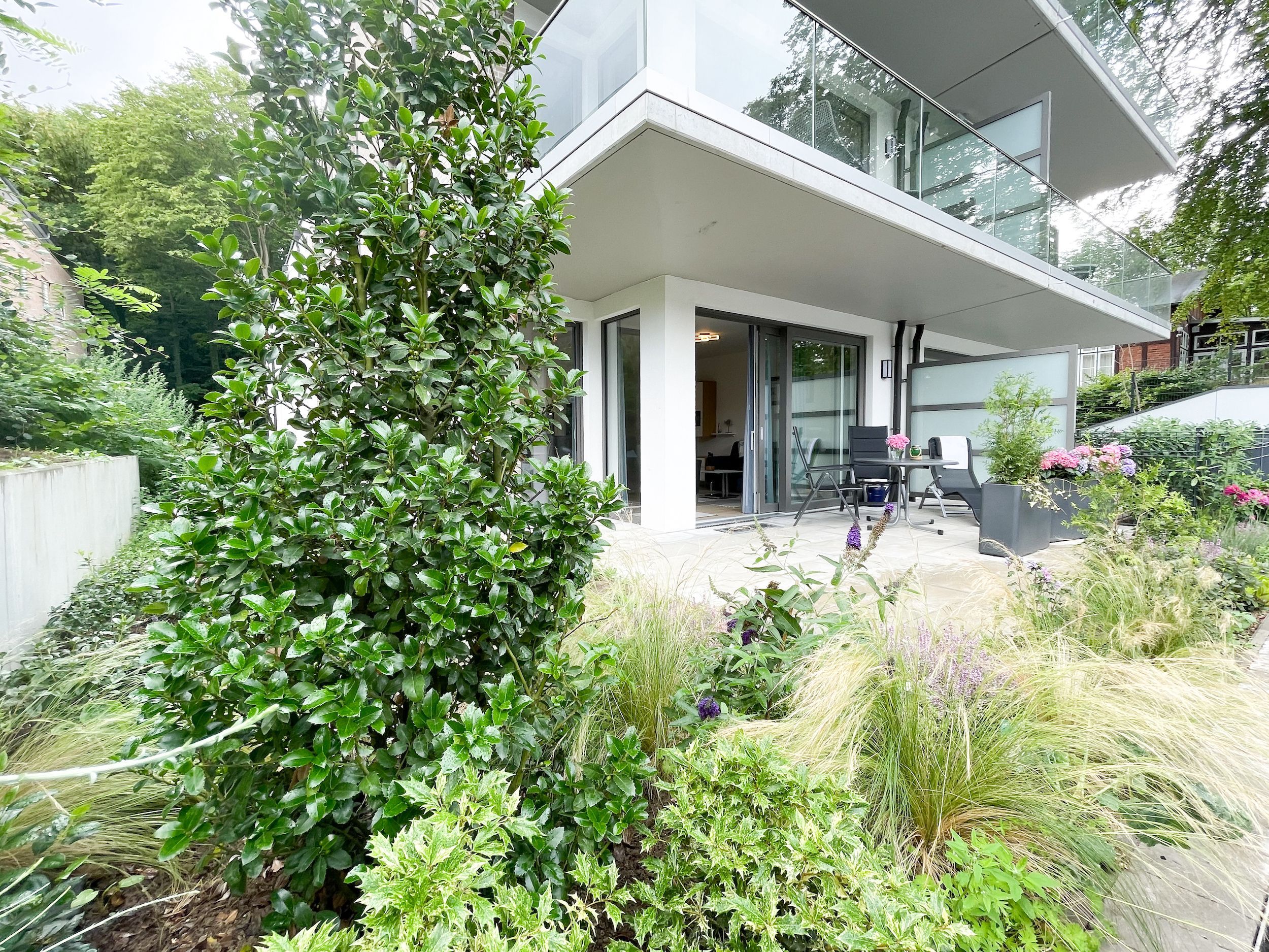 Die perfekt ausgestattete Erdgeschosswohnung ist sehr hochwertig eingerichtet und bietet höchsten Wohnkomfort in großzügigen Räumlichkeiten. Bodentiefe Fensterelemente, Echtholzböden und Fußbodenheizung sorgen für eine wunderbare Atmosphäre zum wohlfühlen. Der lichtdurchflutete Wohnbereich ist mit einem Sofa, 2 Sesseln, TV und Radio eingerichtet und der anschließende Essbereich bietet ausreichend Platz für 4 Personen. Die Küche verfügt über wertige Markengeräte und die Ausstattung läßt keine Wünsche offen. Genießen Sie die Morgensonne beim ersten Kaffee auf der Ostterrasse, die sich über den gesamten Wohn- Essbereich erstreckt. Das große Schlafzimmer ist mit einem Doppelbett (180x200), einem Kleiderschrank mit reichlich Stauraum für die Urlaubsgarderobe, einem TV und Vorhängen zur Verdunkelung ausgestattet. Bettwäsche und Handtücher sind im Strandläufer inklusive, sodass bei Anreise die Betten bezogen sind und Handtücher bereit liegen. Das überaus großzügig angelegte Bad verfügt über eine XXL Walk In Dusche, Waschtisch, WC, Bidet, Handtuchtrockner und Fenster. W-LAN steht selbstverständlich zur kostenlosen Nutzung bereit. Die Wohnung ist fast barrierefrei (außer der minimalen Fensterleibung zur Terrasse) und für Allergiker geeignet.