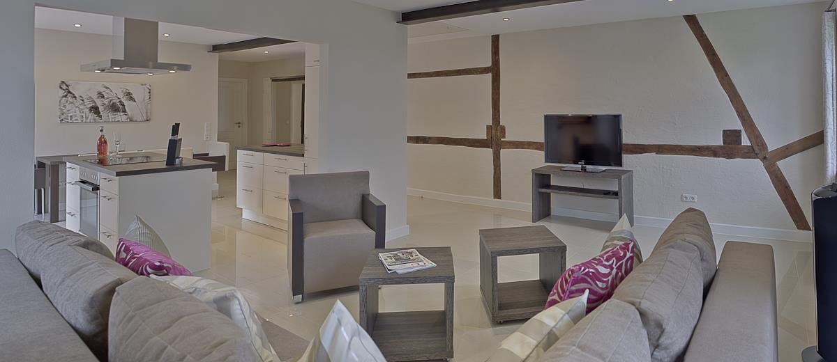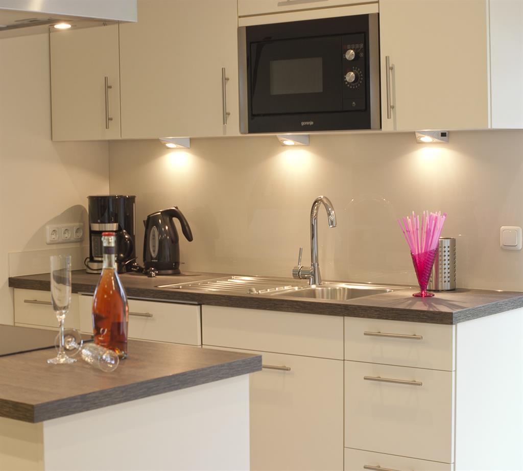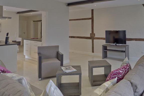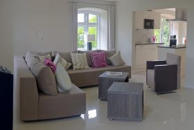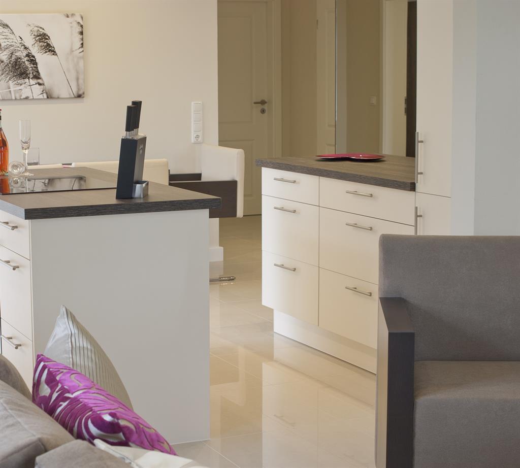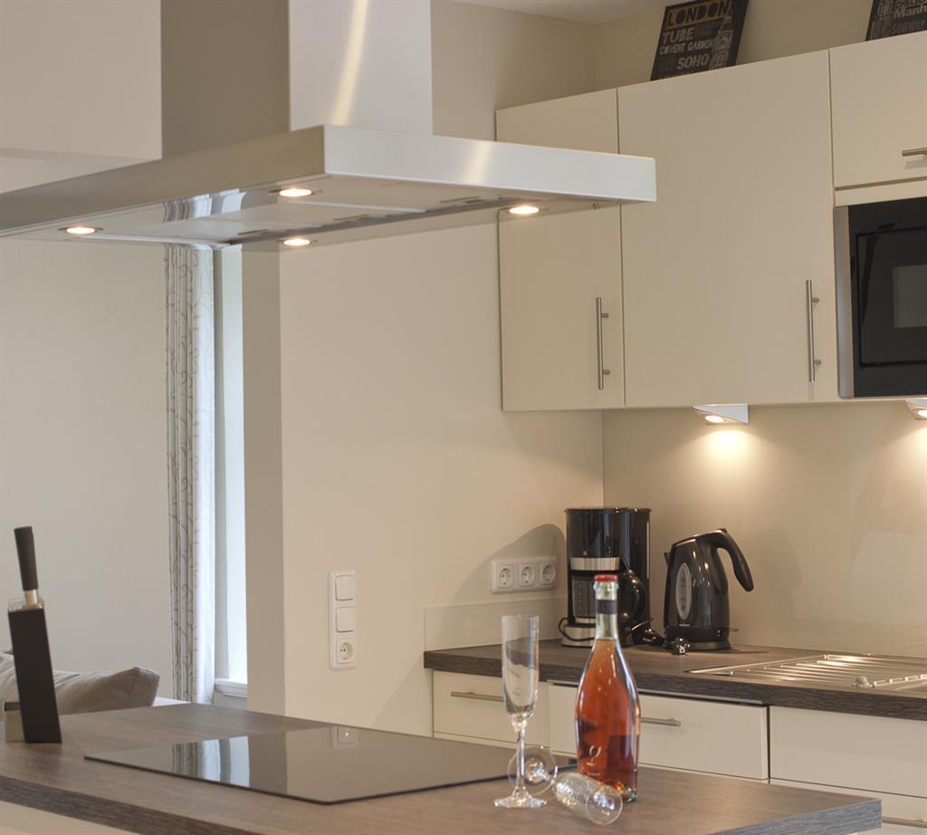 3-Zimmer Nichtraucher-Ferienwohnung für bis zu 4 Personen. Wohnzimmer mit SAT-TV und Blu-Ray/DVD-Player, Musikanlage mit CD-Player, Radio und Dockingstation für iPod, iPad oder iPhone. Badezimmer mit Regendusche, 2 Waschtische, Fön und beleuchtetem Schminkspiegel. Gäste-WC mit Waschmaschine und Trockner. Offene Küche mit Kochinsel, Carenfeld mit Backofen, komplette Küchenausstattung (Kaffeemaschine, Wasserkocher, Toaster, Geschirrspüler, Mikrowelle, Kühlschrank mit Gefrierfach). 1 Schlafzimmer mit Doppelbett, 1 Schlafzimmer mit 2 Einzelbetten und Schreibtisch, Bügelstation und Laptop-Safe. Möblierter Balkon. Baby-Bett und Hochstuhl auf Anfrage. PKW-Stellplatz vorhanden. W-LAN kostenfrei verfügbar