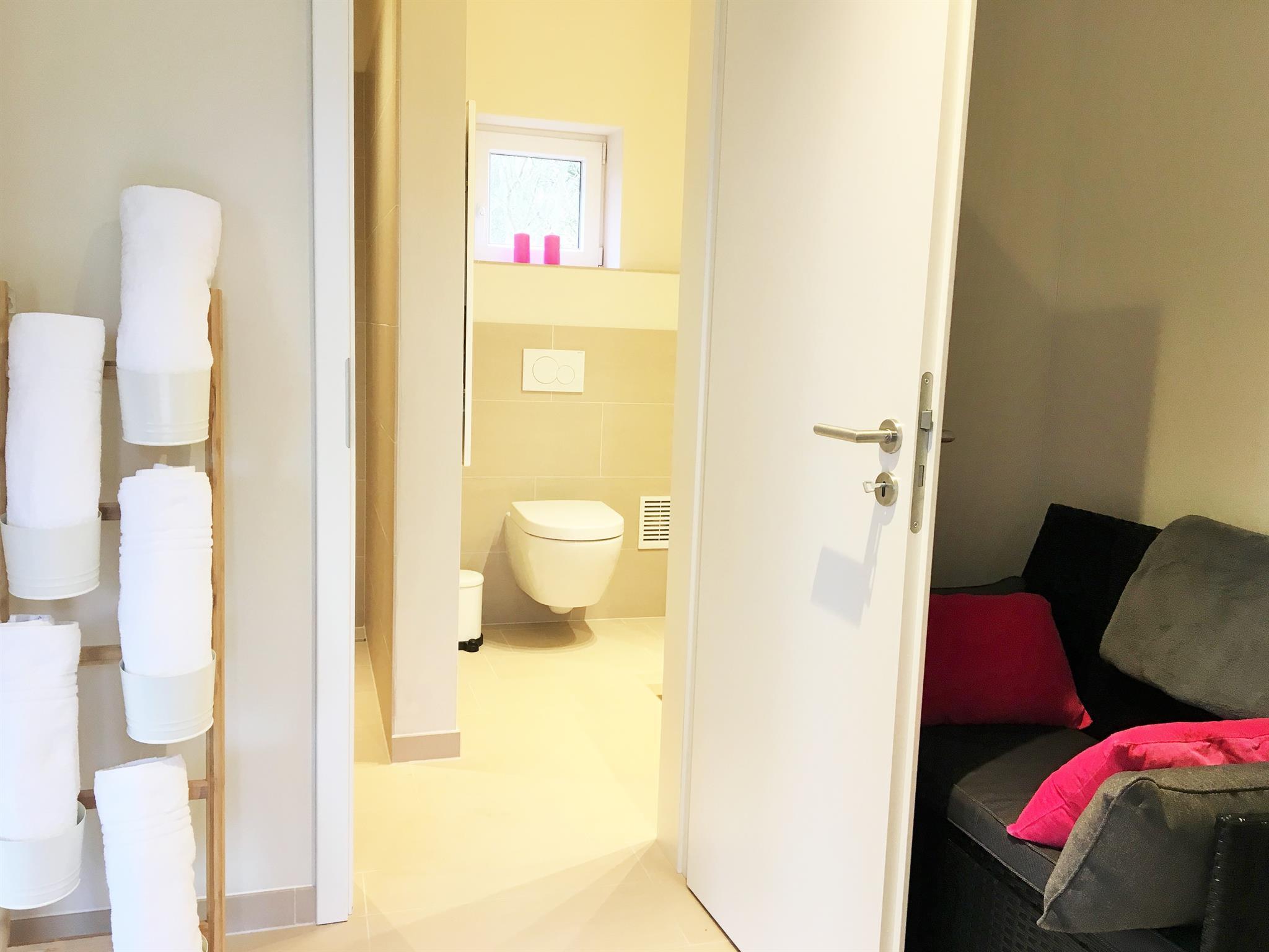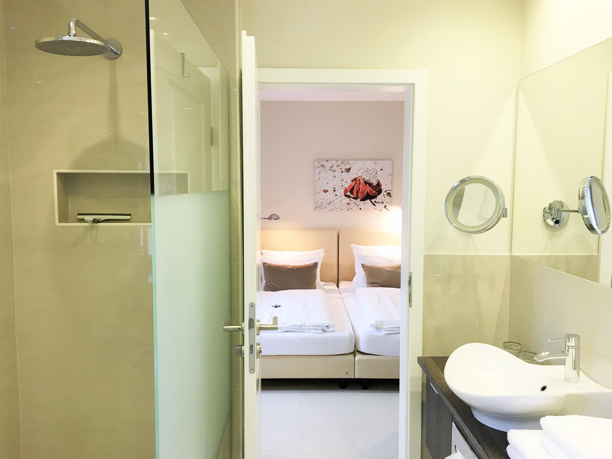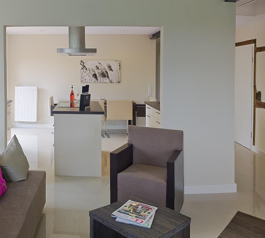 3-Zimmer Nichtraucher-Ferienwohnung für bis zu 4 Personen. Wohnzimmer mit SAT-TV und Blu-Ray/DVD-Player, Musikanlage mit CD-Player, Radio und Dockingstation für iPod, iPad oder iPhone. Badezimmer mit Regendusche, 2 Waschtische, Fön und beleuchtetem Schminkspiegel. Gäste-WC mit Waschmaschine und Trockner. Offene Küche mit Kochinsel, Carenfeld mit Backofen, komplette Küchenausstattung (Kaffeemaschine, Wasserkocher, Toaster, Geschirrspüler, Mikrowelle, Kühlschrank mit Gefrierfach). 1 Schlafzimmer mit Doppelbett, 1 Schlafzimmer mit 2 Einzelbetten und Schreibtisch, Bügelstation und Laptop-Safe. Möblierter Balkon. Baby-Bett und Hochstuhl auf Anfrage. PKW-Stellplatz vorhanden. W-LAN kostenfrei verfügbar