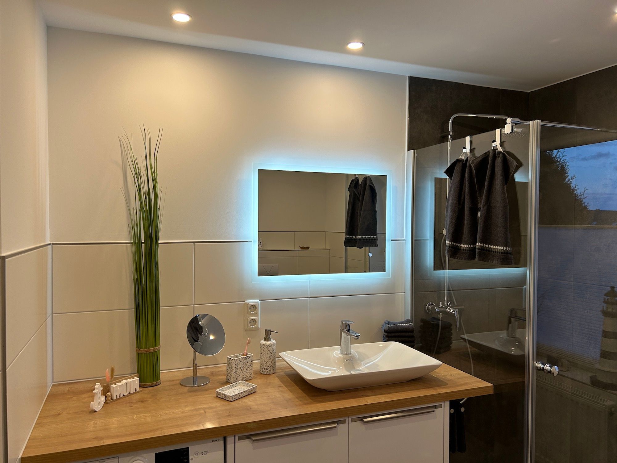 Regenschauer-Funktion. Annehmlichkeiten wie ein beleuchteter Spiegel,