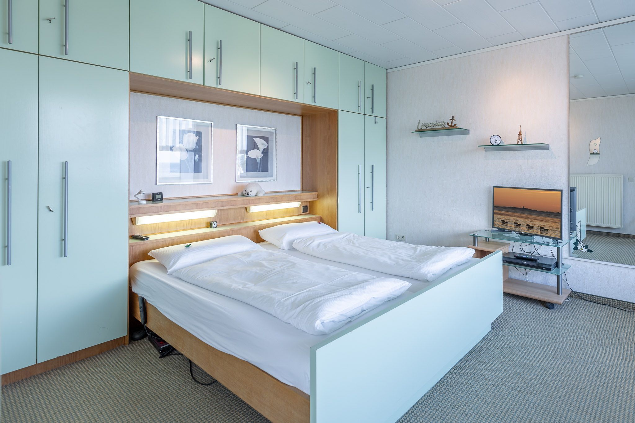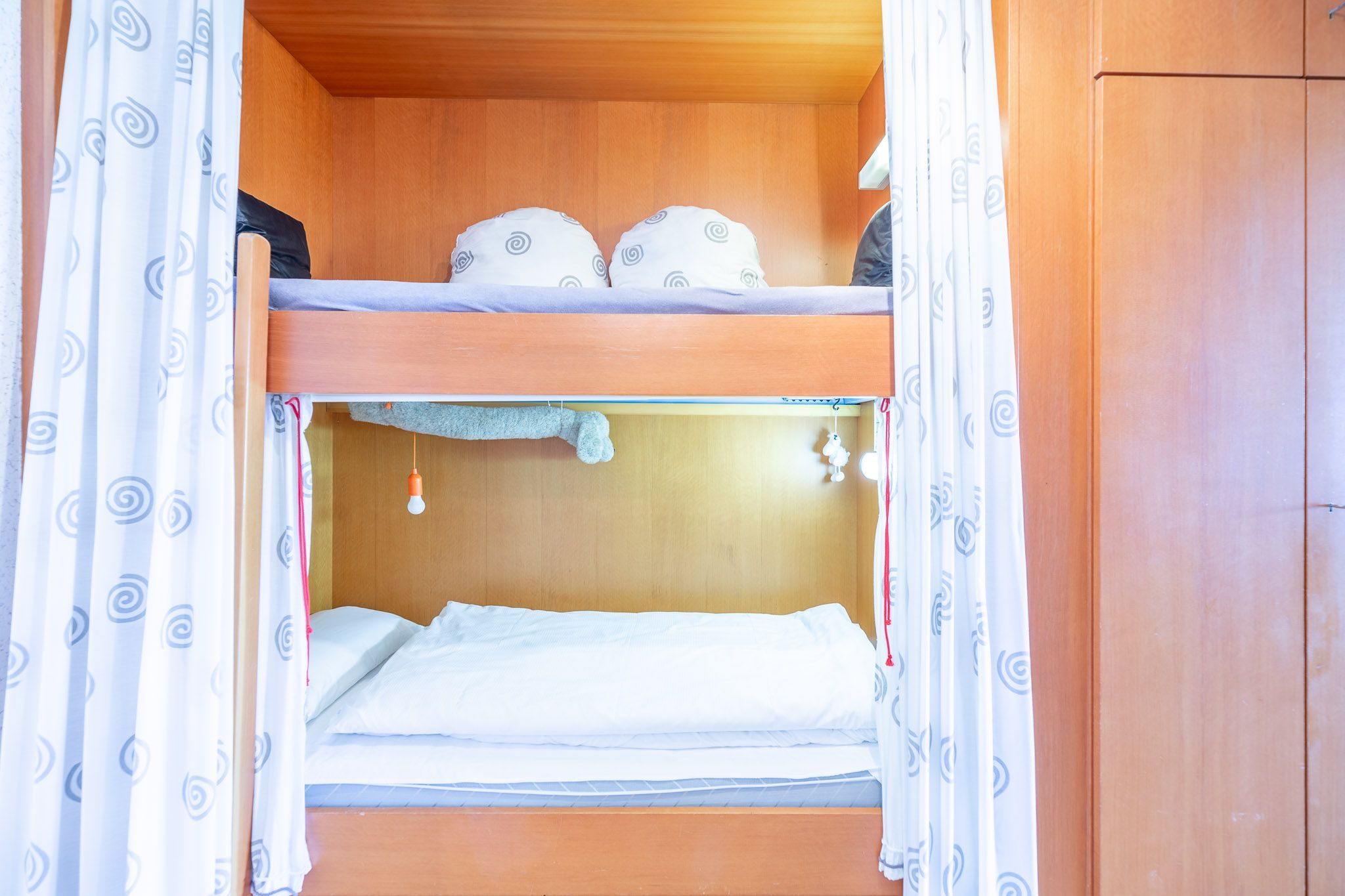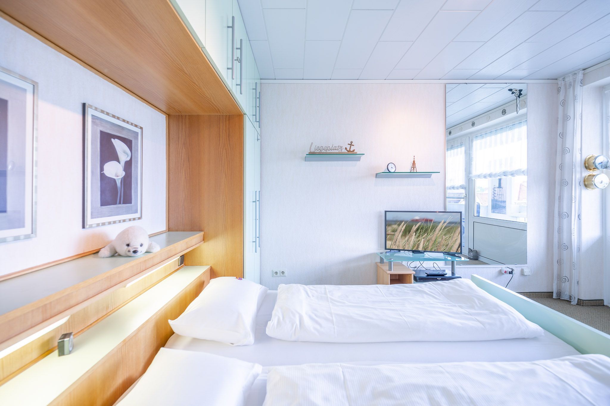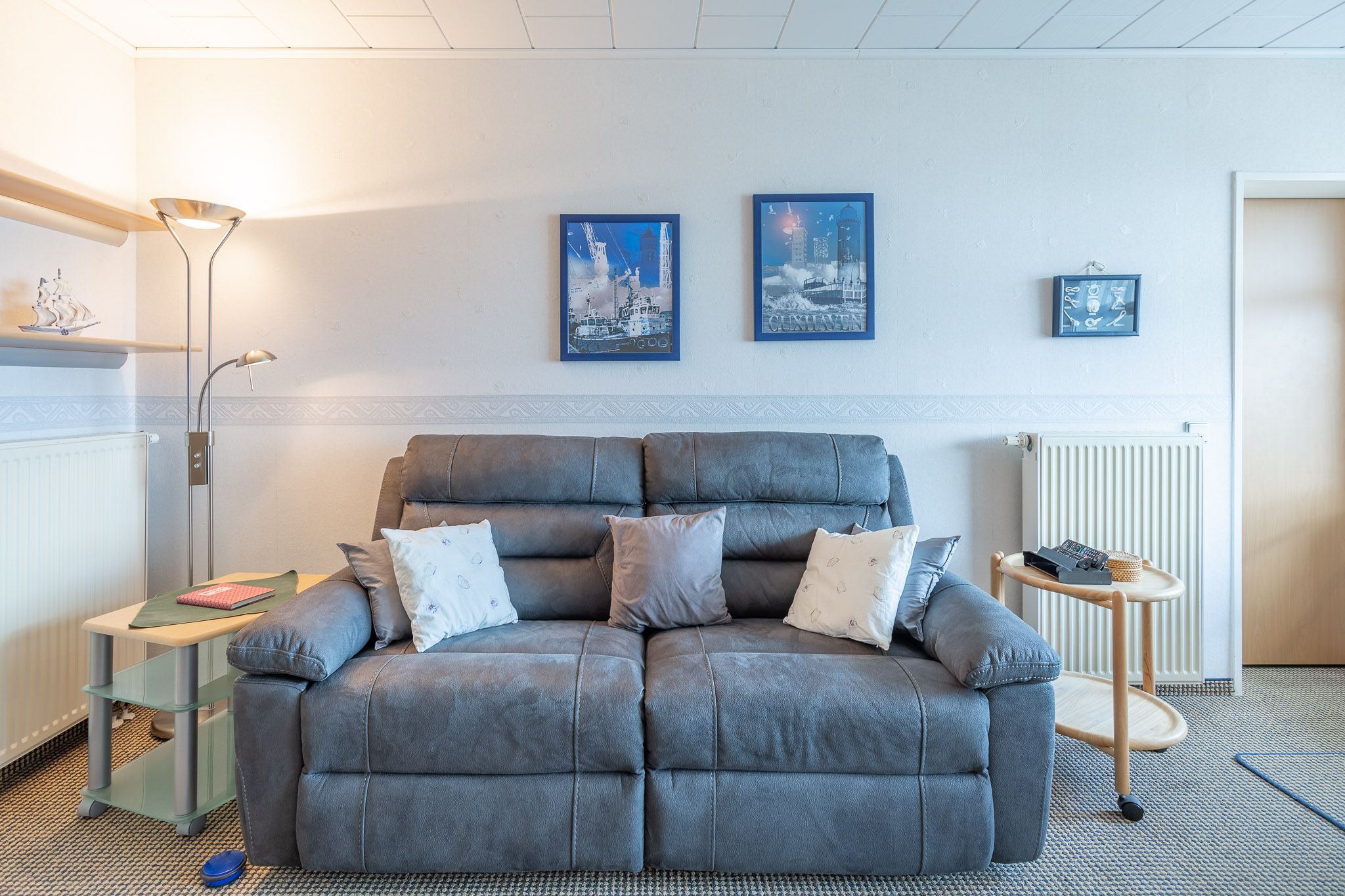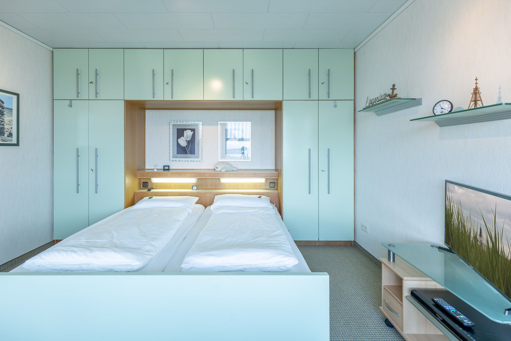Ankommen und sich wohlfühlen. Lehnen Sie sich entspannt zurück und genießen Sie den Ausblick auf die vorbeifahrenden Schiffe. Krabbenkutter, Kreuzfahrtriesen und Segelschiffe. Vor dem Einschlafen Schiffchen statt Schäfchen zählen. In Ferienwohnung Nautic 409 haben Sie das maritime Treiben auf der Elbe immer bestens im Blick und müssen dafür nicht mal aus dem Bett steigen. Die 55 m² große Ferienwohnung ist geeignet für 2-3 Personen. Das separate Schlafzimmer mit Doppelbett (2x90x200) gewährleistet einen erholsamen Schlaf. Elektrische Außenjalousien gewährleisten, dass Sie nicht von der Morgensonne geweckt werden. Das Etagenbett im Flur bietet eine weitere Schlafmöglichkeit.